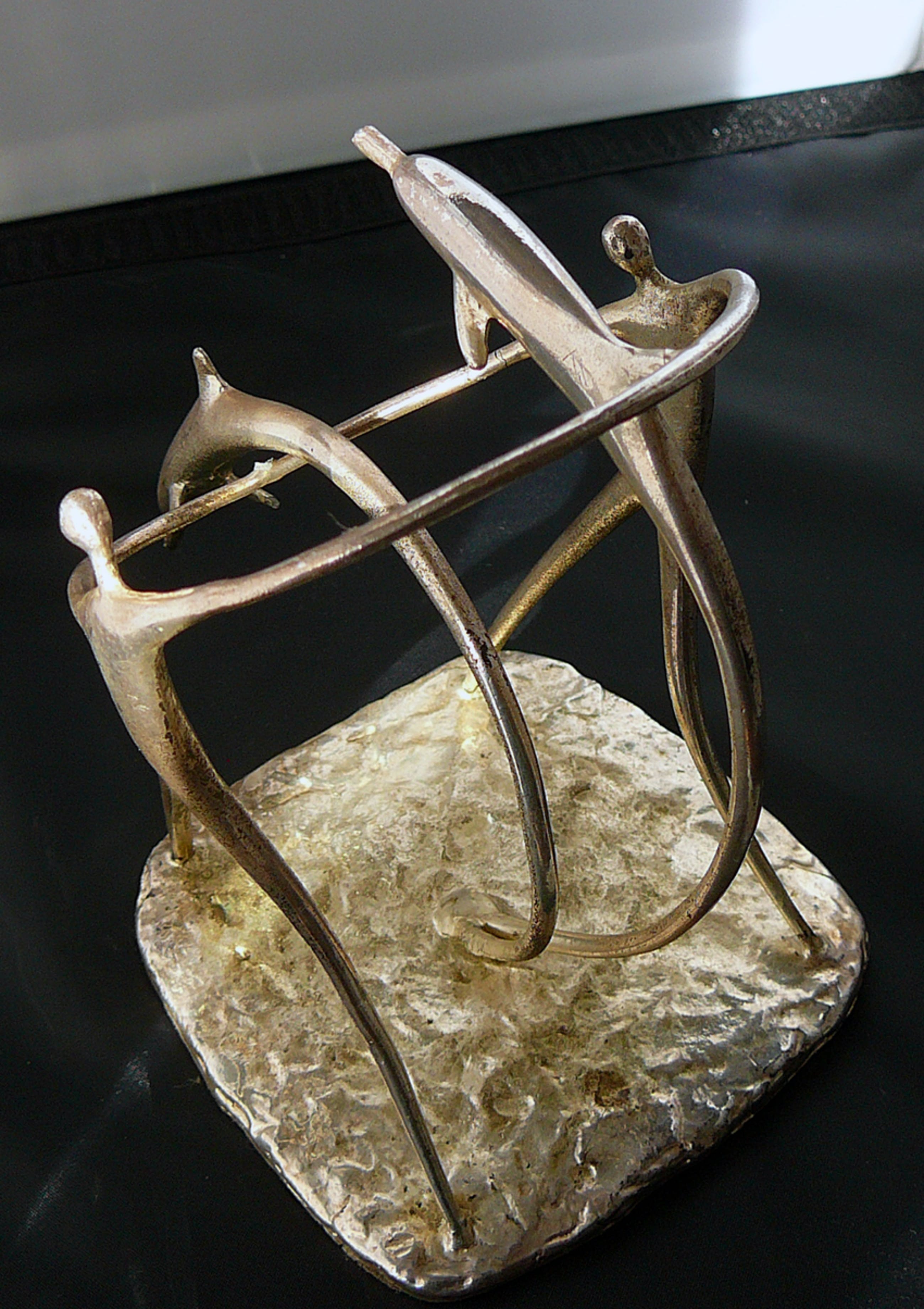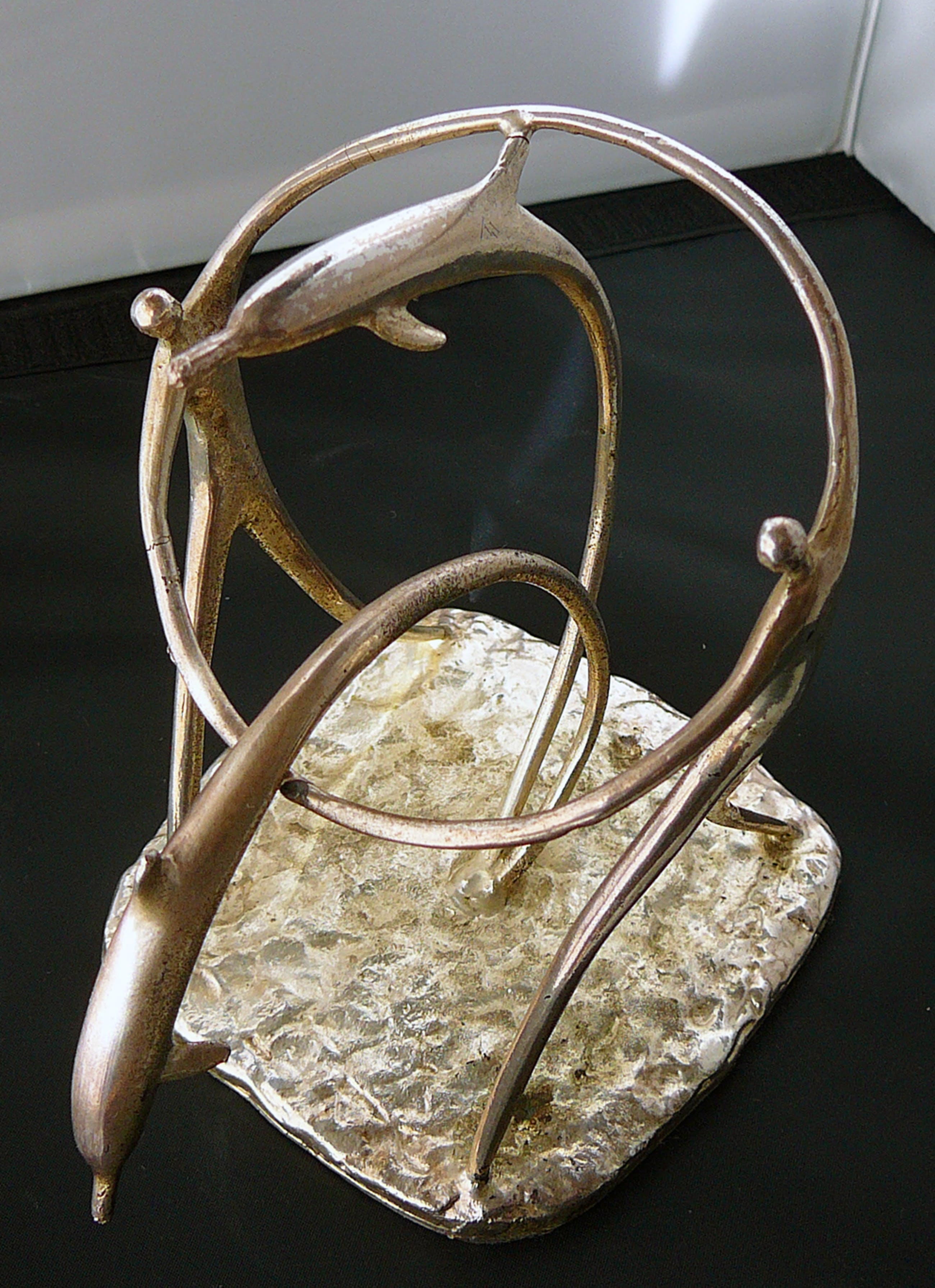 Datering circa 1990, verzilverd met mooie glans. Dynamische en sierlijke compositie.