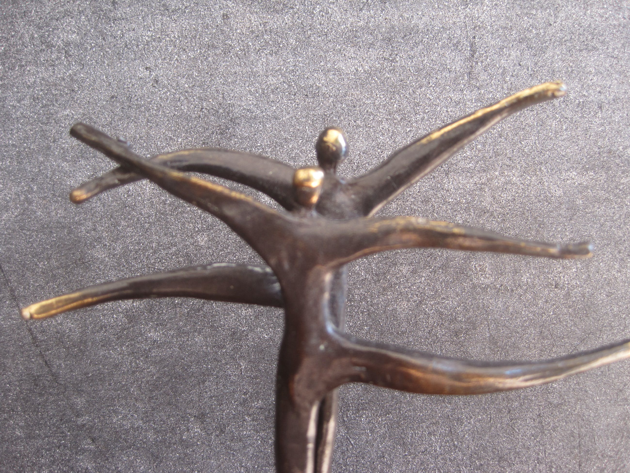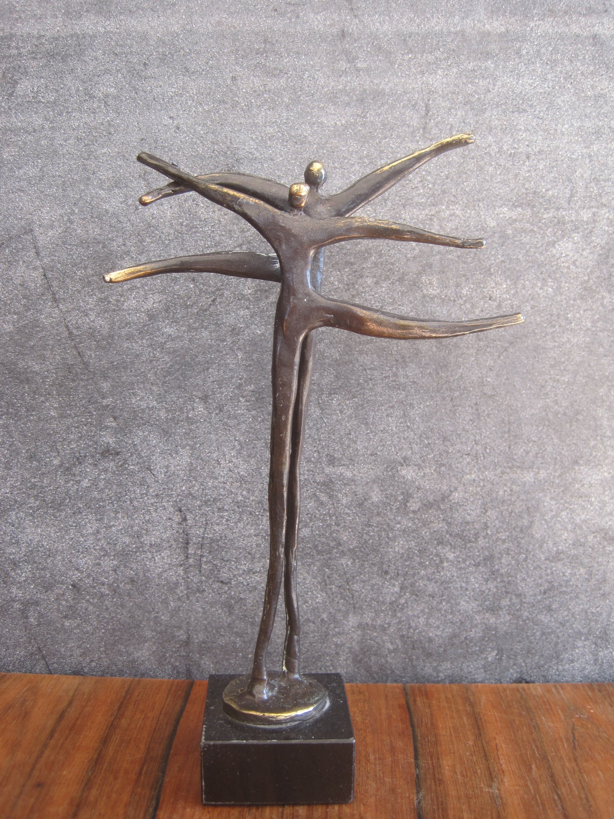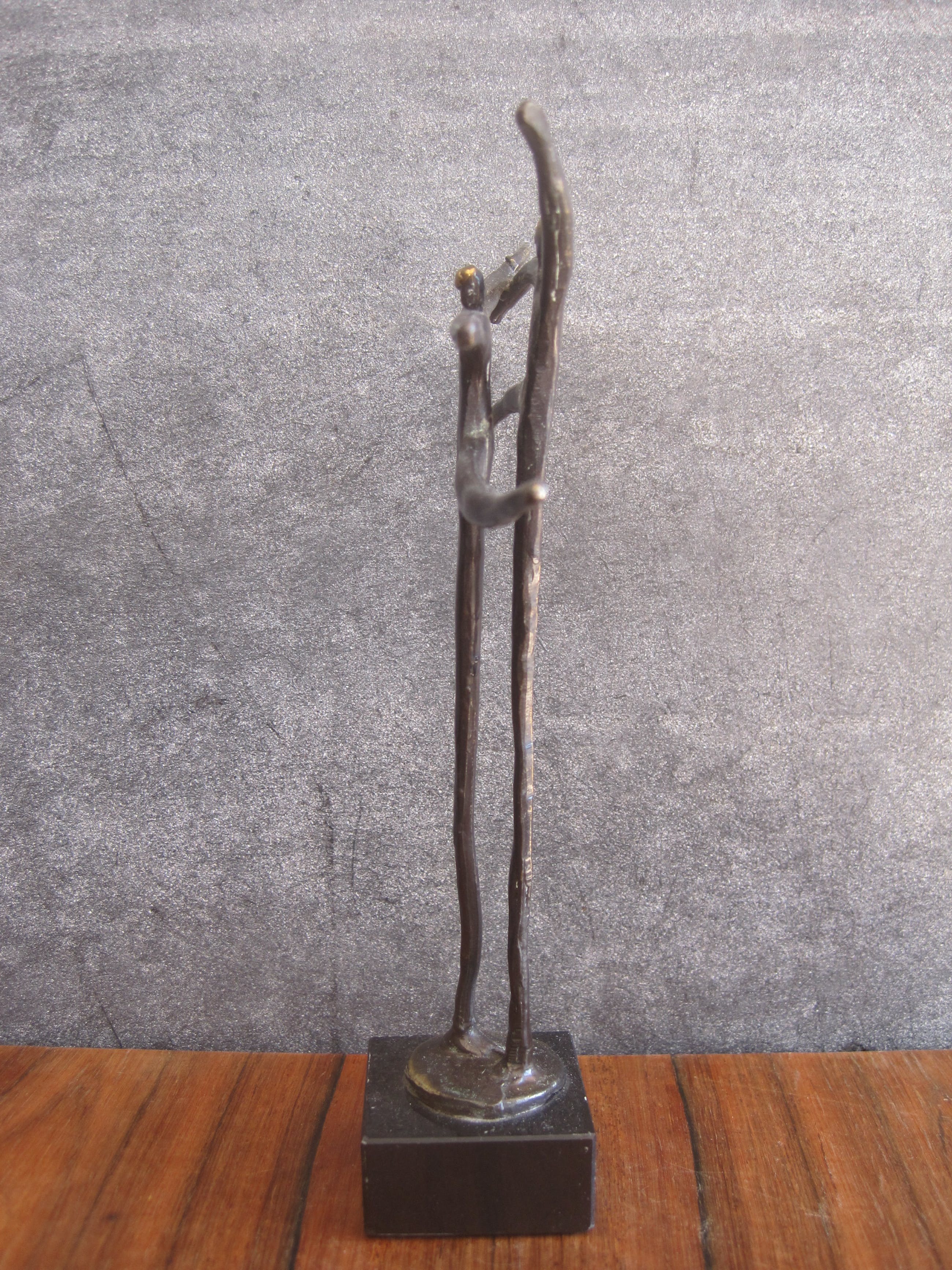 Een in deze tijd pakkende titel voor dit beeldje van Corry Ammerlaan-van Niekerk. het beeldje is gesigneerd in de voet. De afmetingen zijn inclusief de zwart marmeren sokkel.