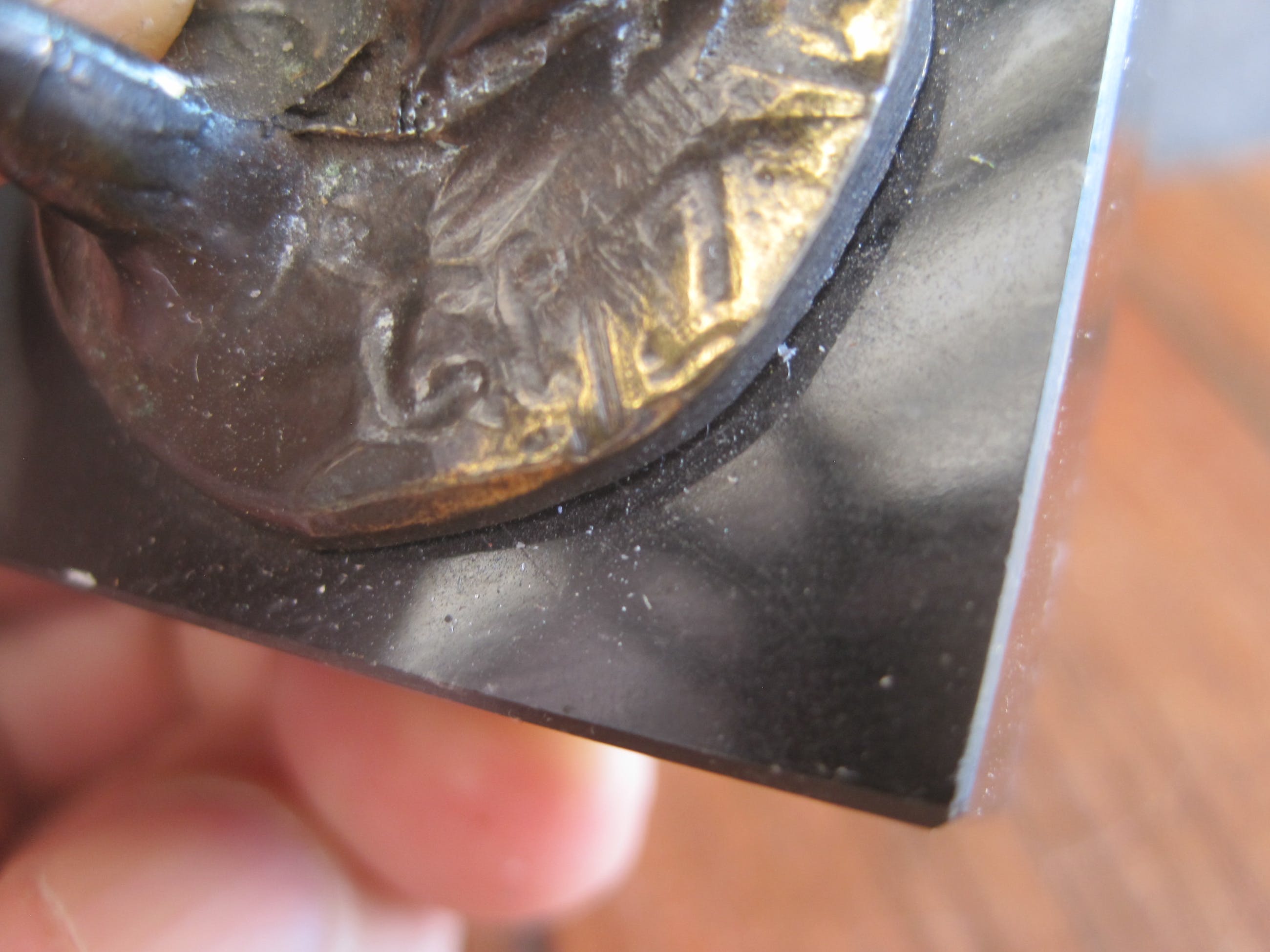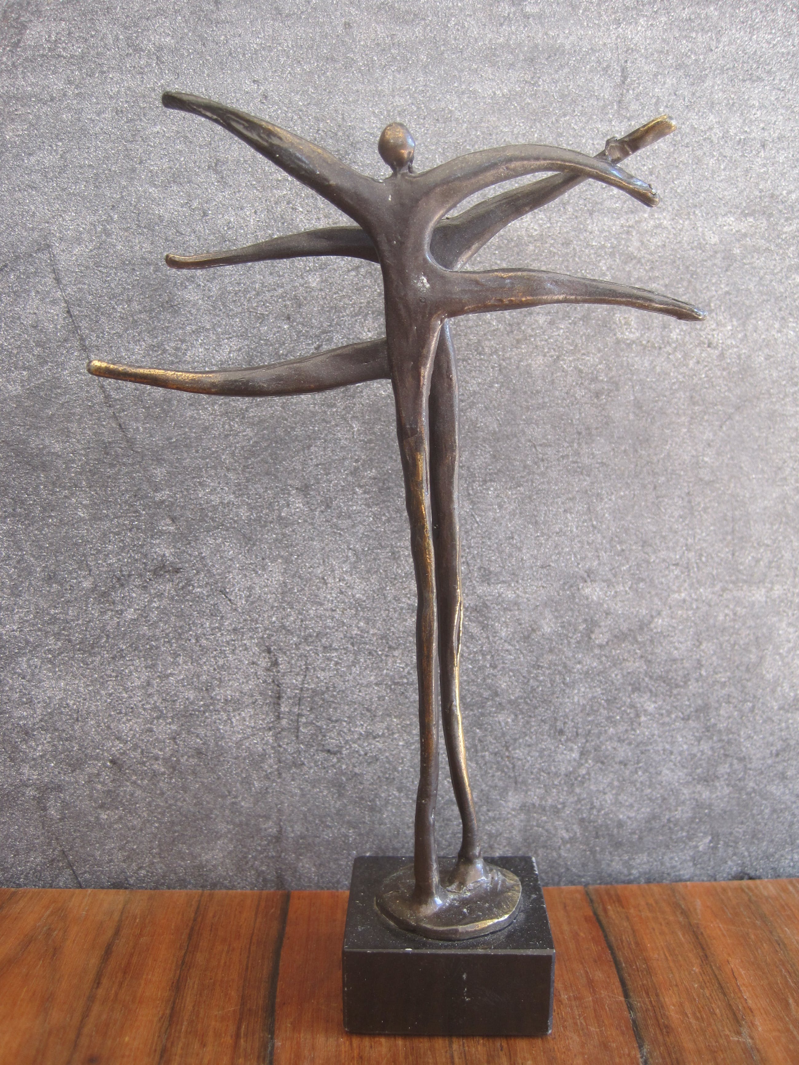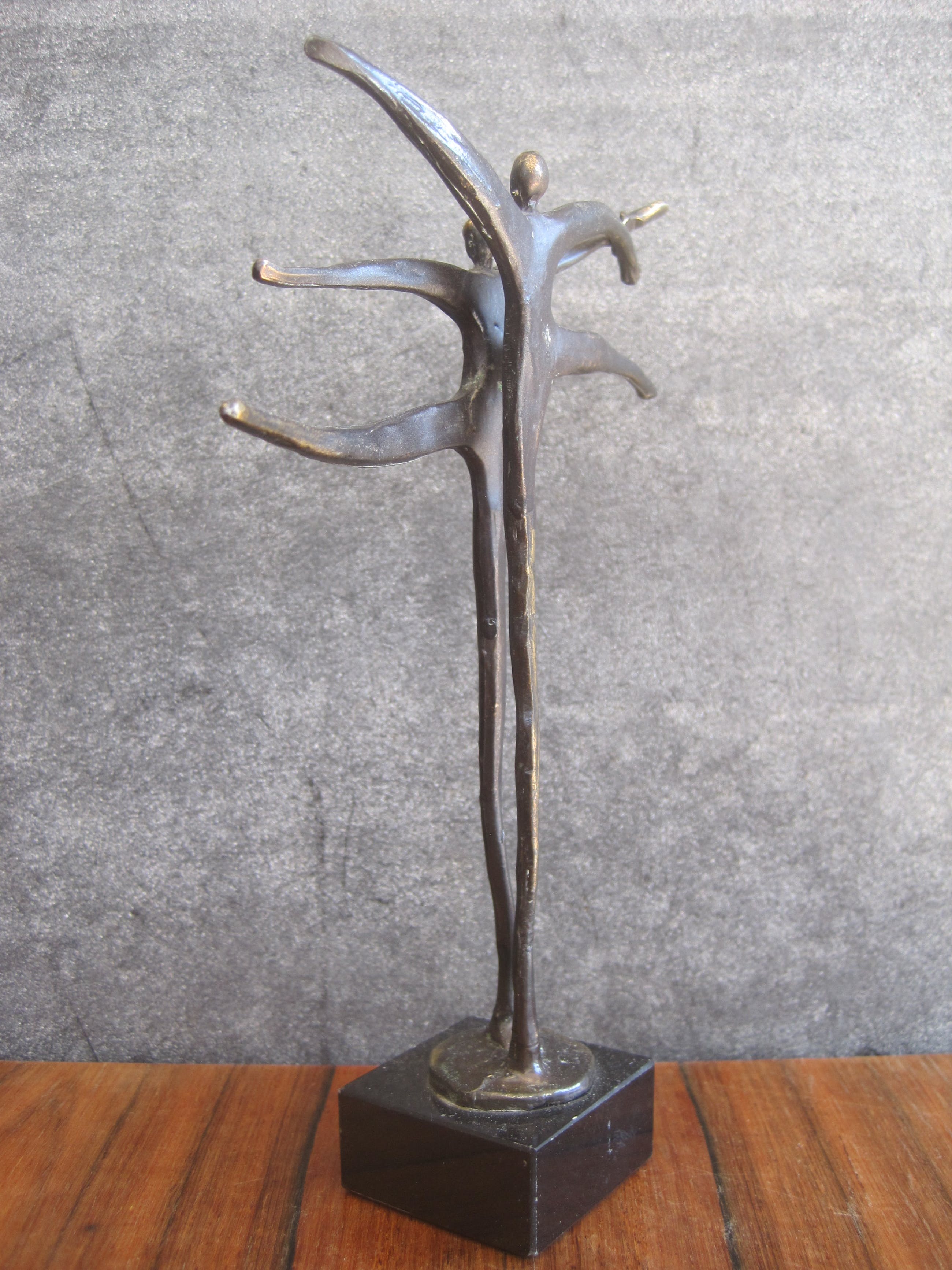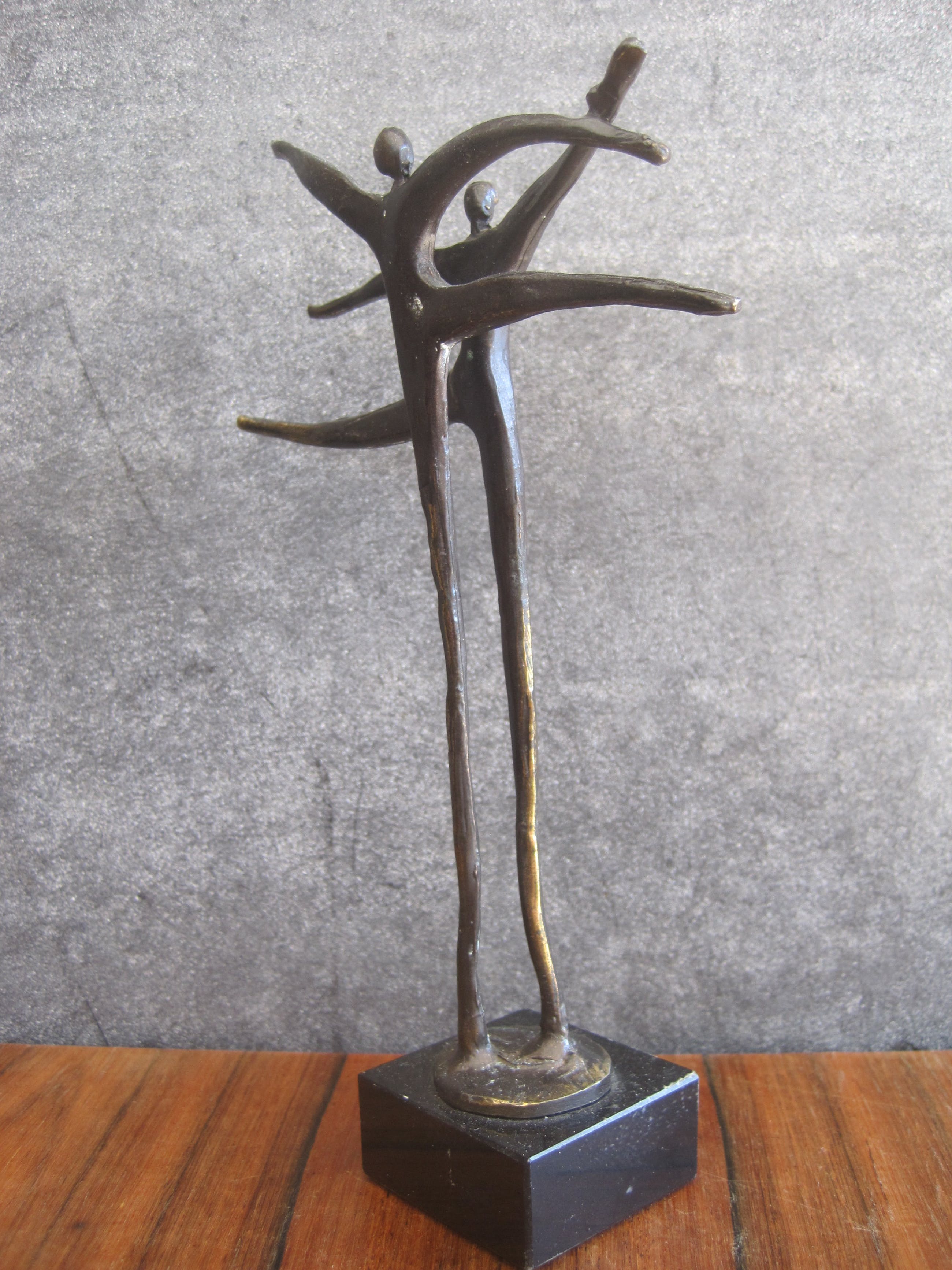 Een in deze tijd pakkende titel voor dit beeldje van Corry Ammerlaan-van Niekerk. het beeldje is gesigneerd in de voet. De afmetingen zijn inclusief de zwart marmeren sokkel.