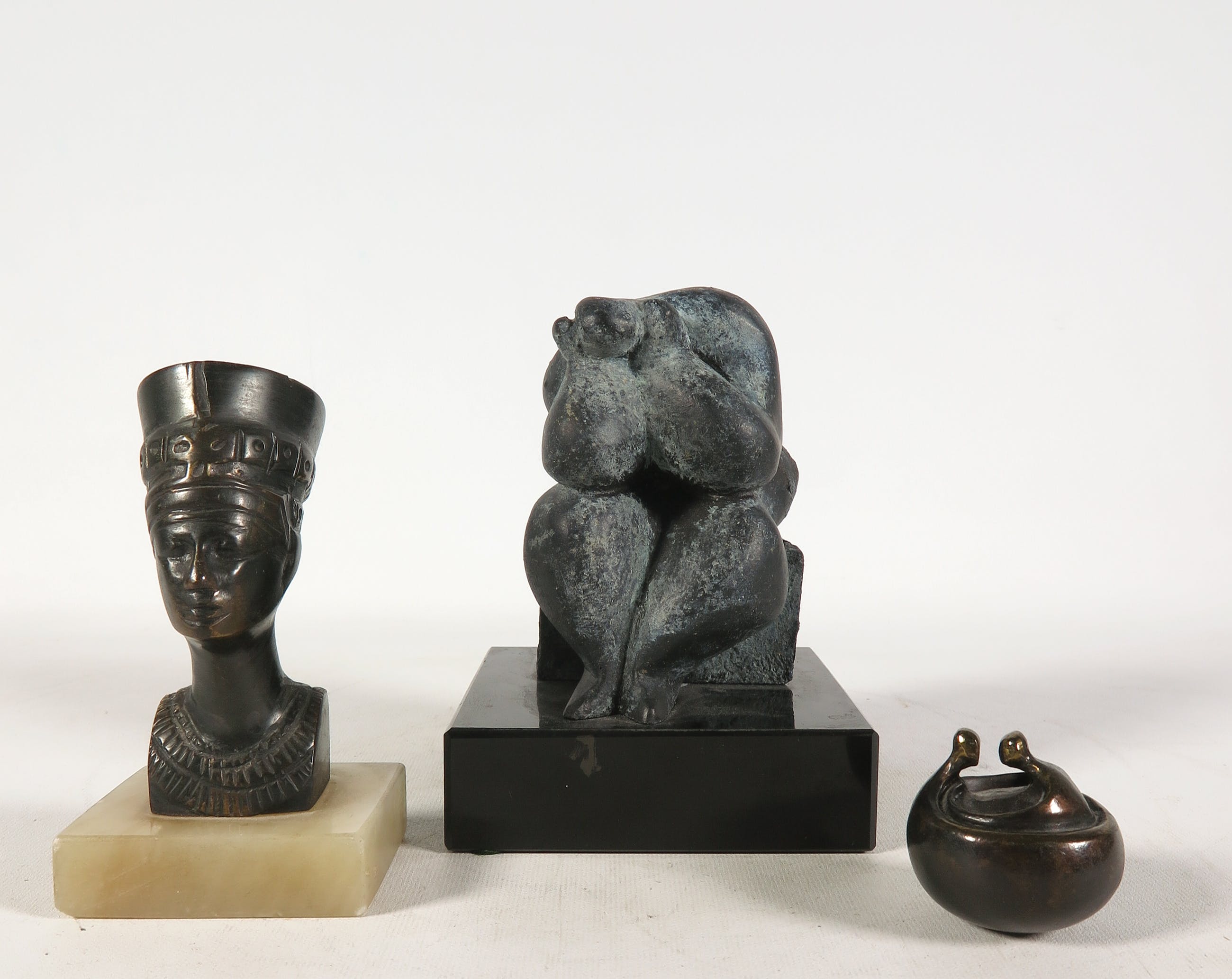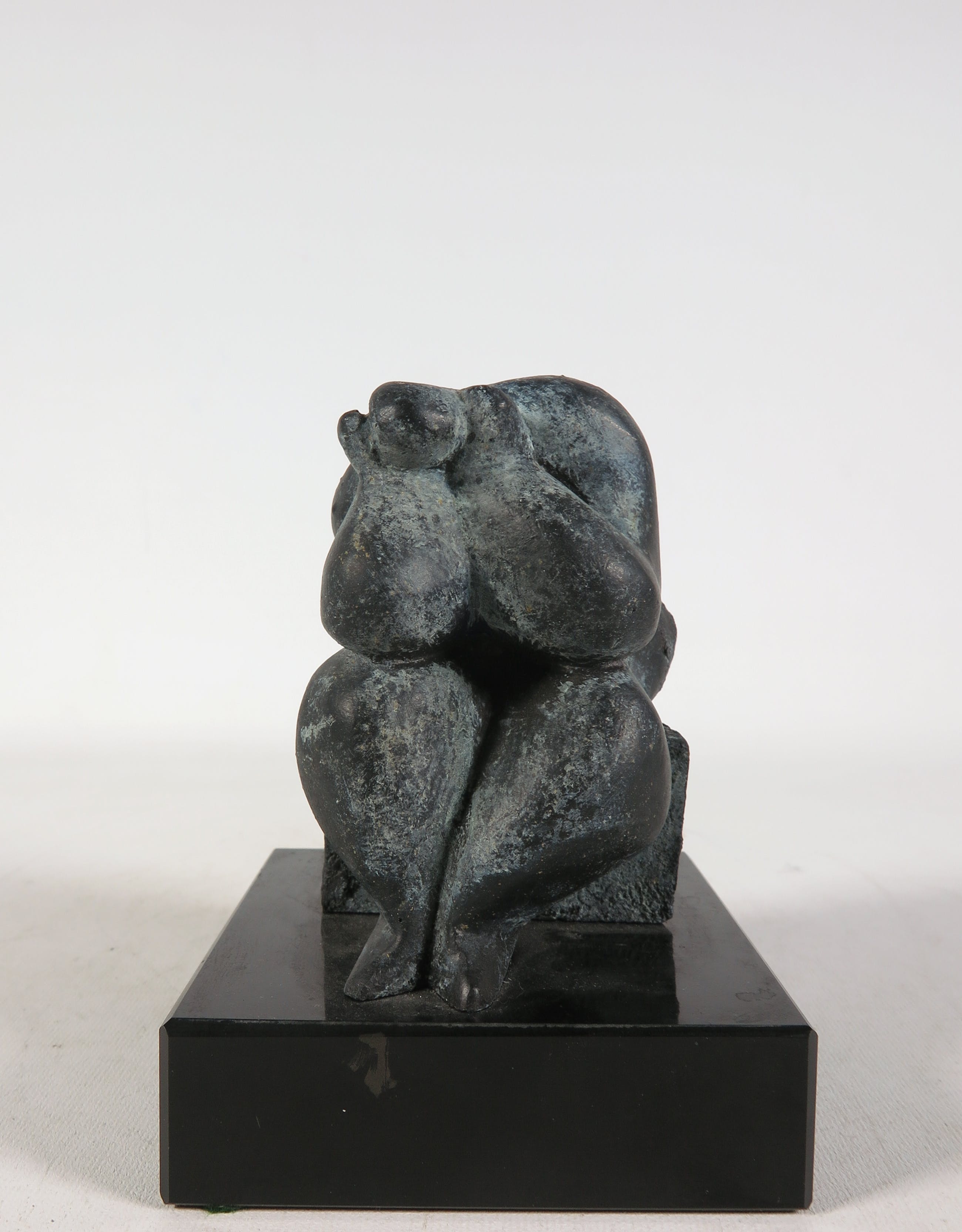 Hans van Tilburg, verbronsd keramiek (?), zittende vrouw: 13 x 10 x 10 cm, 1411 gr.