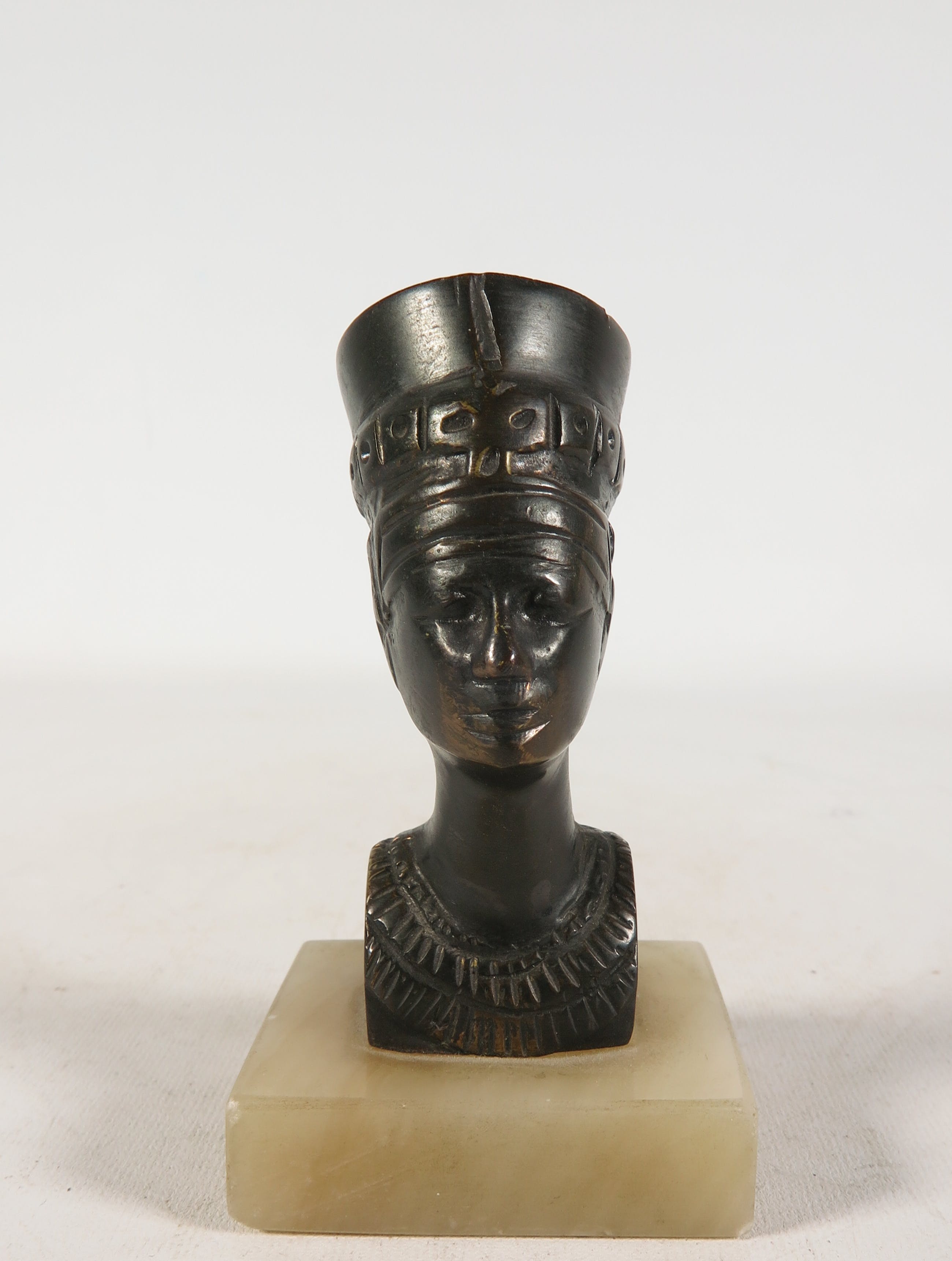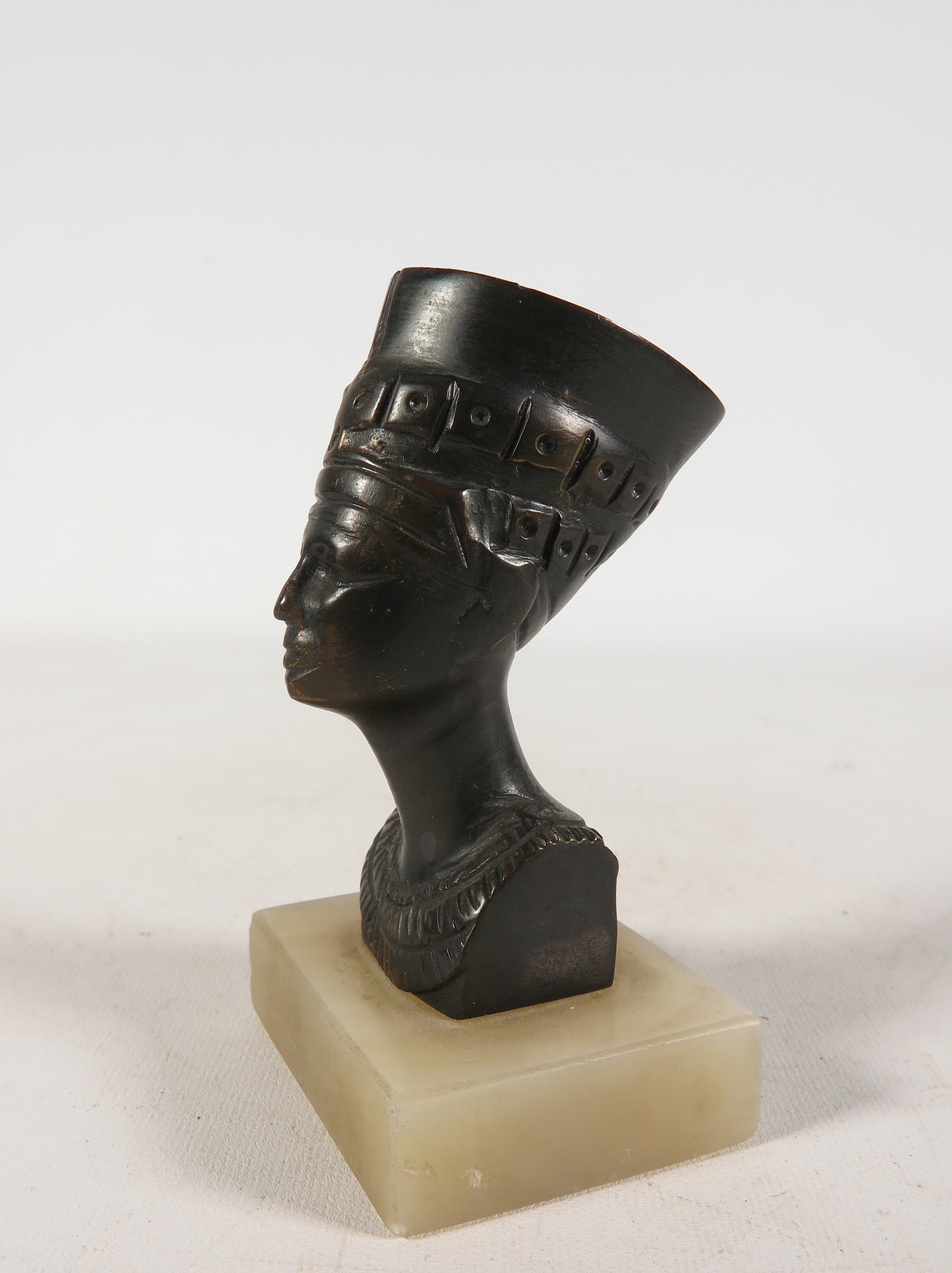 Onbekend, bronzen buste van Nefertiti: 11.5 x 6 x 5 cm, 816 gr.