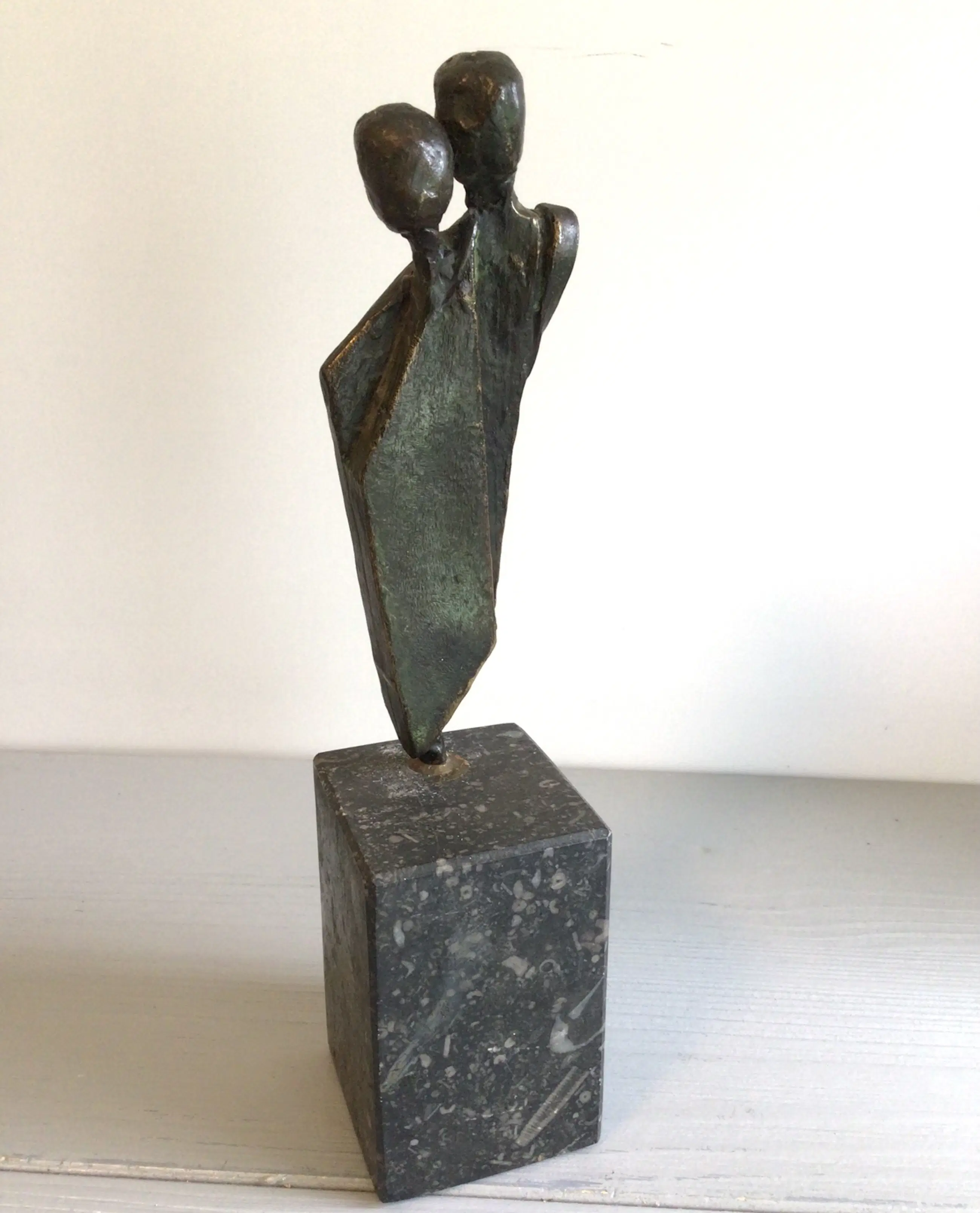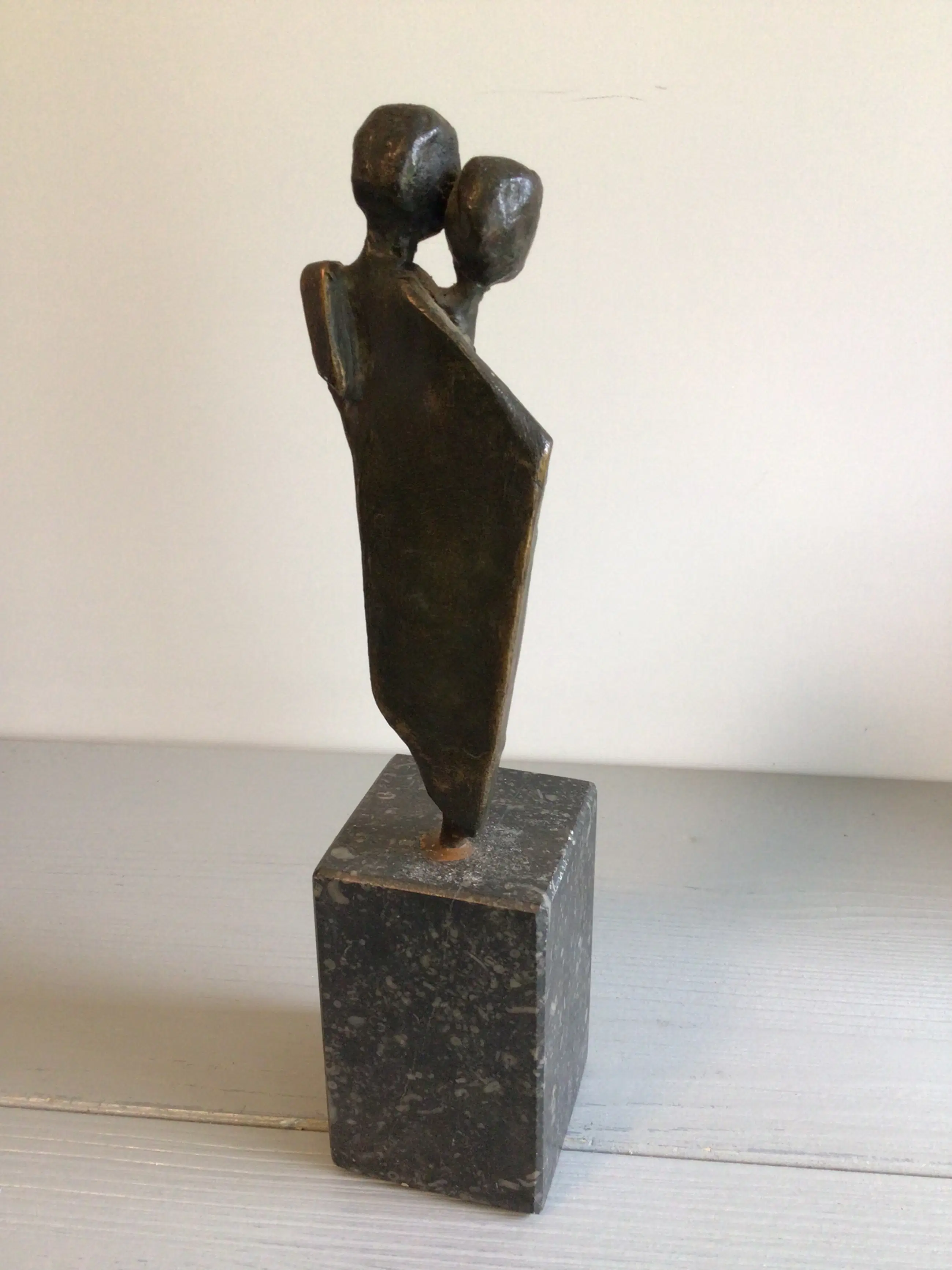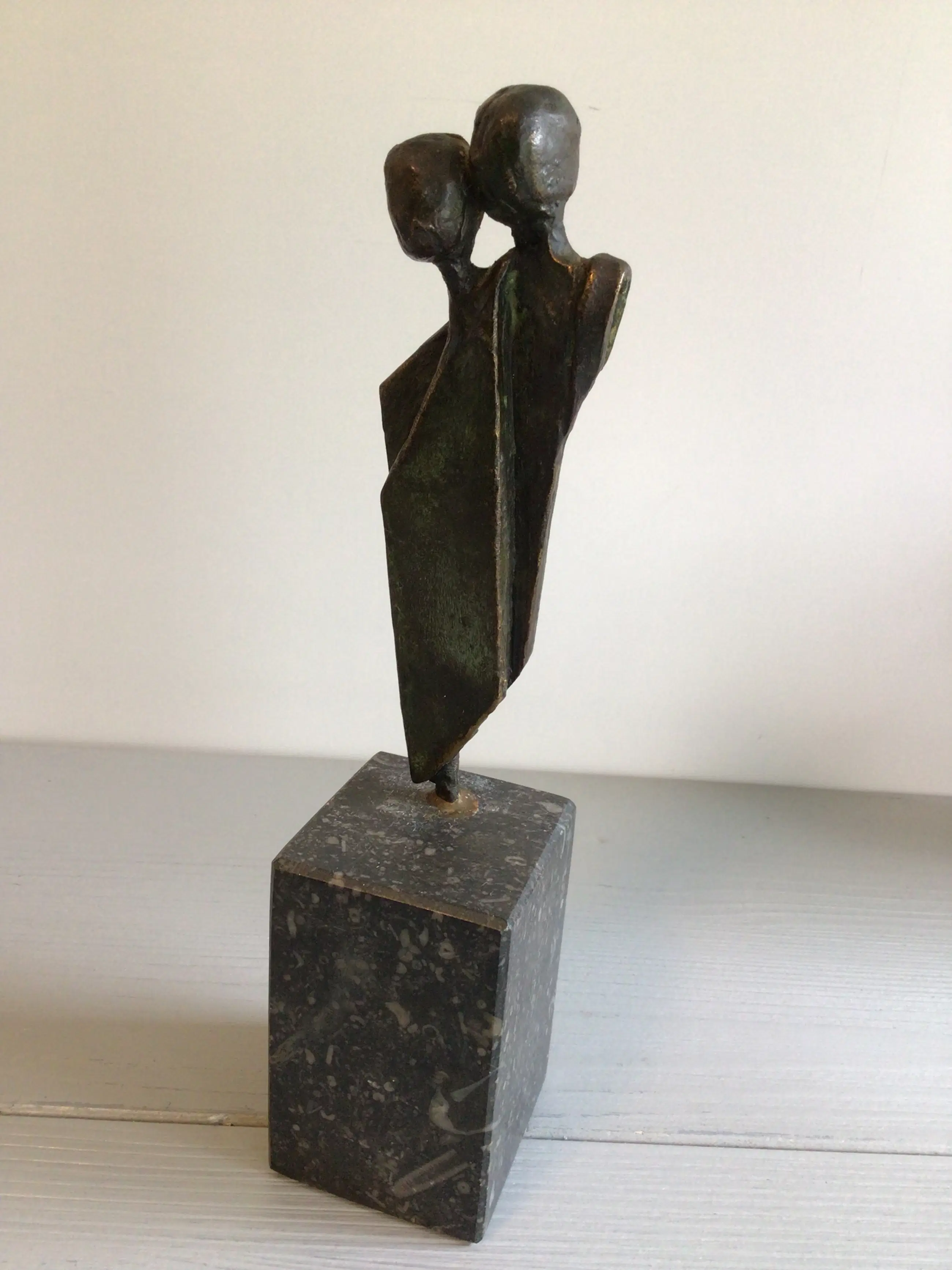 Zeer fraai en zeldzaam sculptuur van een liefdespaar, dicht bij elkaar.. Kunstenares: Corry Ammerlaan. Hoogte : 22 cm Materiaal: brons op marmeren sokkel Het beeld verkeert in goede staat en wordt zorgvuldig verpakt verzonden.