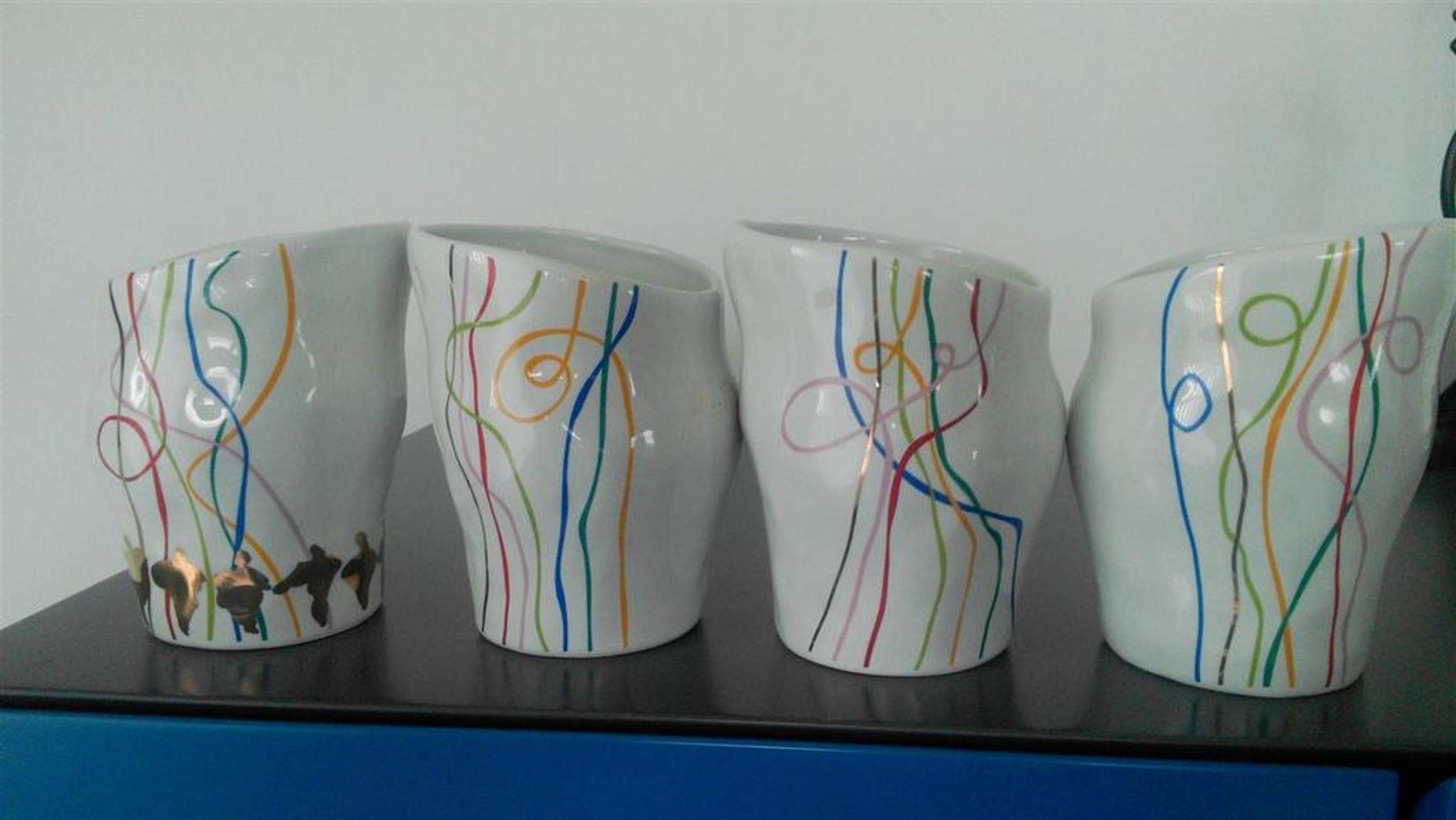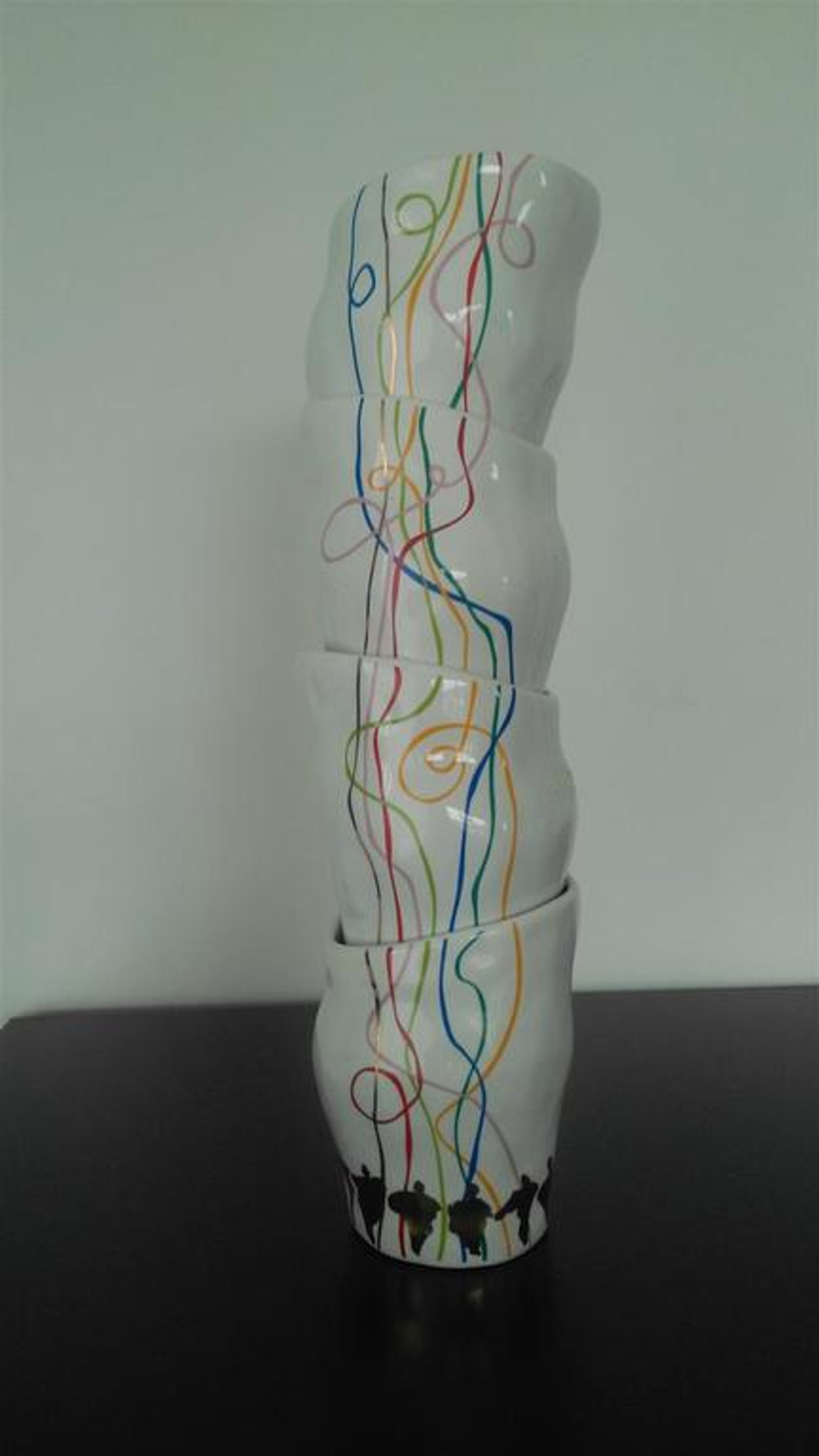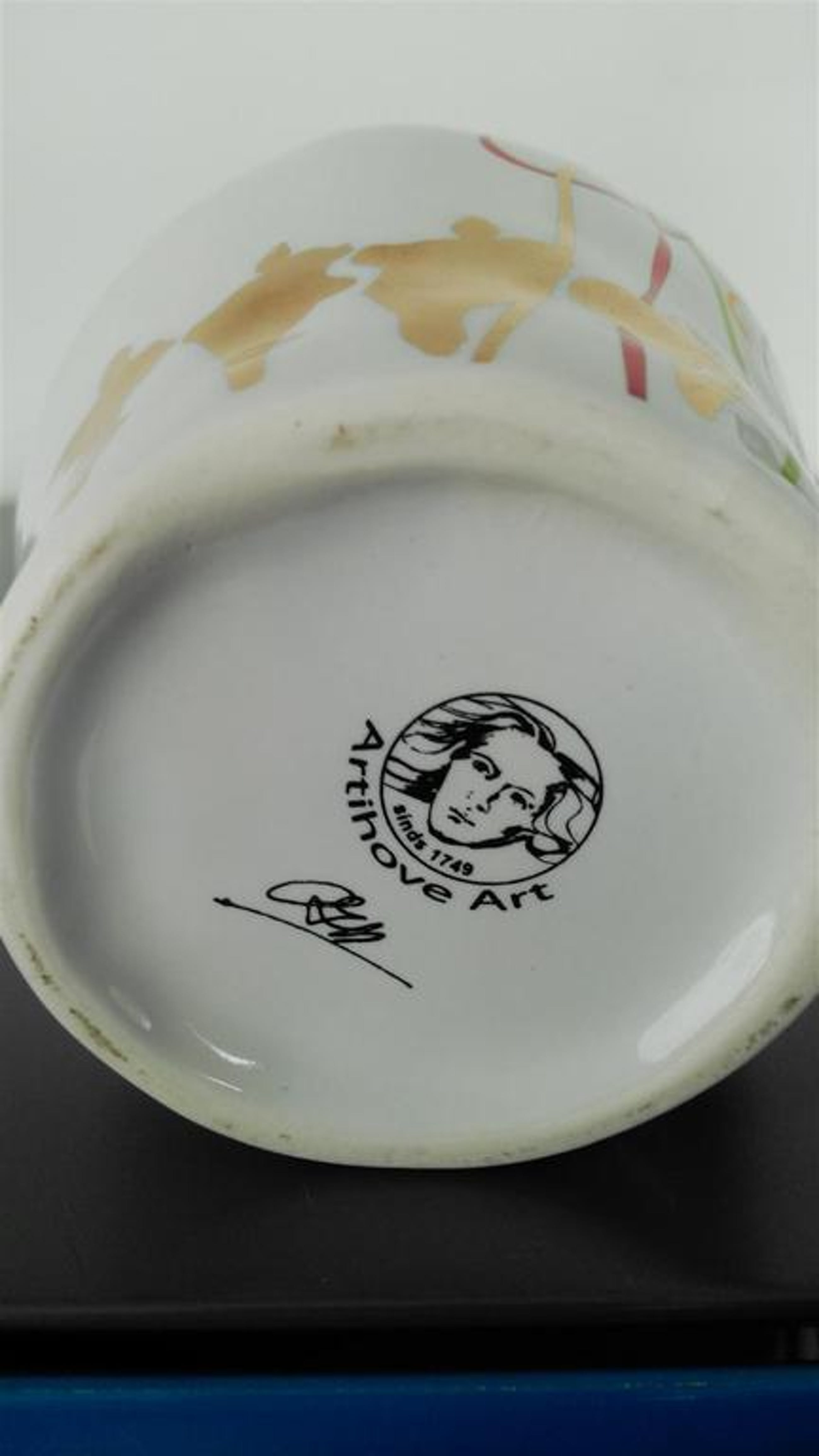 Corry van Ammerlaan Niekerk artistiek directeur van Artihove heeft deze stapelbekers zelf ontworpen en gesigneerd CAN