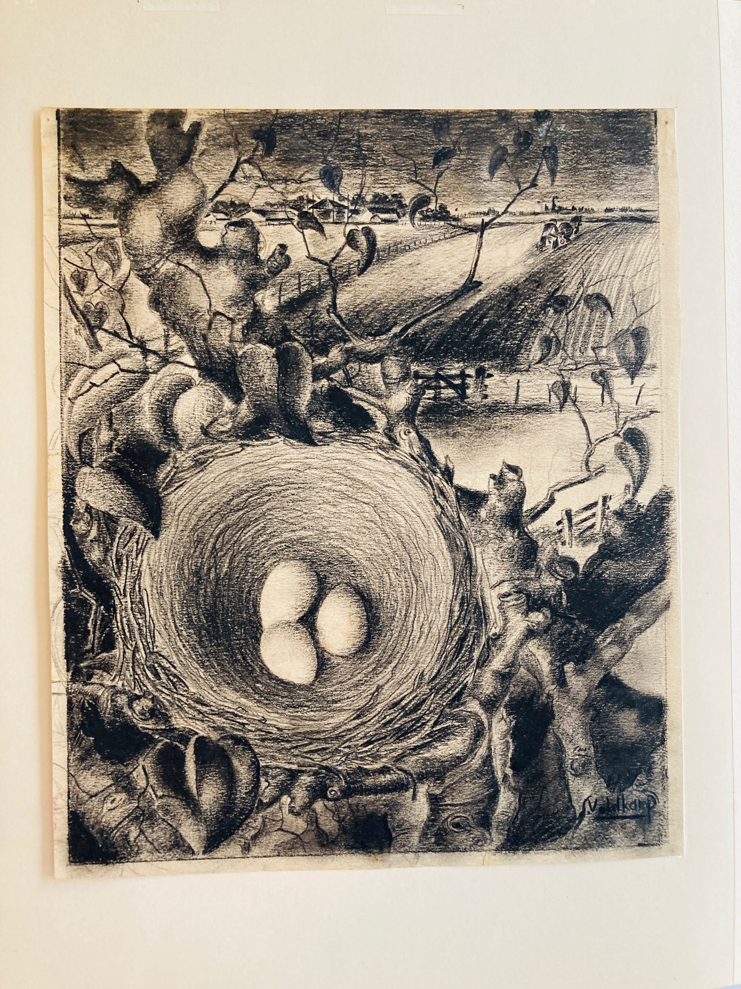 Mooie houtskooltekening van Court Veldkamp (1914-1968). Gesigneerd door de kunstenaar.