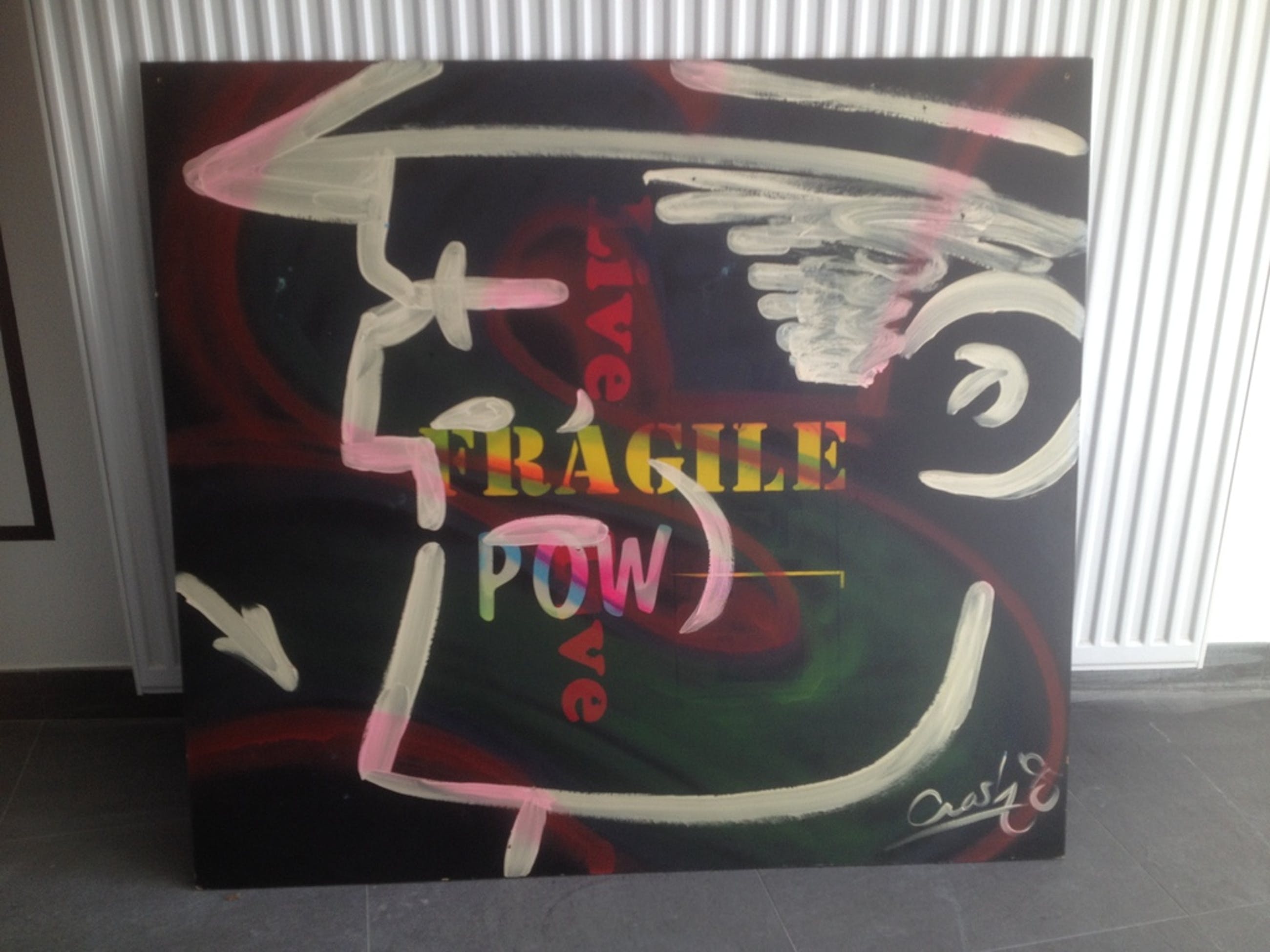 Crash (b. John Matos, Bronx, New York, October 11, 1961) is a graffiti artist. As early as 13, John Matos was spray painting New York City trains, the full image art as opposed to simpler tagging soon transferred to silk screened canvas.[1][2] He was first noticed through his murals on subway cars and dilapidated buildings, he is now regarded as a pioneer of the Graffiti art movement.[3] His work is said to convey a "visual link between street life and established society".[4] In 1980, Crash curated the now iconic exhibition:"Graffiti Art Success for America" at Fashion MODA, launching the graffiti movement that has remained very active through today. By the 1980s Matos had exhibits across the United States and abroad. Galerie Yaki Kornblit was the first instrumental gallery in Amsterdam that help launch his career in Europe. In 1981 Crash, along with 10 other artists were chosen by The Public Art Fund to design animated imagery for The Spectacolor Billboard in Times Square. He was given his first gallery showing by Sidney Janis at the Sidney Janis Gallery in 1983.[1][3] Chase Manhattan, N.A., as well as CITIBANK, N.A., and other collections came calling. In 1984, Crash along with Keith Haring painted mural installations for the 5/5 Figuration Libre France/USA at the Musee d'art Moderne de la Villa de Paris. In 1988 he sprayed Notes in the Wind measuring 178 x 178 centimetres to be exhibited and eventually to be owned by the Peter Stuyvesant Foundation in Zevenaar, Netherlands. In 1995, Crash was commissioned by British American Tobacco to create a commission for Lucky Strike brand cigarette, joining fellow artist Keith Haring, to create a special work for this company and their collection.