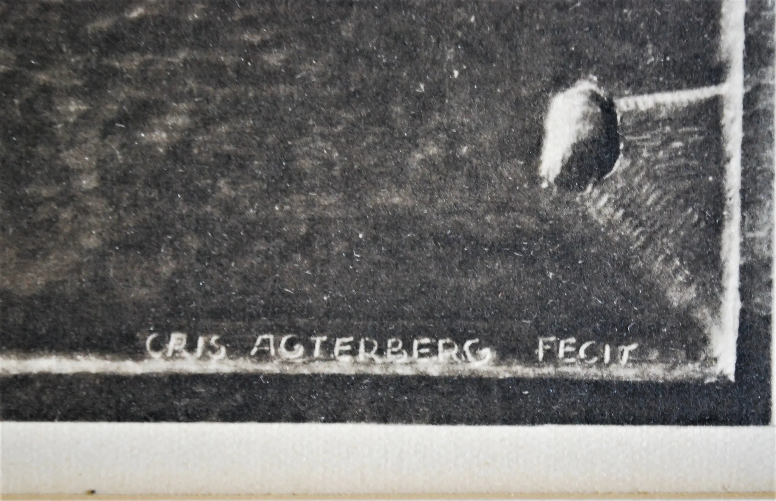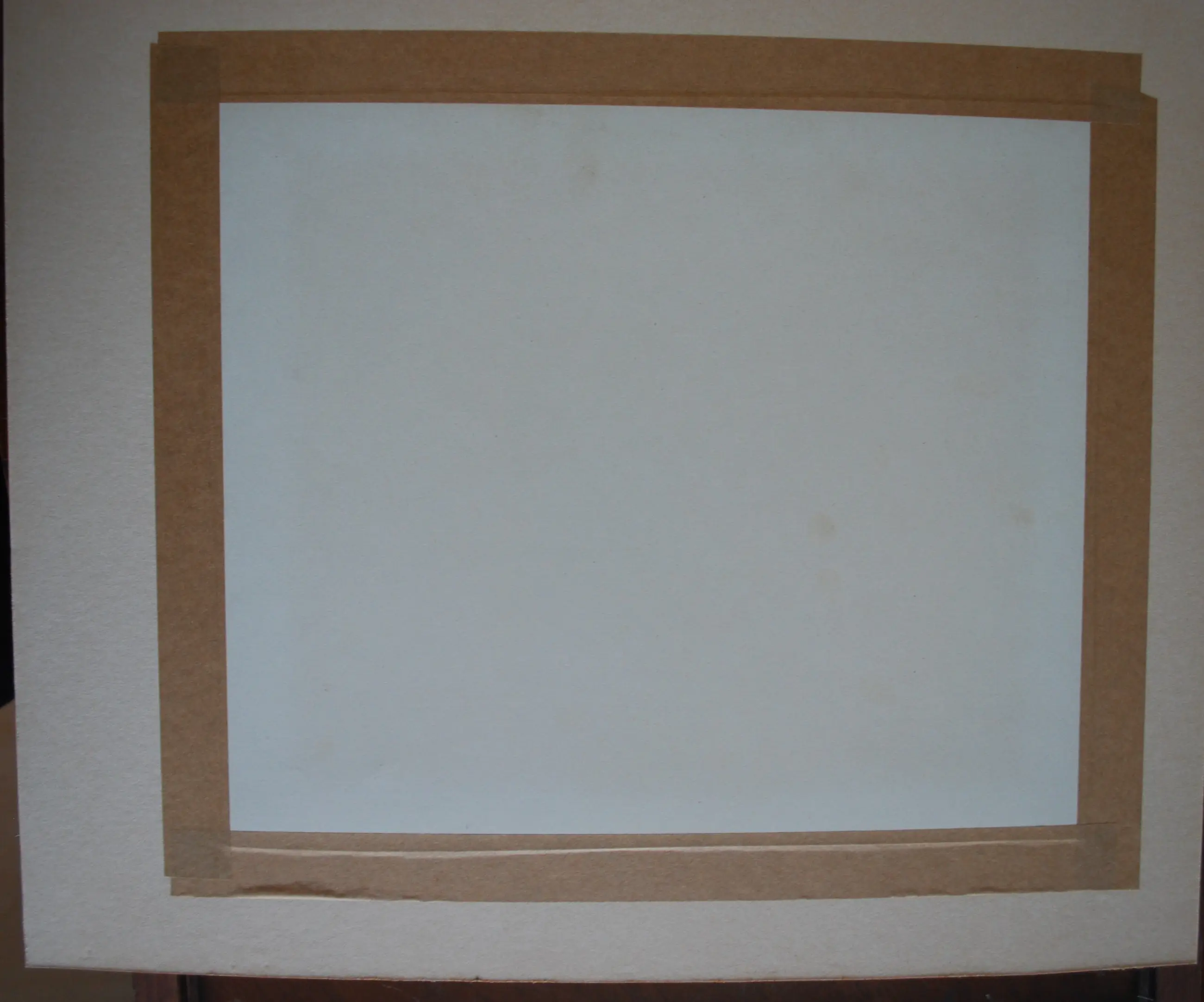Achter passepartout en glas in een hardhouten lijst met gouden bies (wat slijtschade), 39x46 cm.