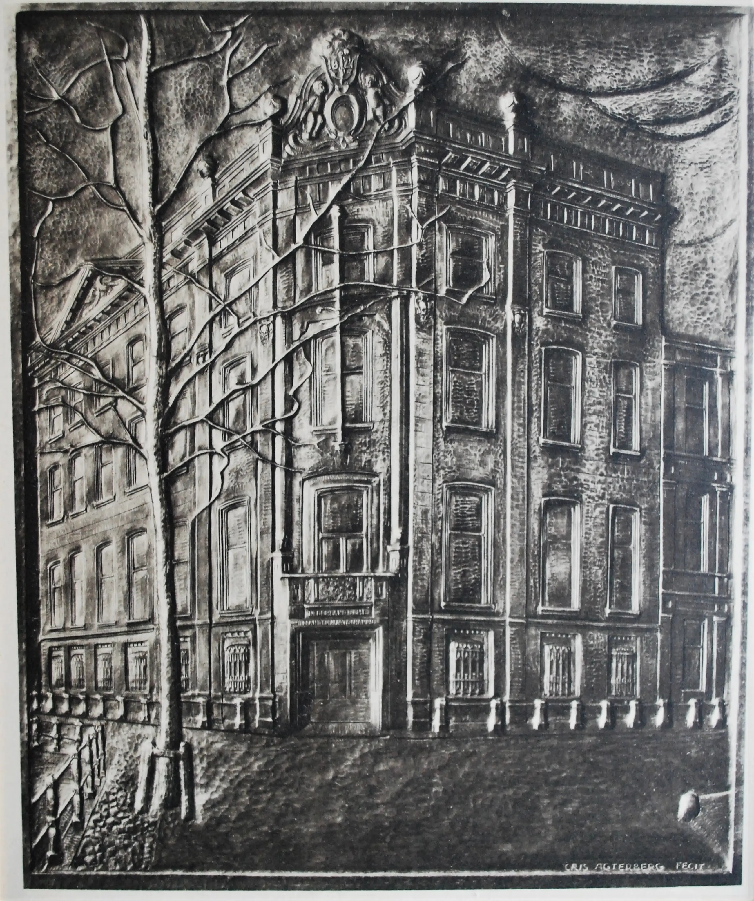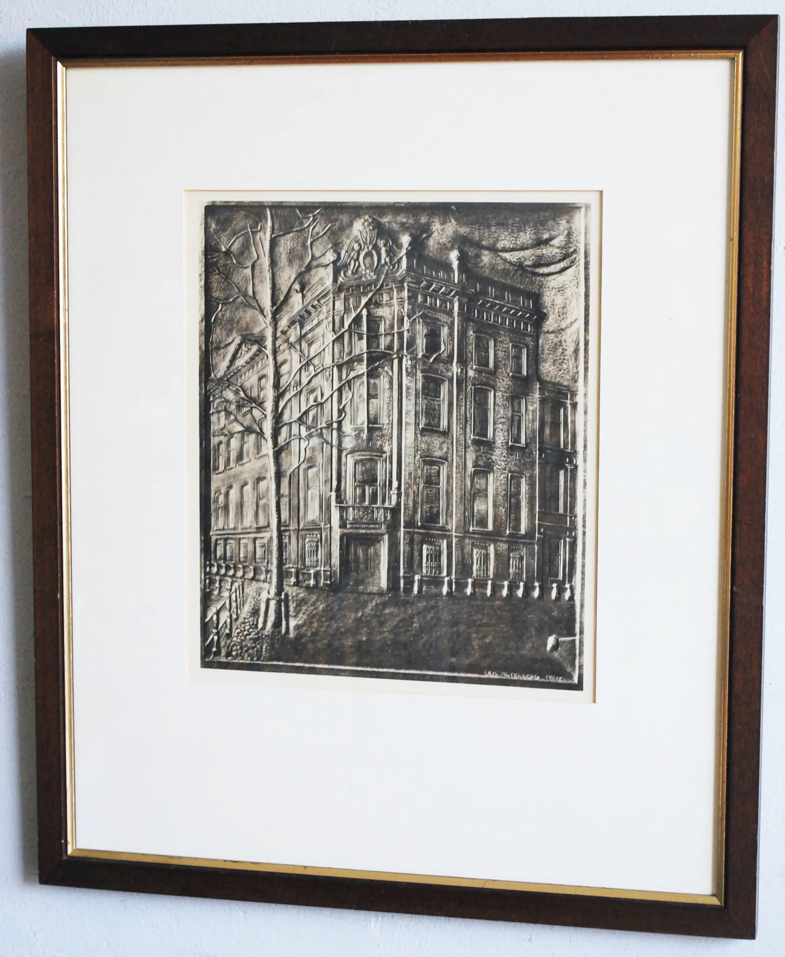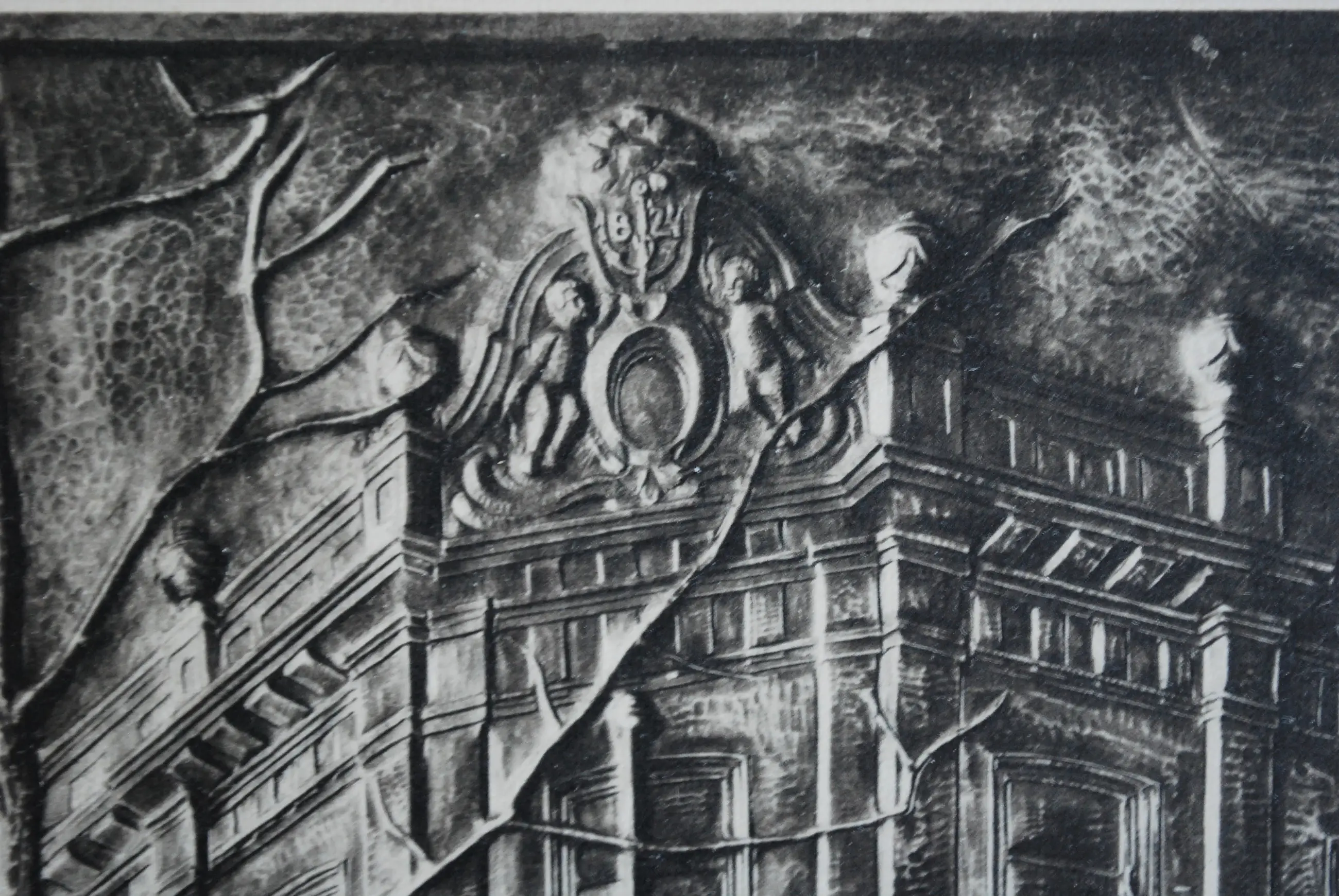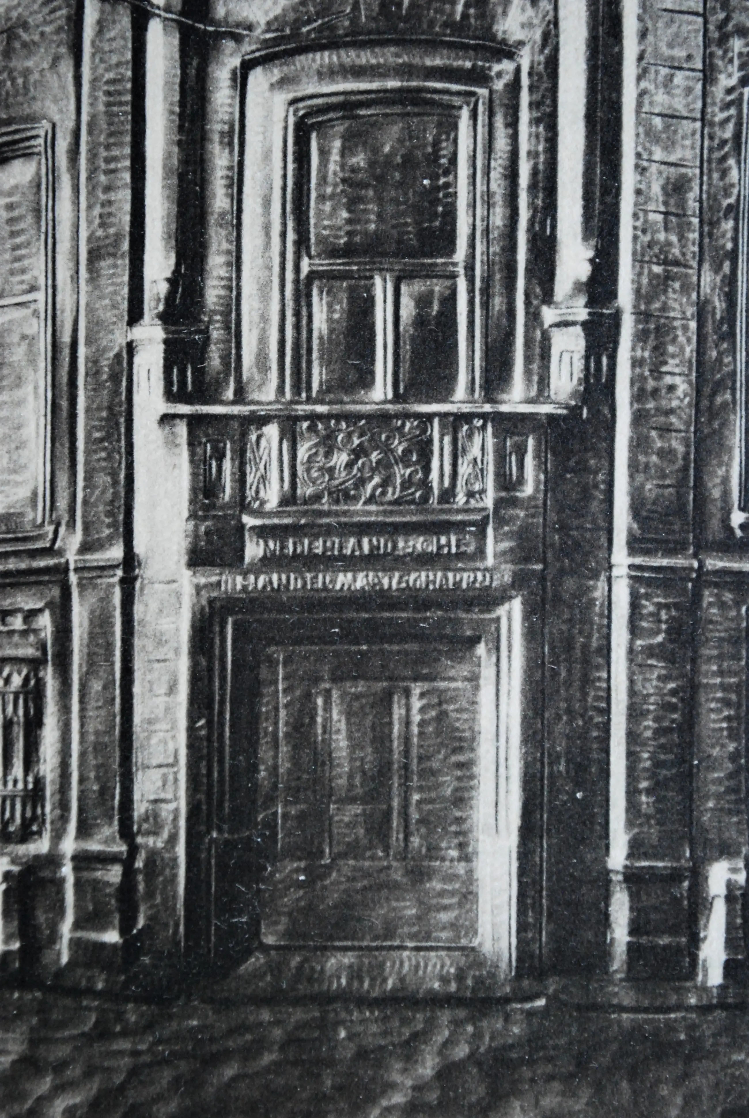 (foto)lithografische druk op stevig papier, 30x25 cm. Mogelijk een uniek exemplaar, ik kan geen referentie hiervan vinden. Het betreft hier een afbeelding van de Nederlandse Handels Maatschappij (de latere ABN AMRO) op een gracht.