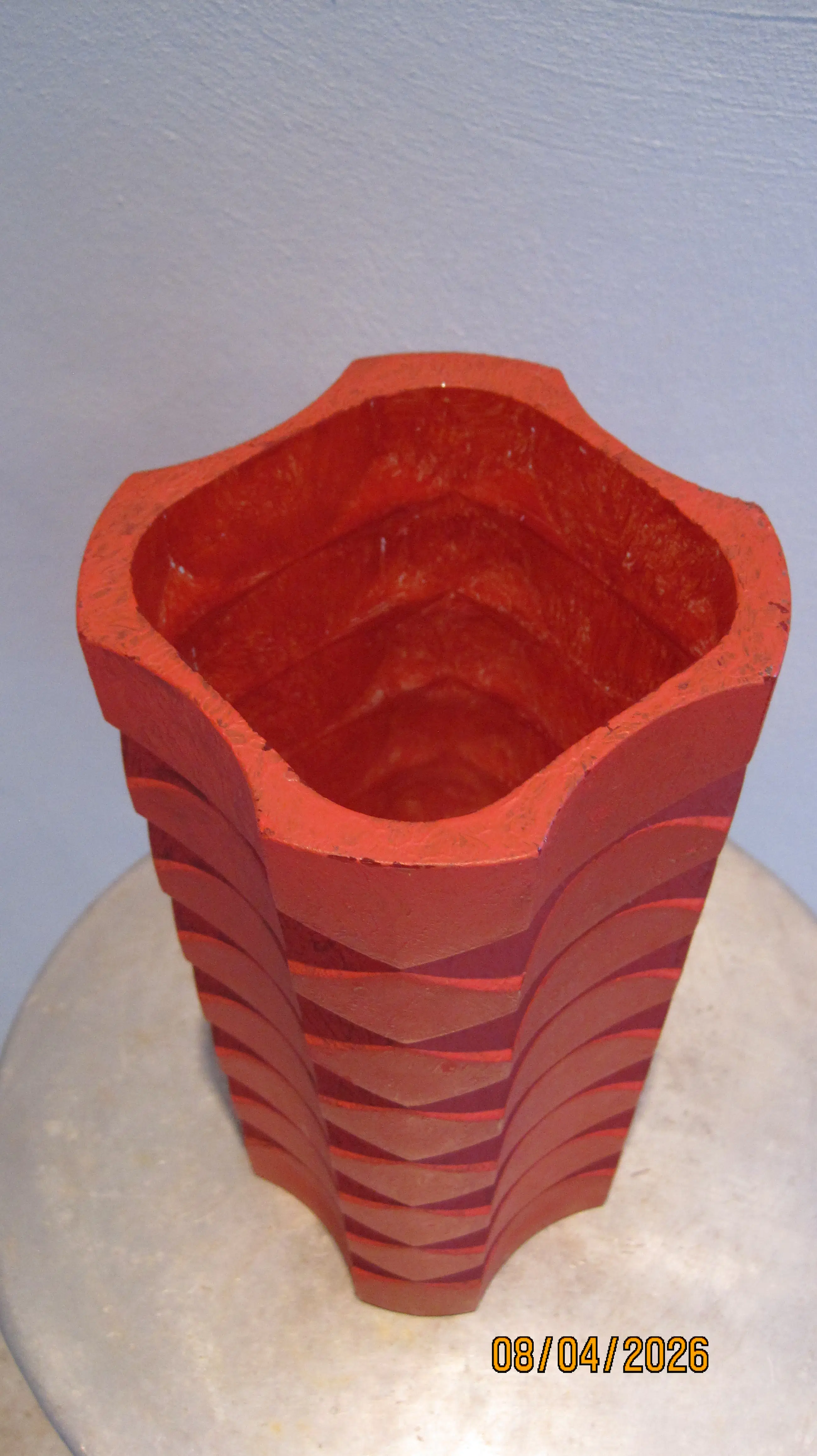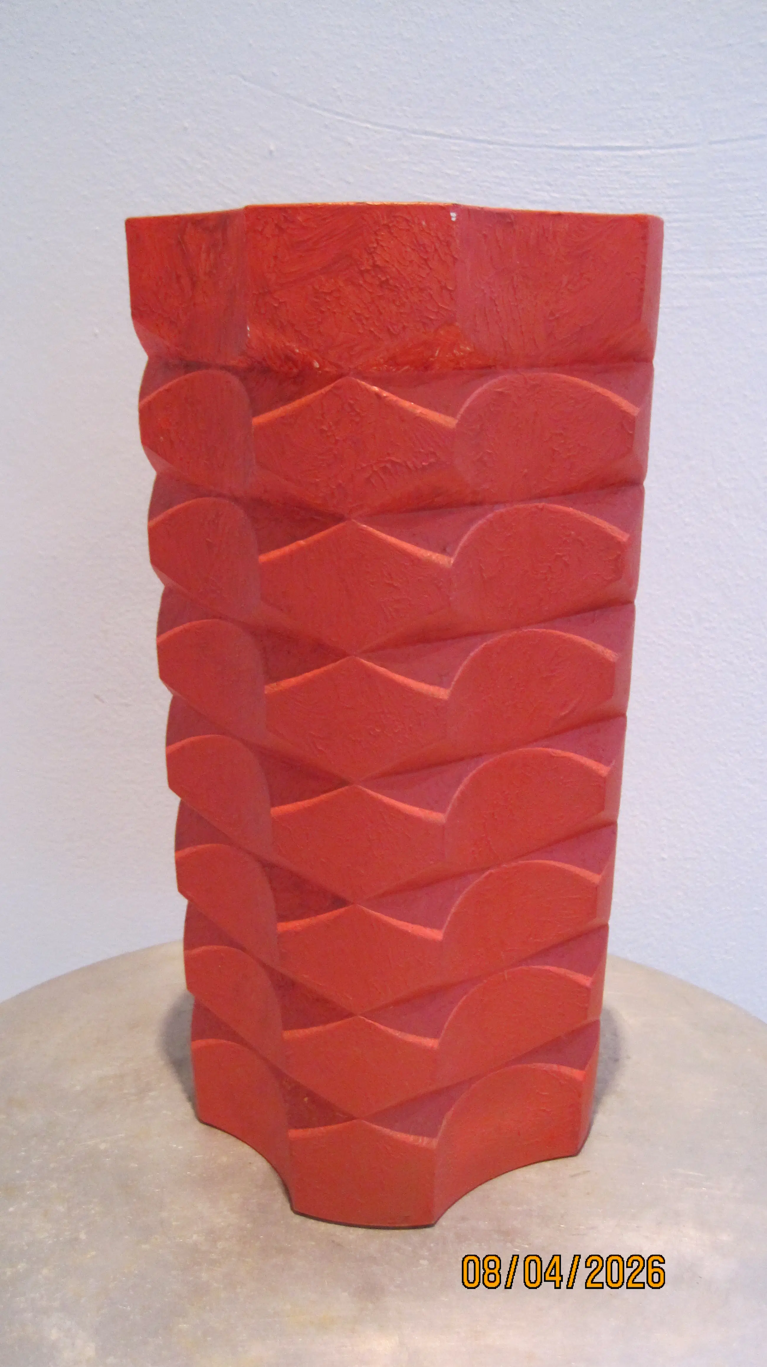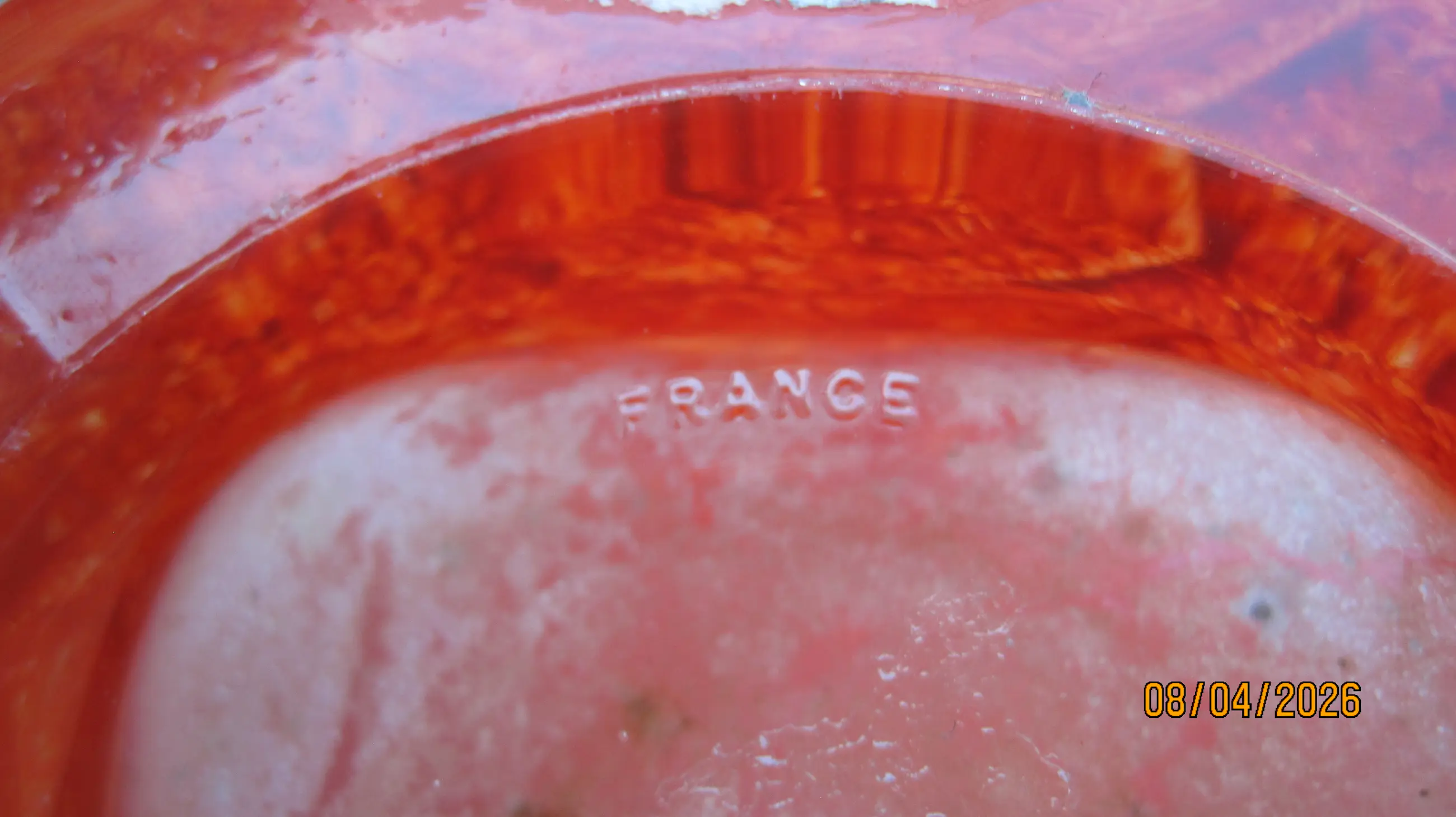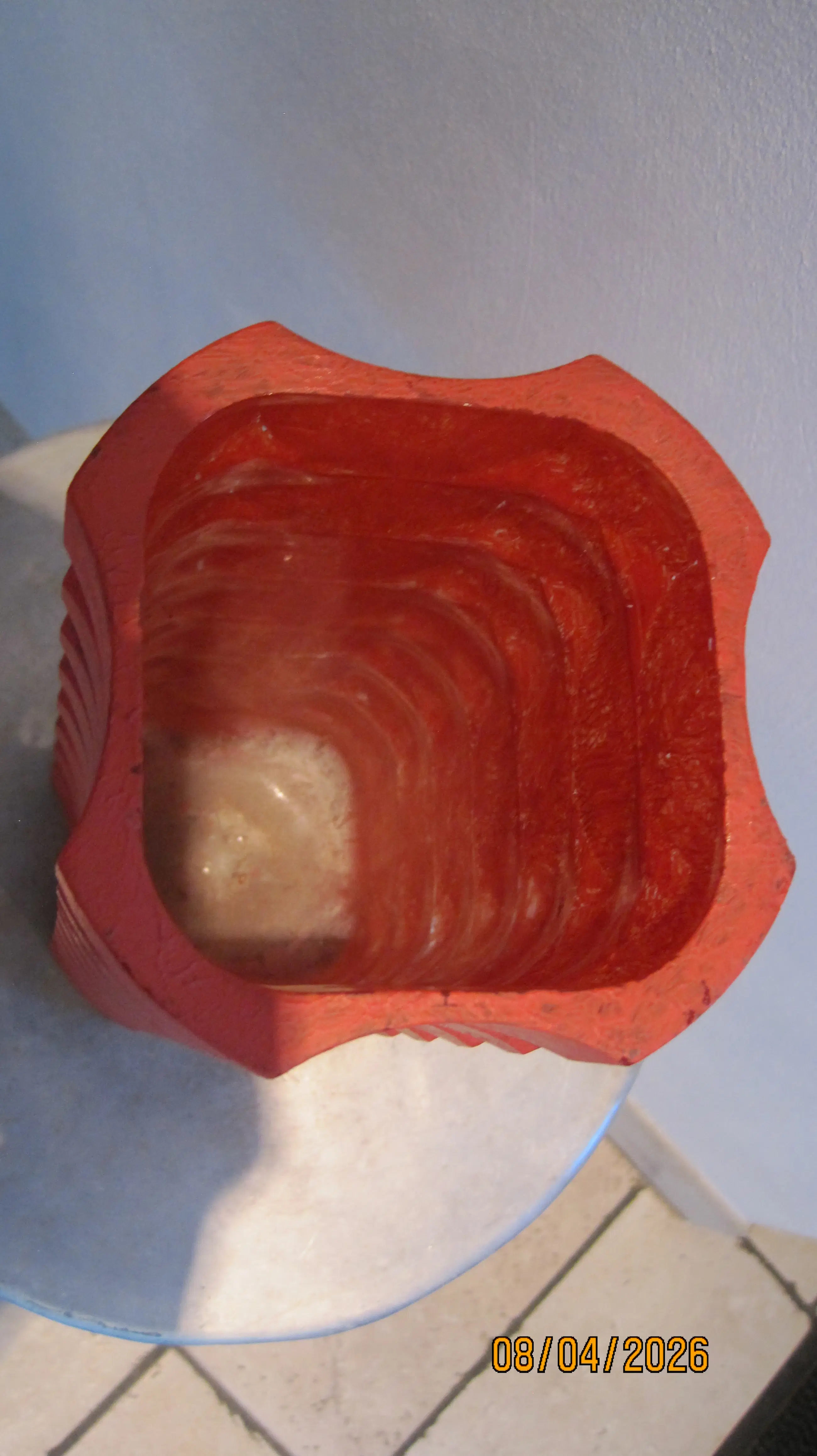 Deze fraaie vaas Windsor uit loodkristal gemaakt is een ontwerp uit de jaren 1960 door J.G. Durand. De staat van de vaas is "as found ", puntgaaf, maar rood beschilderd door een vorige eigenaar. Dit is gebeurd met acrylverf, dus makkelijk te verwijderen. Persoonlijk vind ik de rode kleur heel goed staan, het geeft diepte in het ontwerp. Gemerkt met FRANCE op de onderkant.