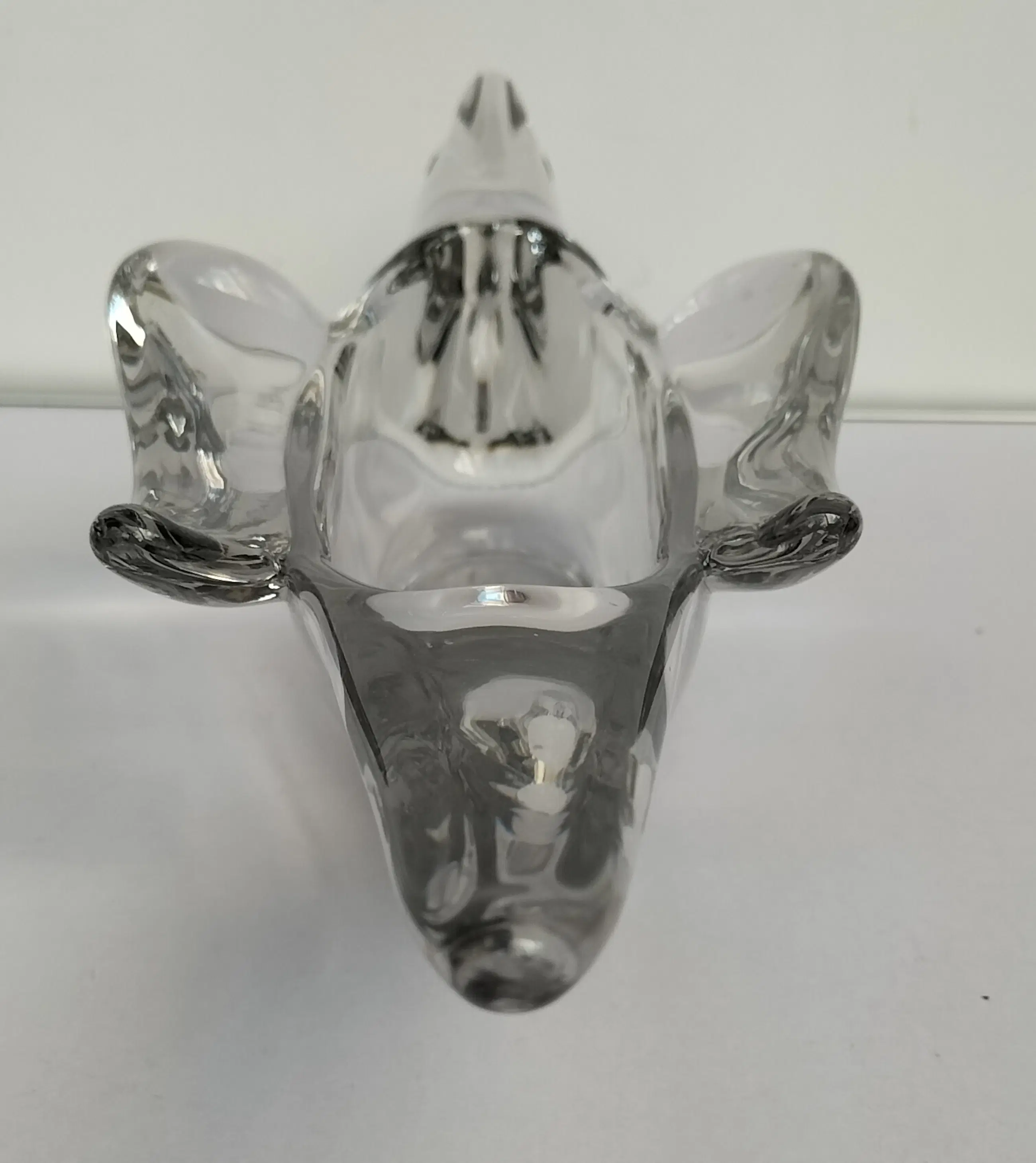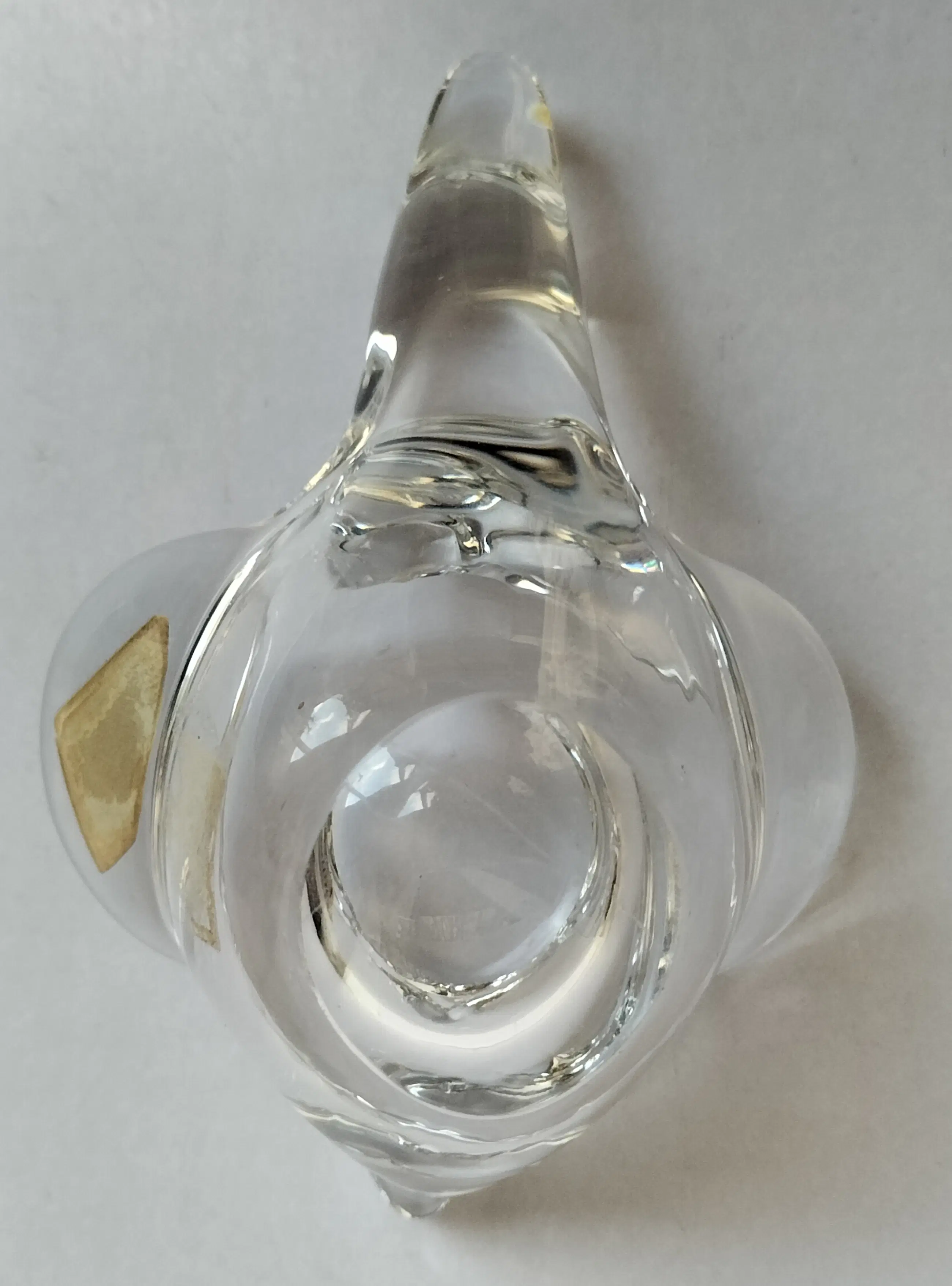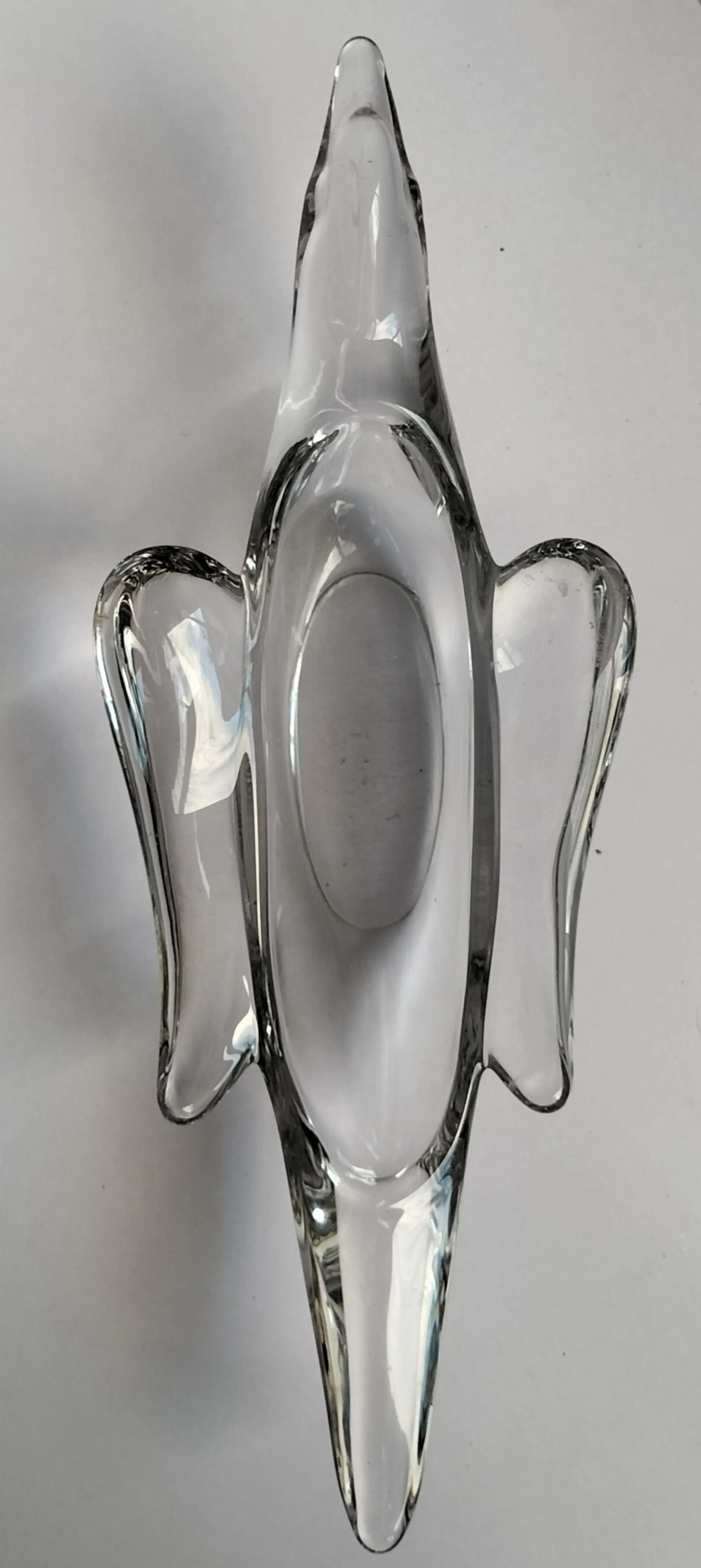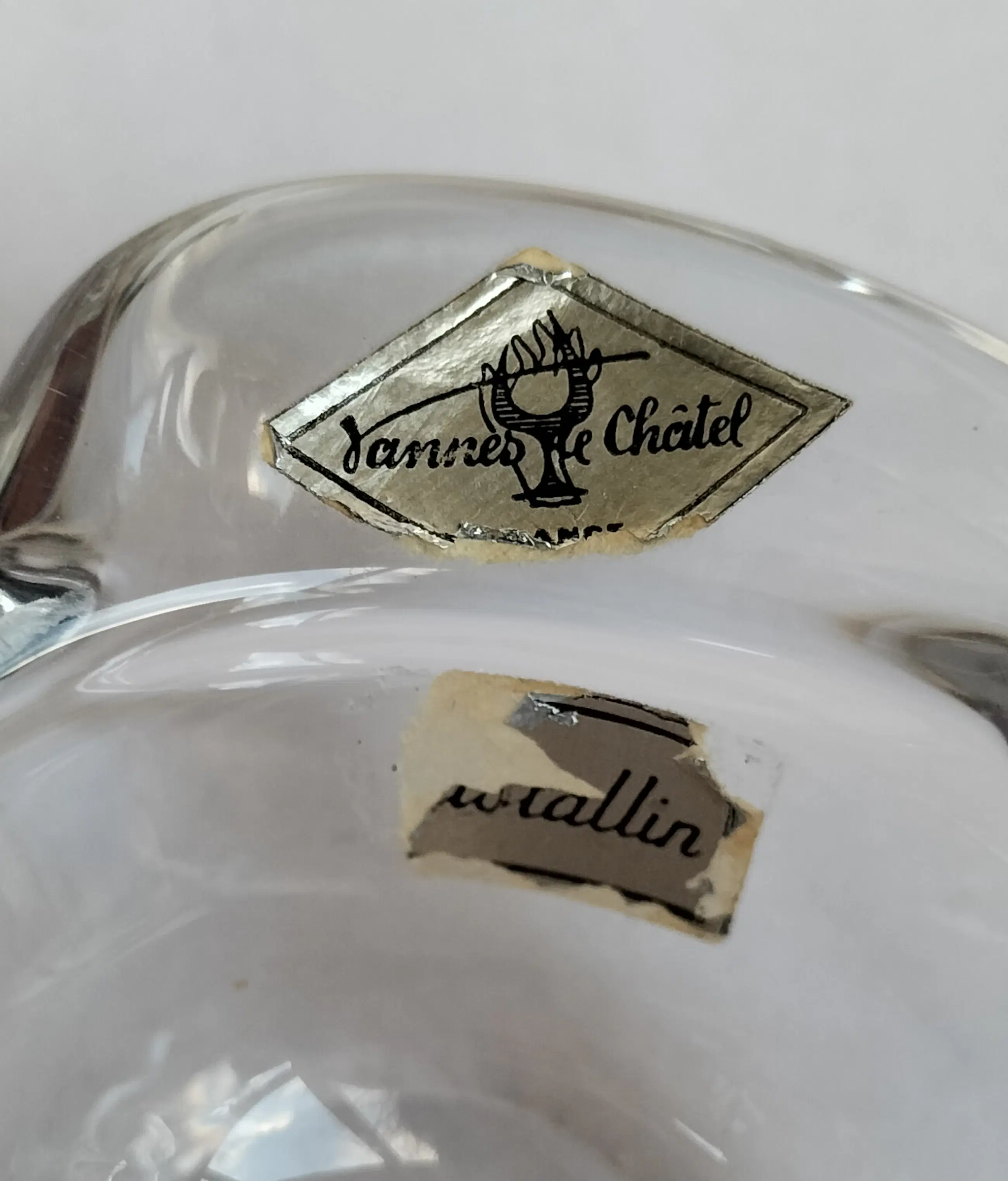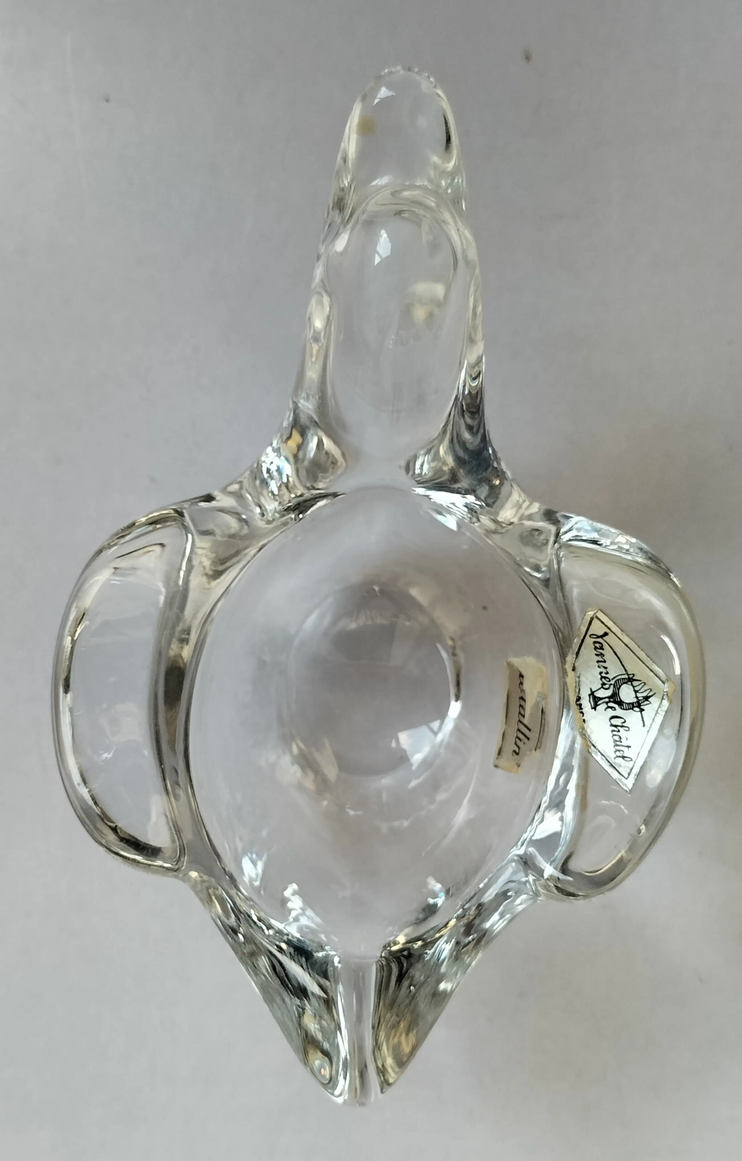 Een zeer mooie kristallen schaal in de vorm van een vogel, alsmede een schaaltje van dezelfde vogel maar dan kleiner van formaat, van Vannes France uit de jaren 60.
