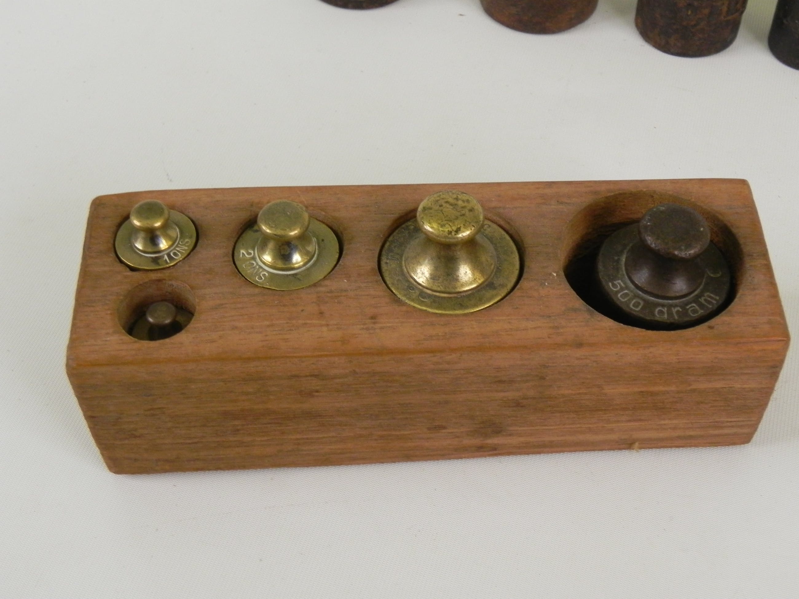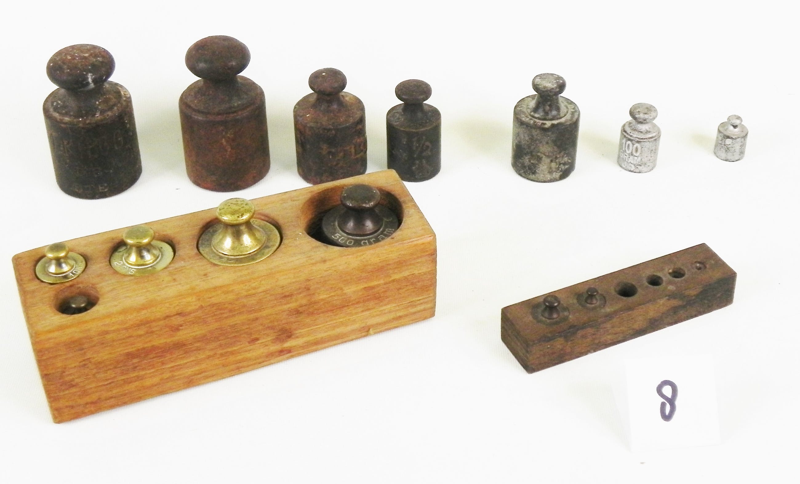2 blokken met serie gewichten en 7 losse gewichten