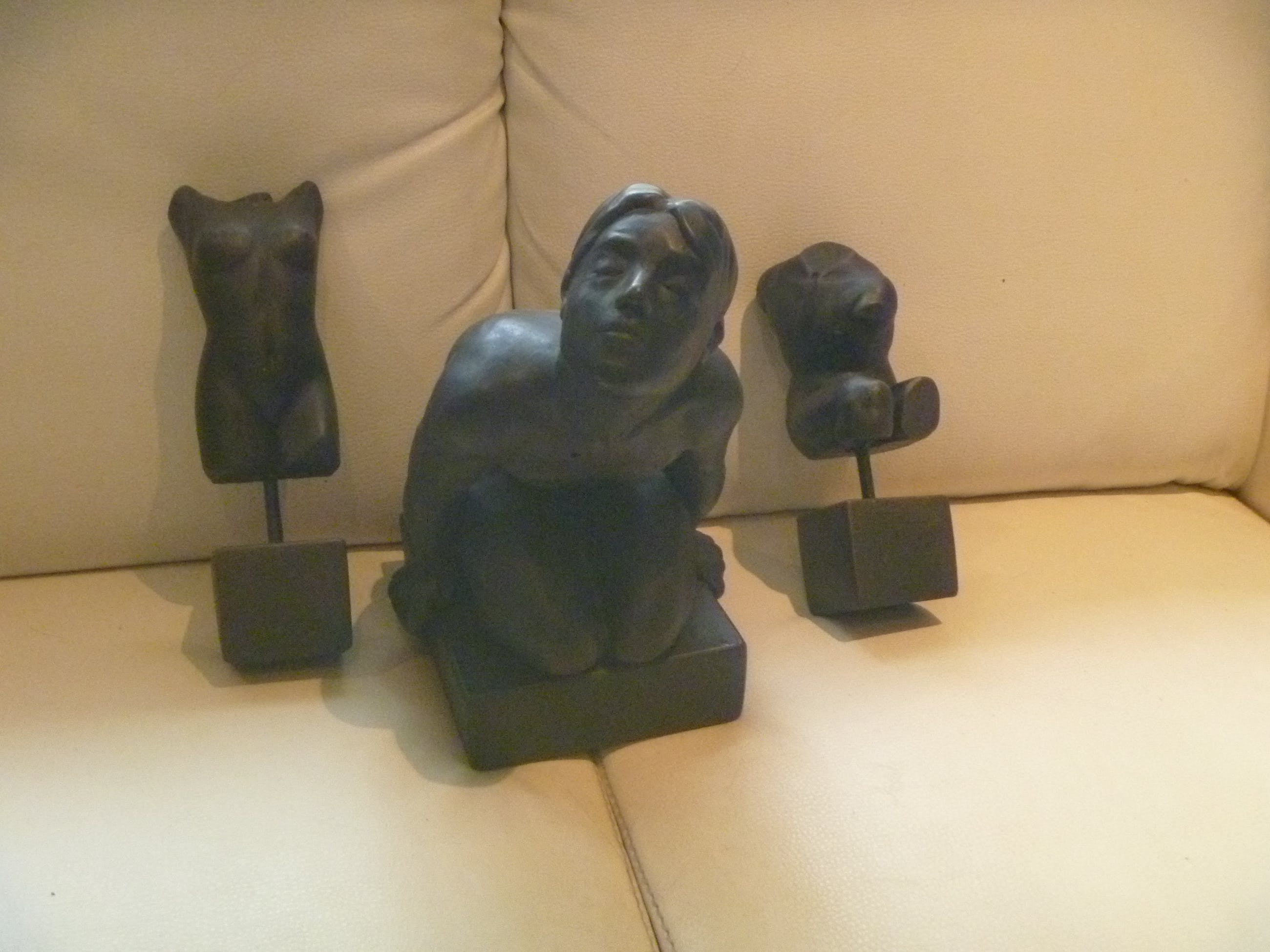 2 torso , man en vrouw . het torso van de vrouw is gesigneerd , maar helaas is alleen de datum , 1998 leesbaar en de c ( copyright) . hoogte van torso vrouw : 28 cm , van de man : 24 cm