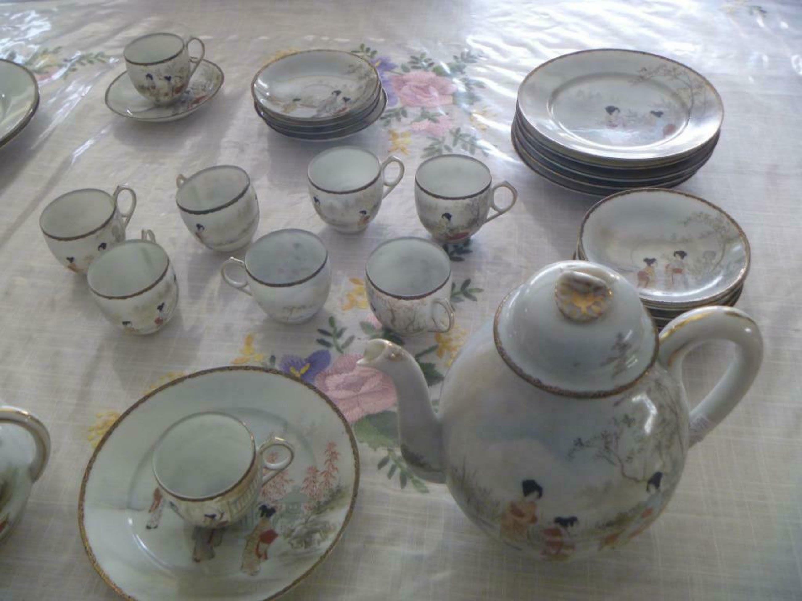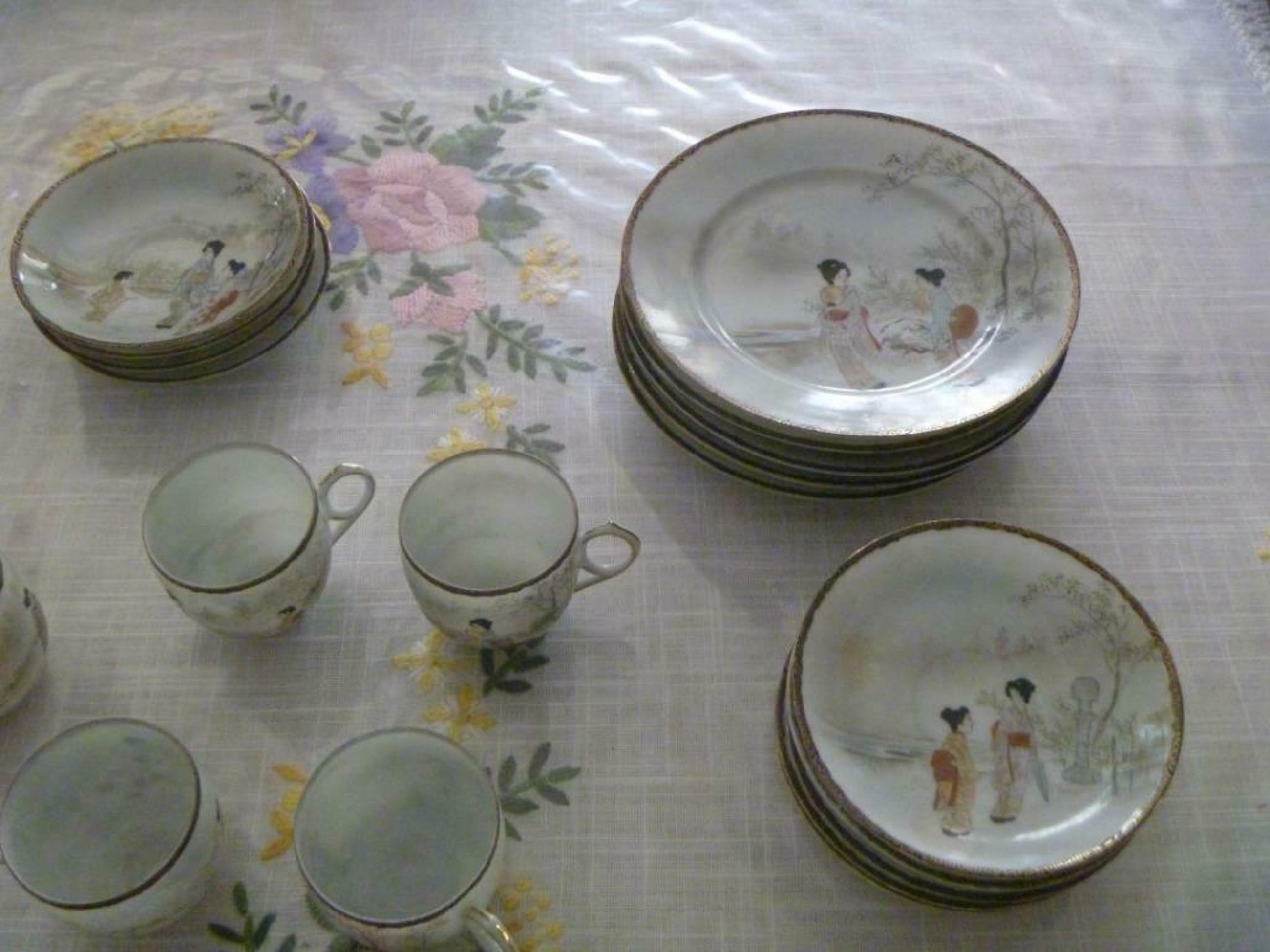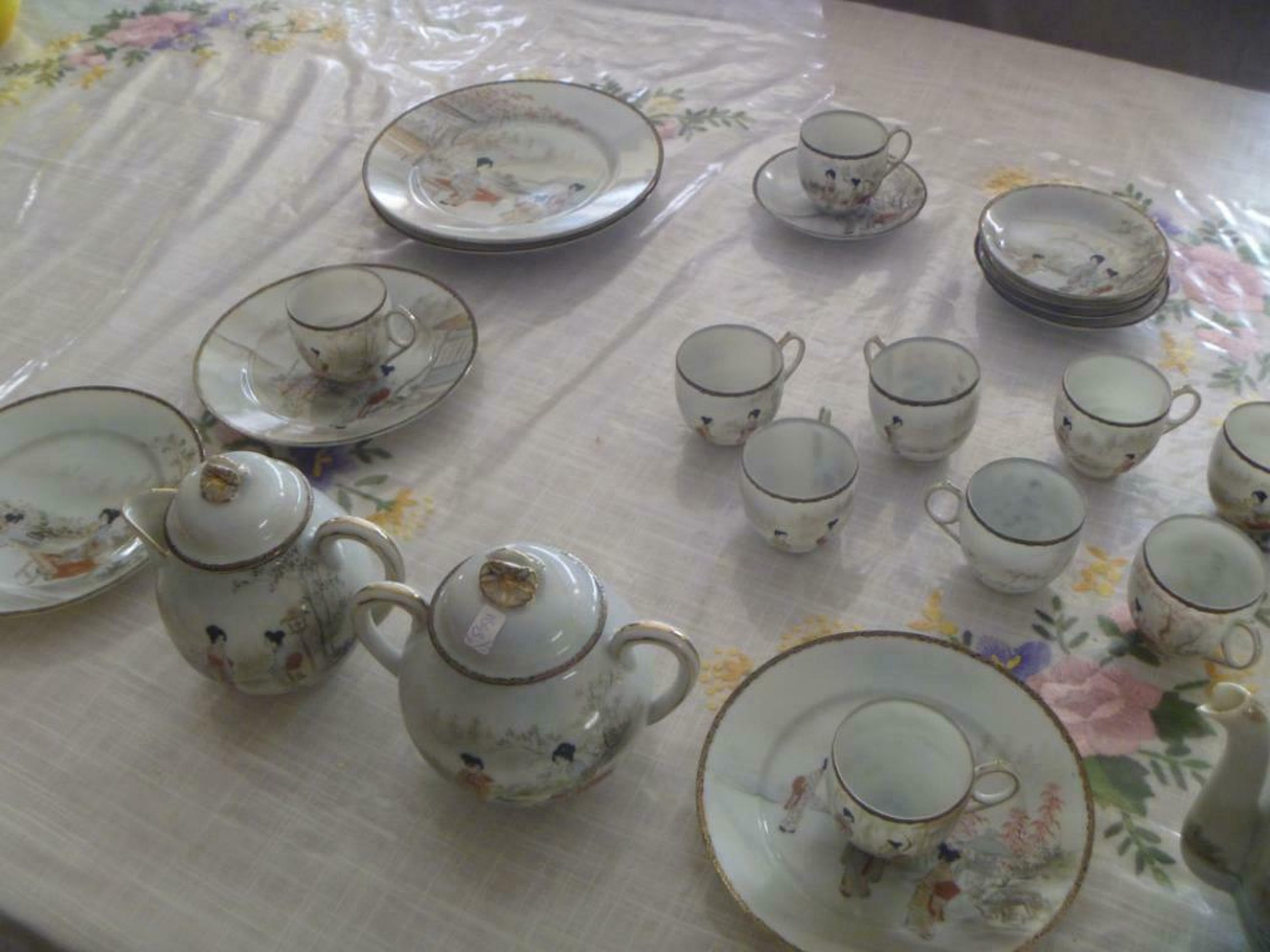 een 30-delig servies van eier-schaal porcelein , zeer breekbaar dus wordt zeer goed verpakt en verzekerd verzonden . verzendkosten Nederland en BElgie 10 euro