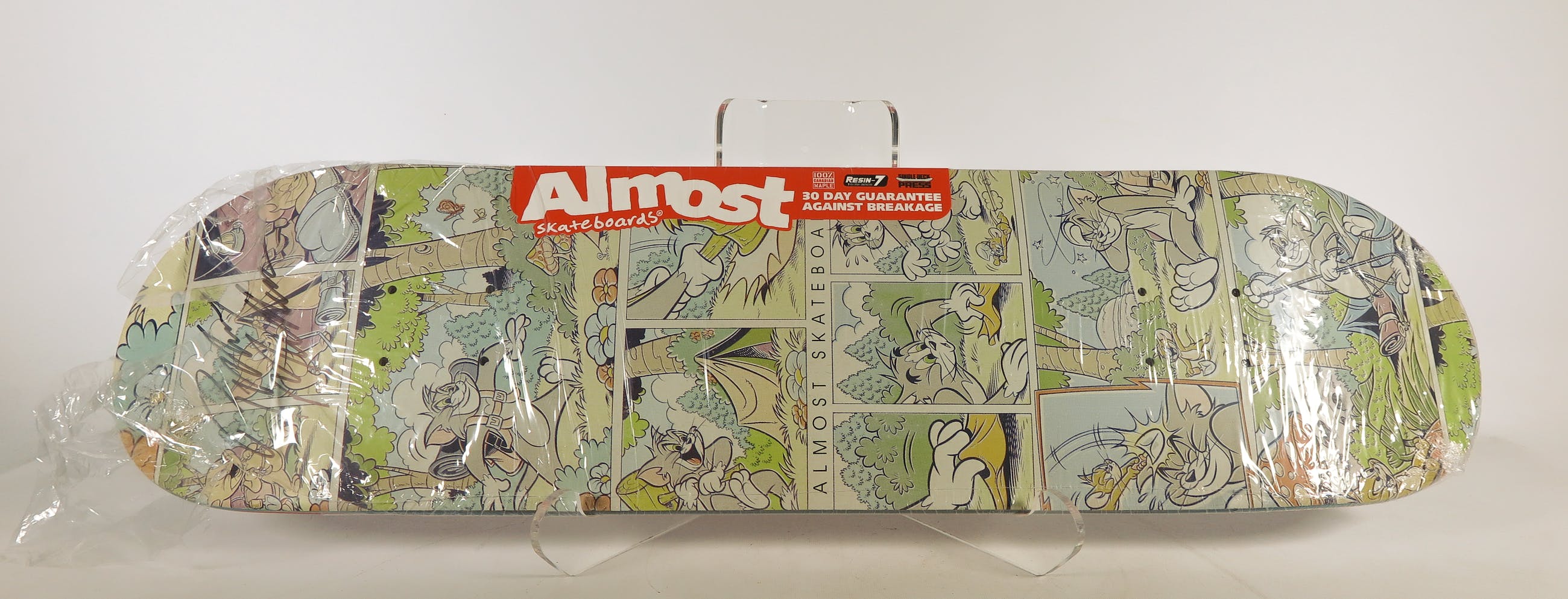 Skatedeck, ontworpen en geproduceerd door Almost, en met de hand gesigneerd door skate-legende Rodney Mullen.