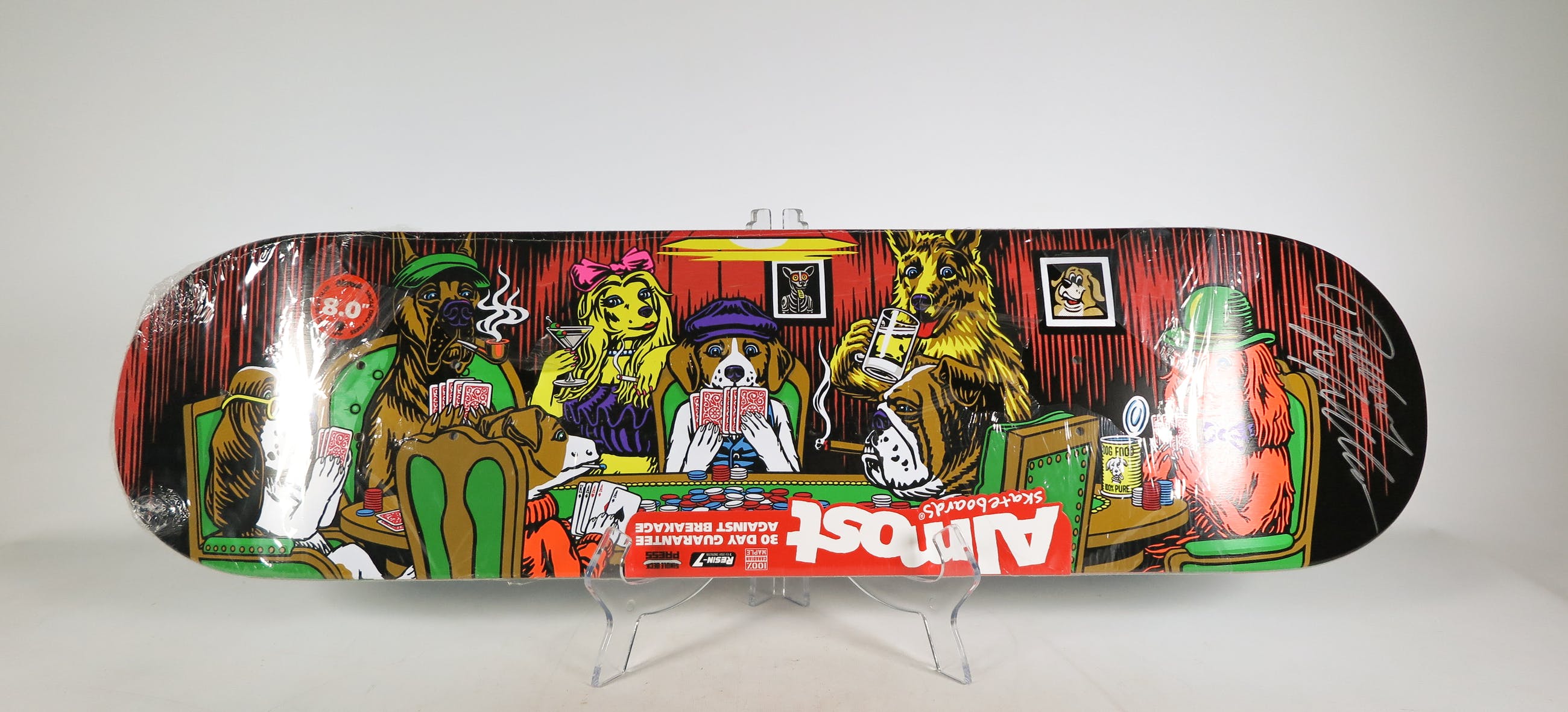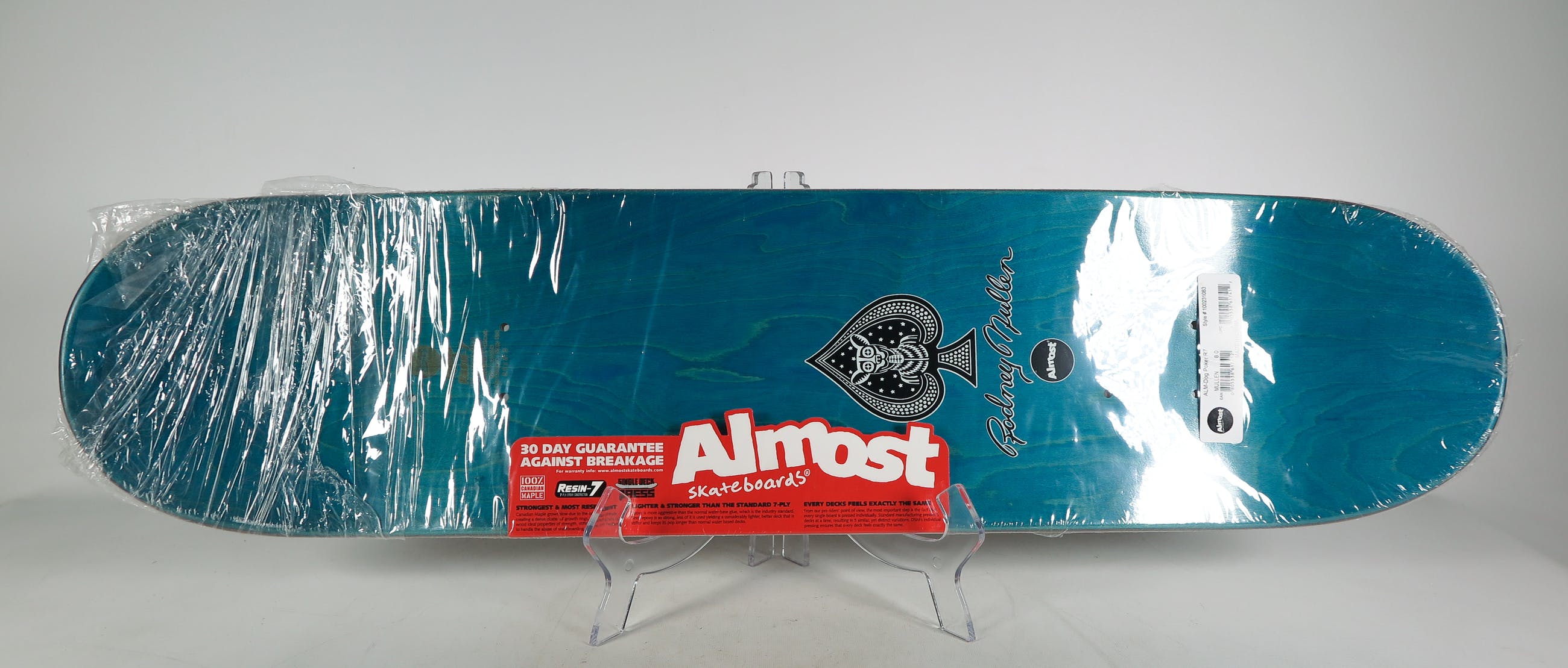 Skatedeck, ontworpen en geproduceerd door Almost, en met de hand gesigneerd door skate-legende Rodney Mullen.