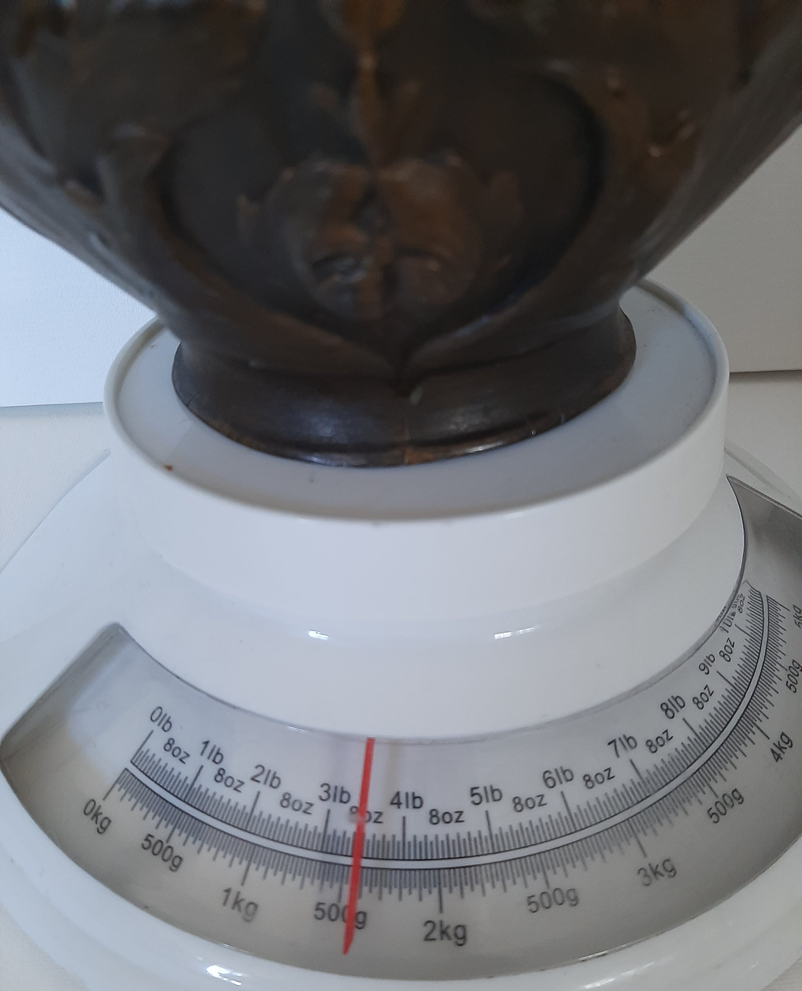 Diametr opening 9cm. Verbronsen metal. Goede staat met tijds gebruiksporen - zie foto's. Erg rare item. Goed voor elke huis design.