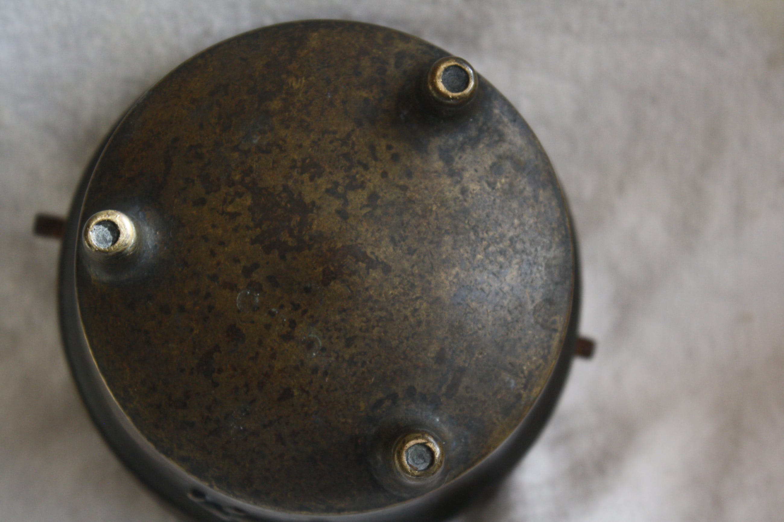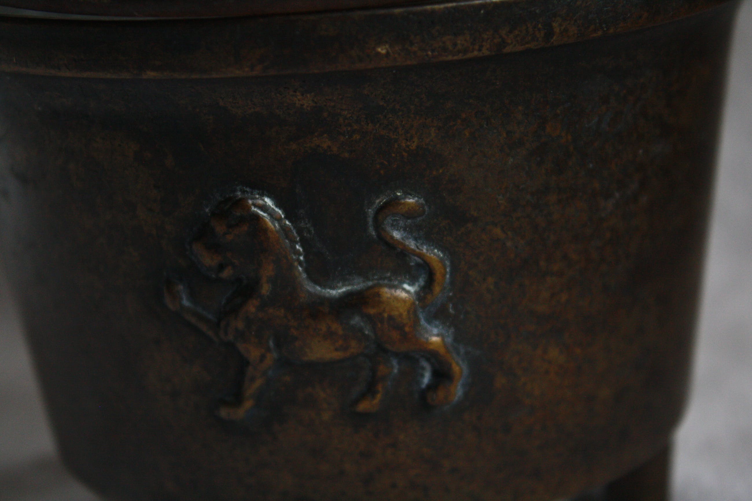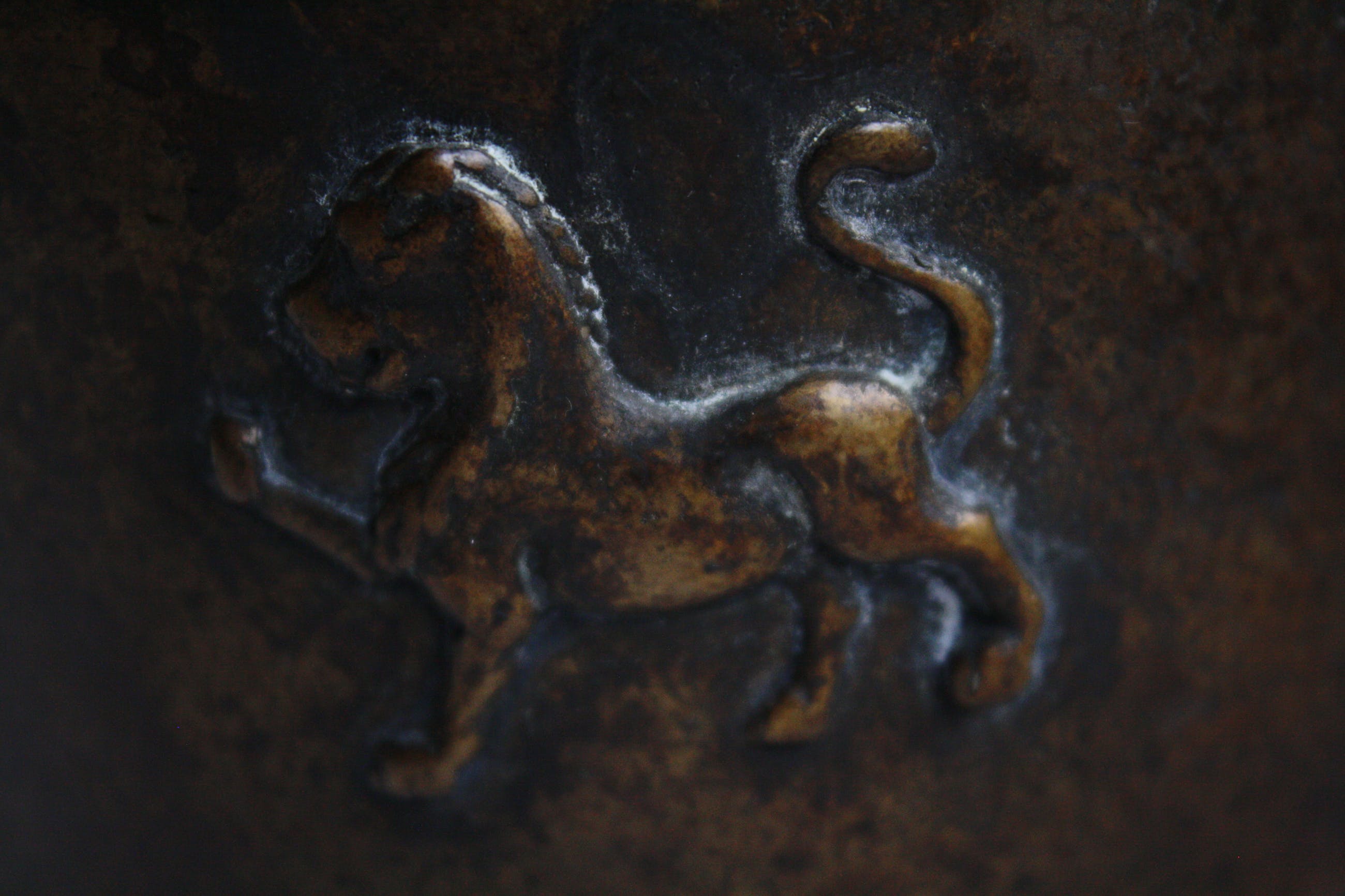 Zeer Zeldzame Nederlandse Bronzen Cauldron.(1523) met Gietijzeren Hengsel. Verkeerd in Perfecte Staat,en is voorzien van Jaartal en Leeuw. Dit Kavel is van Museum Kwaliteit en voor zover ik weet niet meer verkrijgbaar. Een Must voor elke Liefhebber. Caulderon komt uit mijn Priveverzameling. Afmeting Hoog 12cm en Breed 14cm Gewicht is ruim 1200 Gram. Kijk goed naar de fotos waar U alle Detials kunt waarnemen. Wordt zeer goed verpakt en Aangetekend opgestuurd met post.nl met trake en trace.