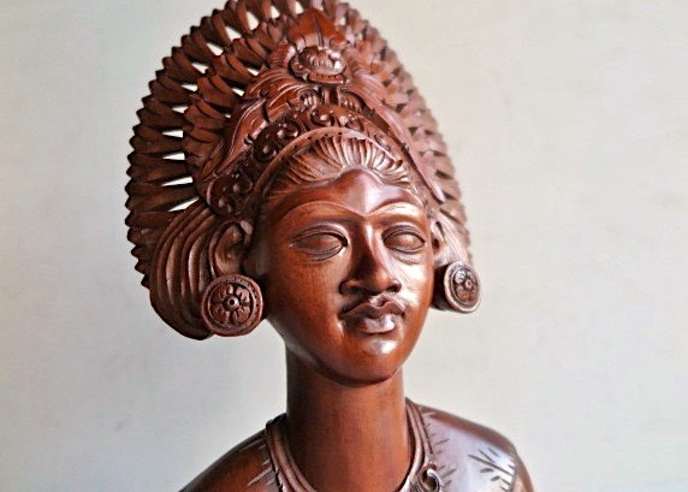 Met een zeer verfijnd gestoken hoofdtooi en oorsieraden. Mooi glad afgewerkt Mat glans patina
