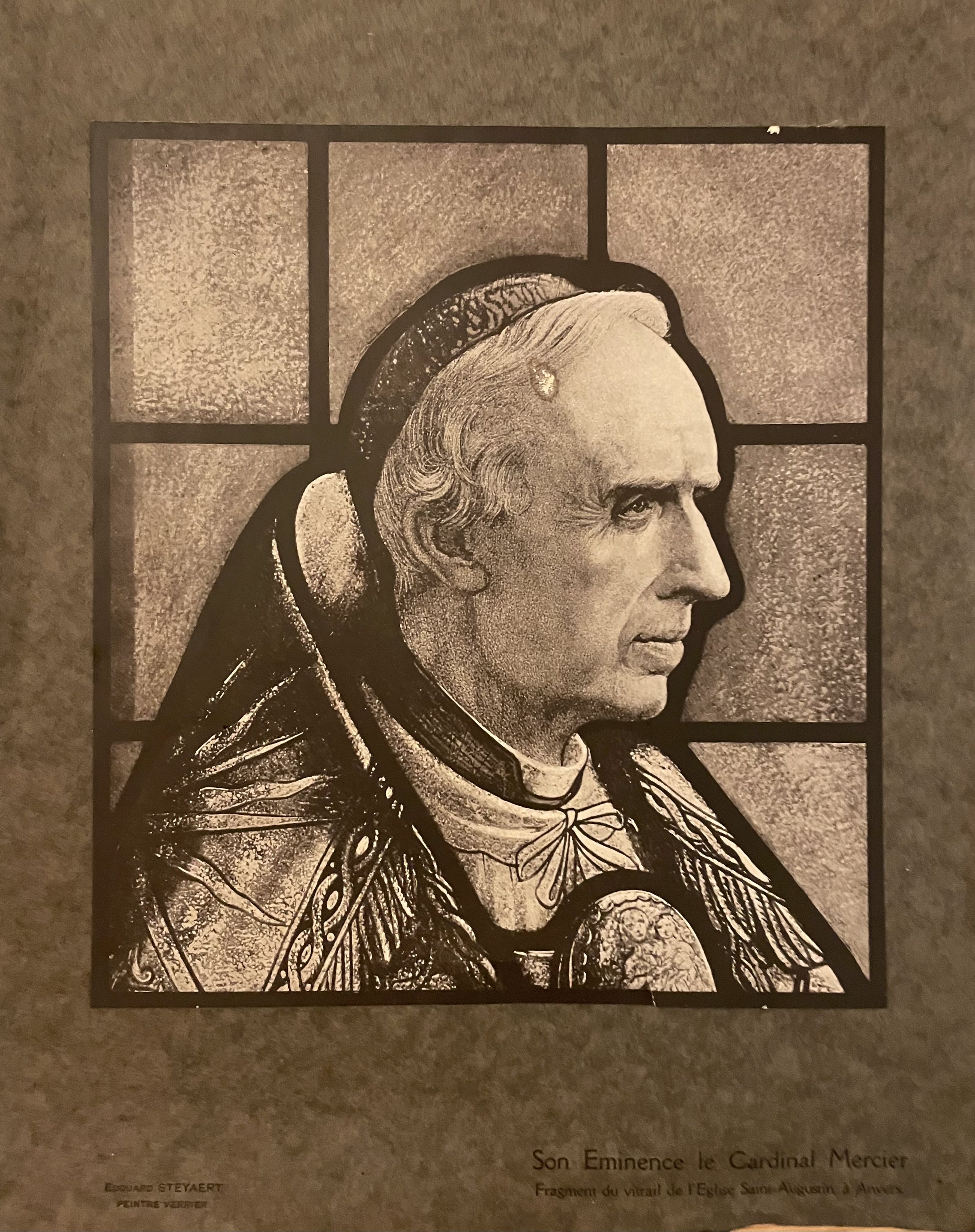 Hyperrealistische illustratie van loodglas Kardinaal Mercier uit Sint-Augustinuskerk te Antwerpen.