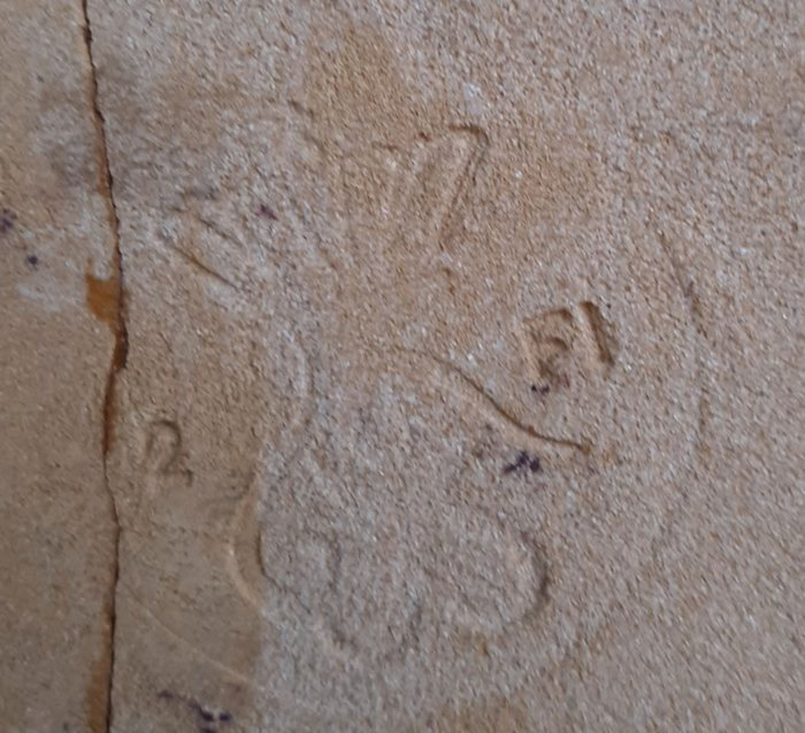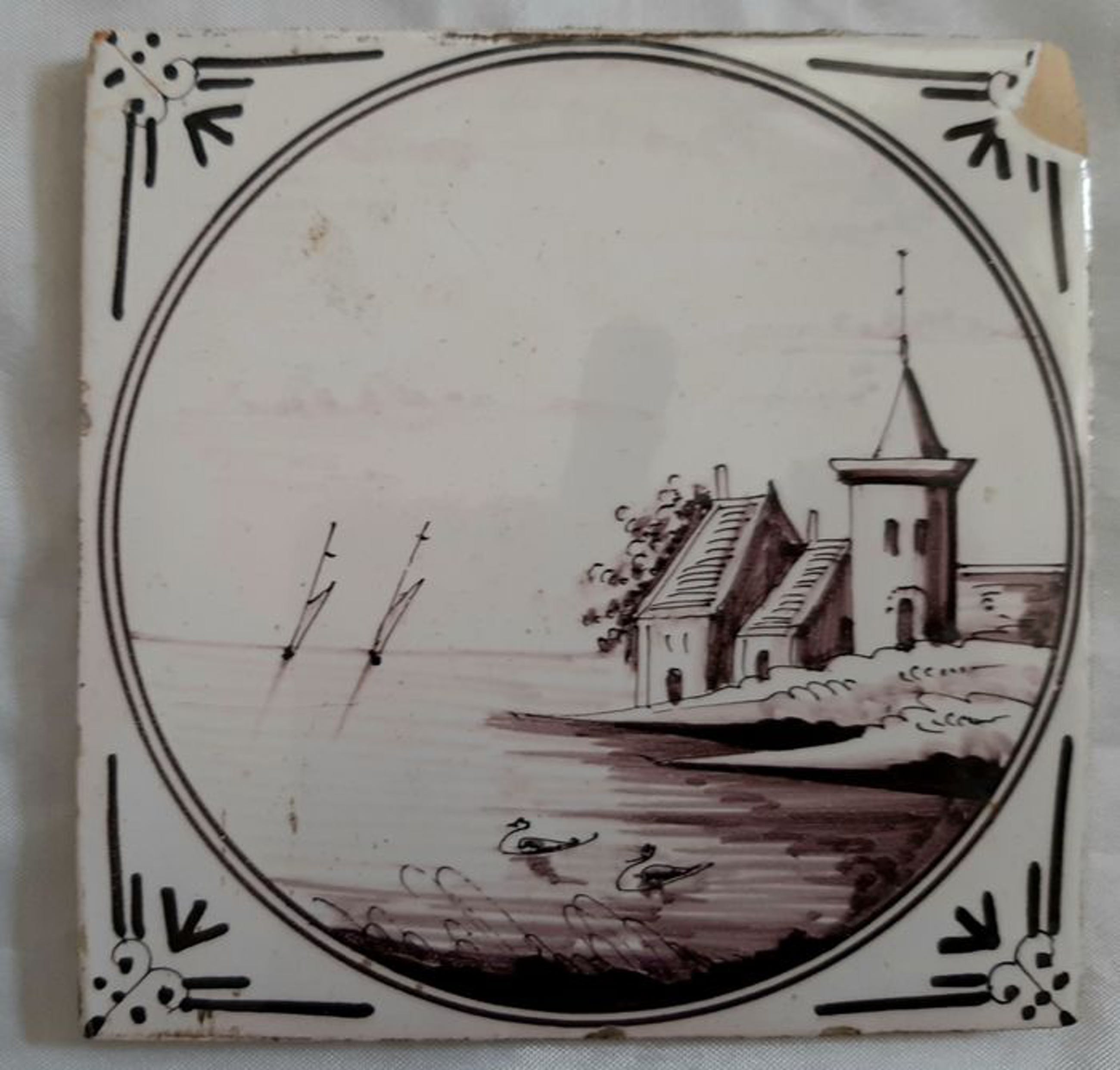 2.Antiek,handgeschilderd met paars 13x13 cm,18e eeuw of vroeger.