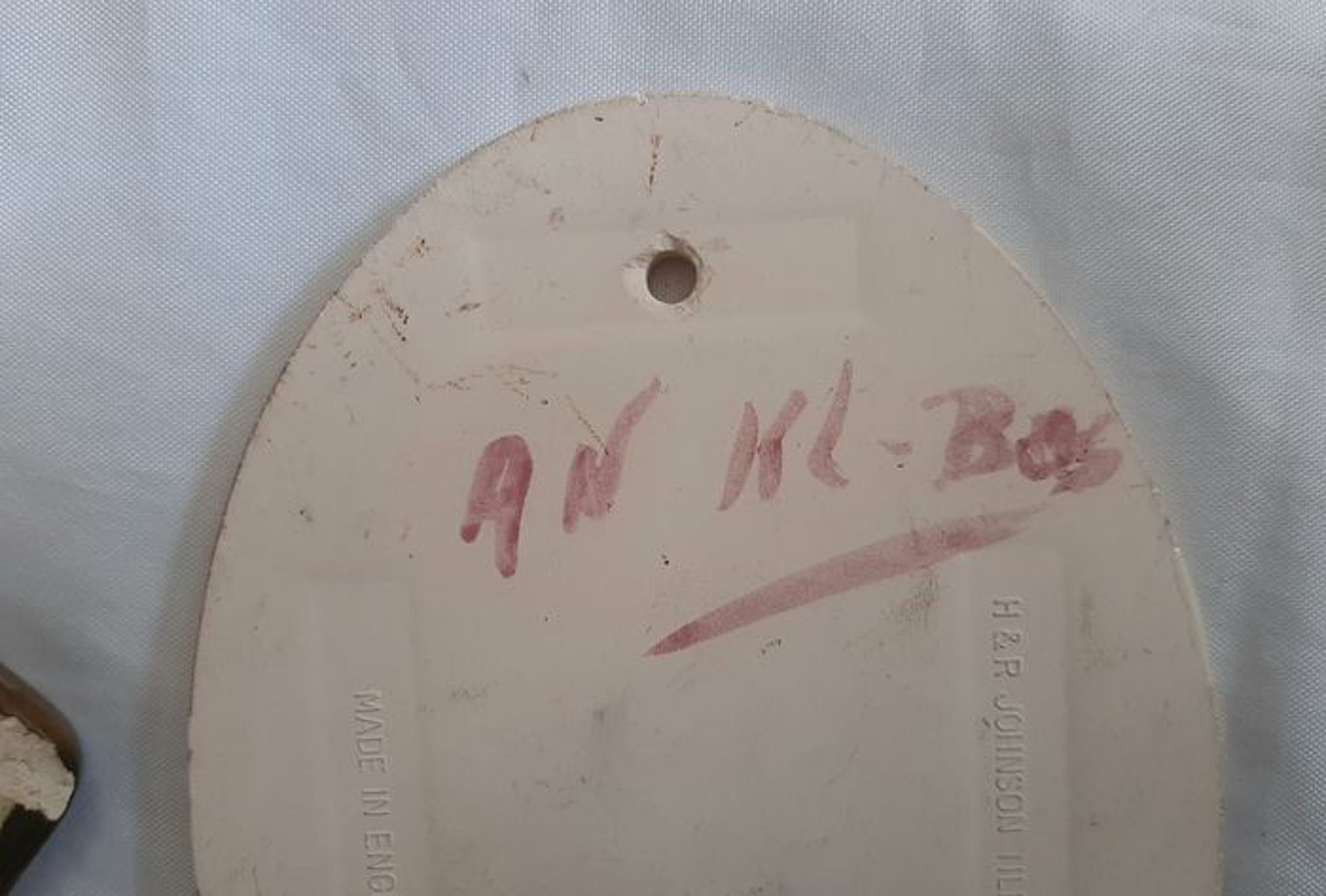 4.Antiek,handgeschilderd met blauwe kleur,20e eeuw 15x7cm,gemerkt-zie foto.