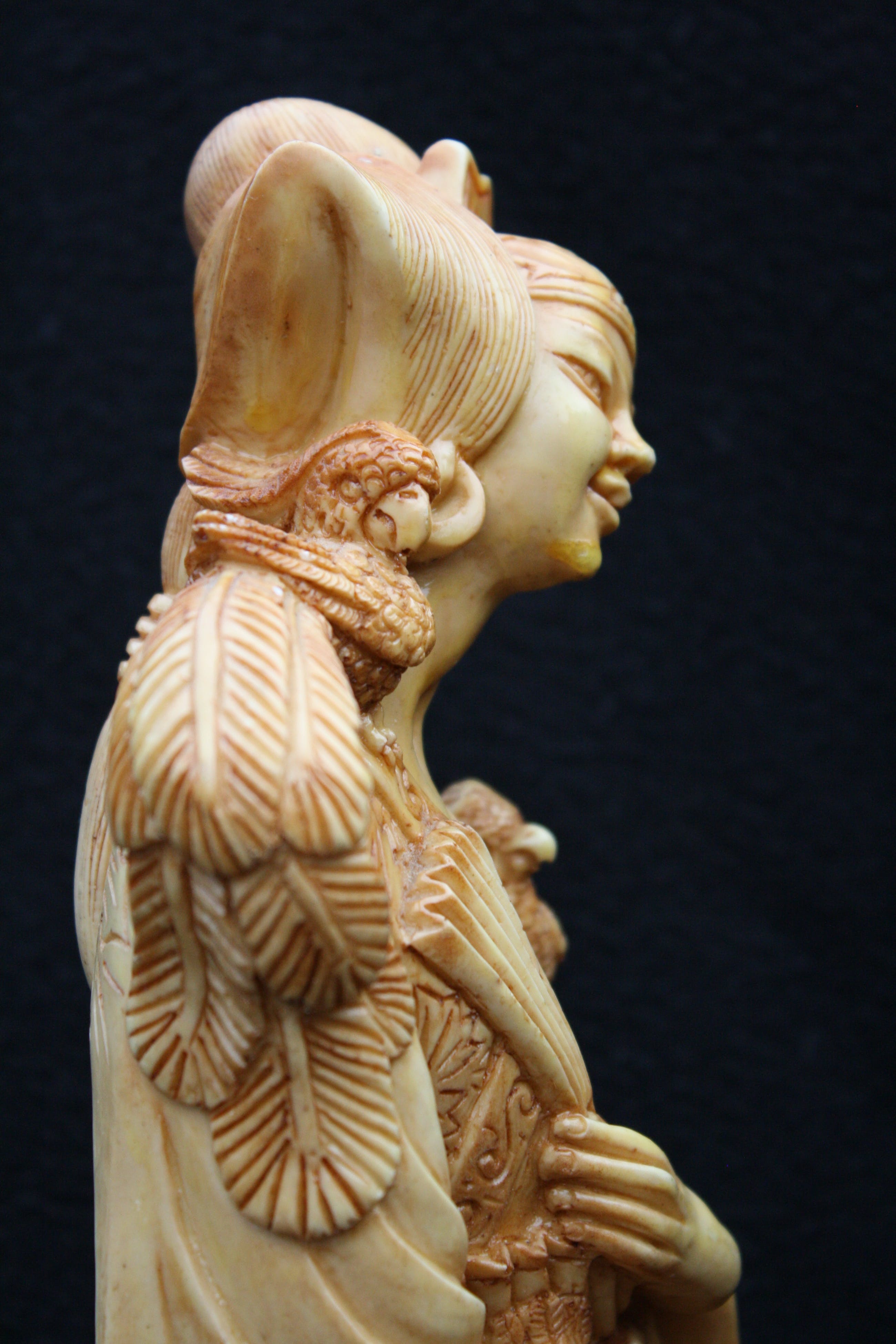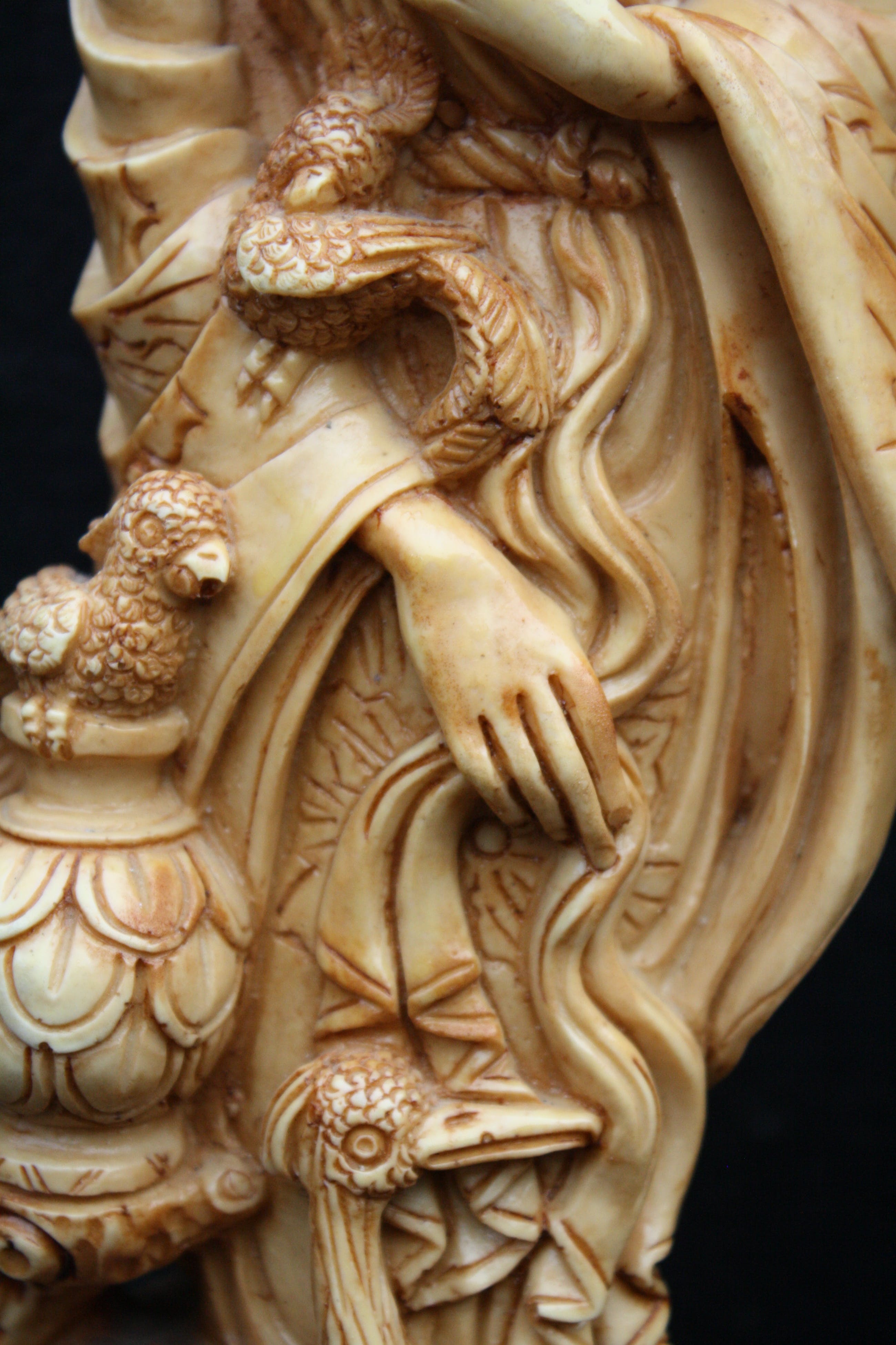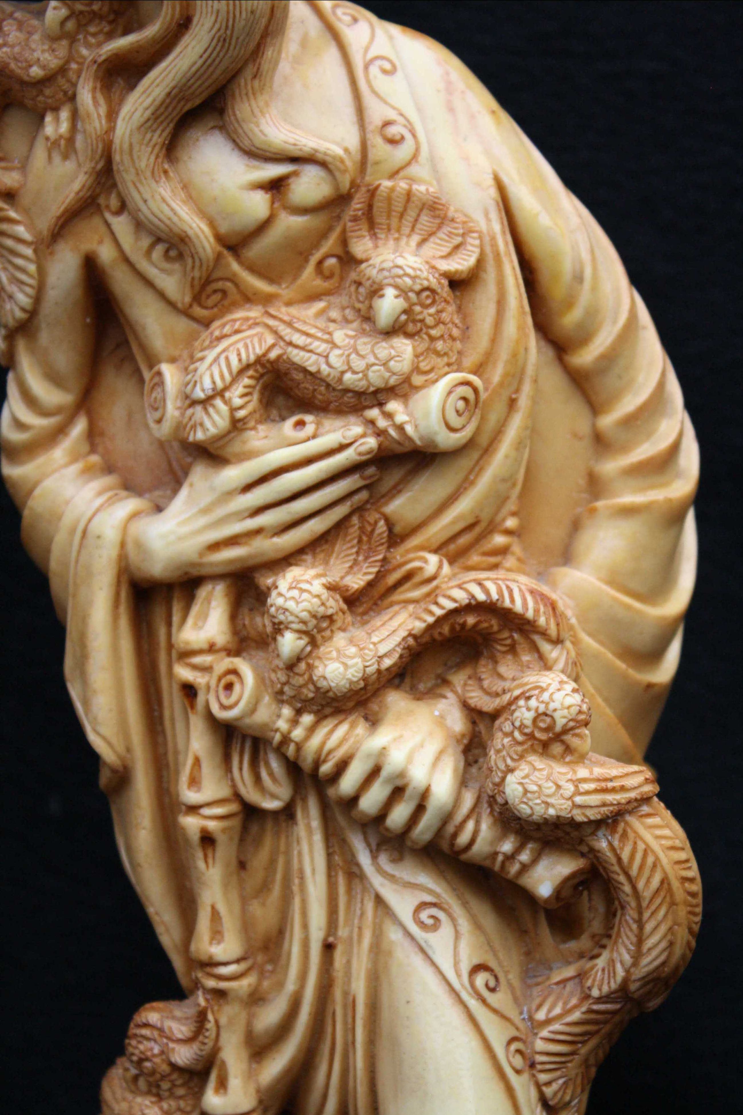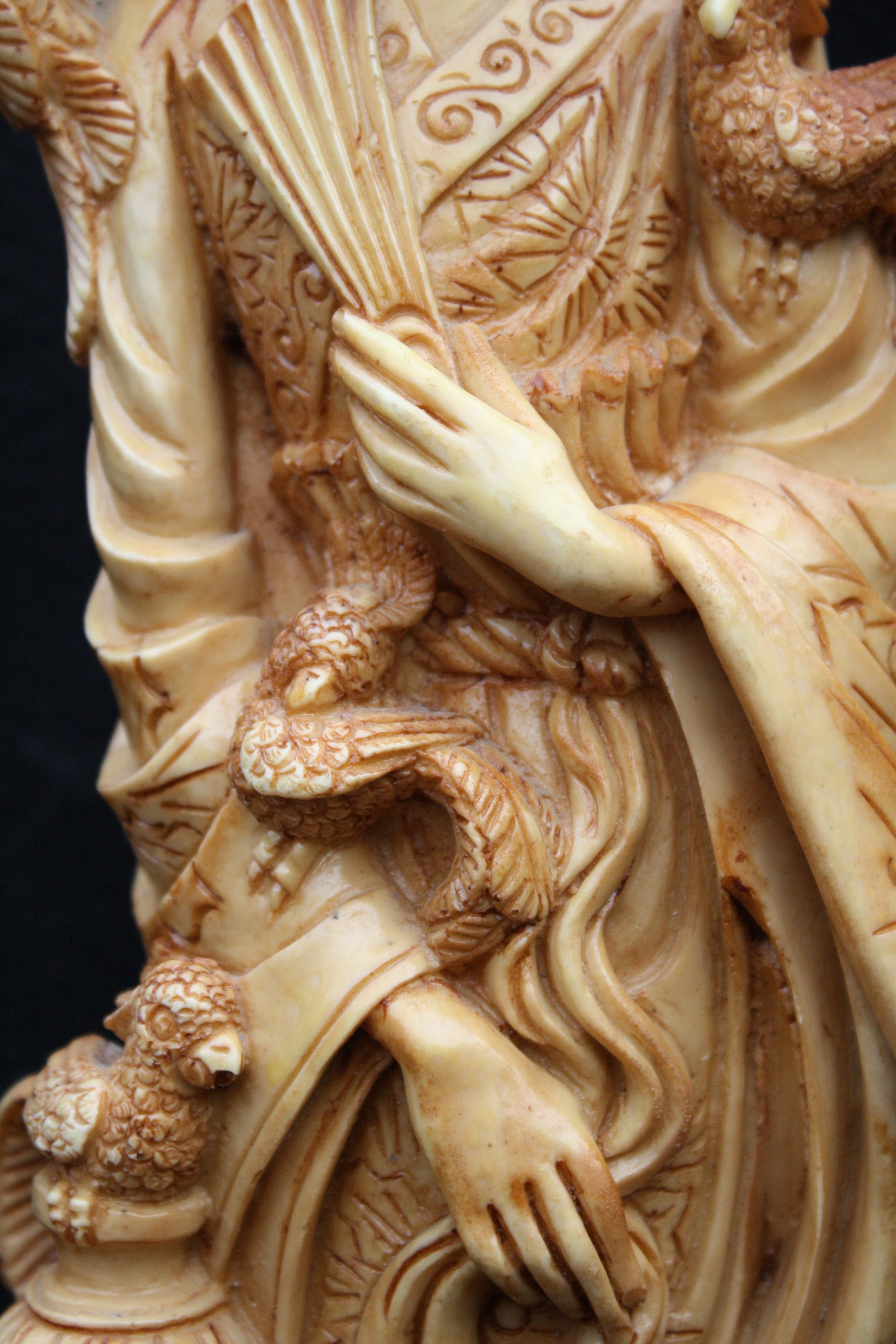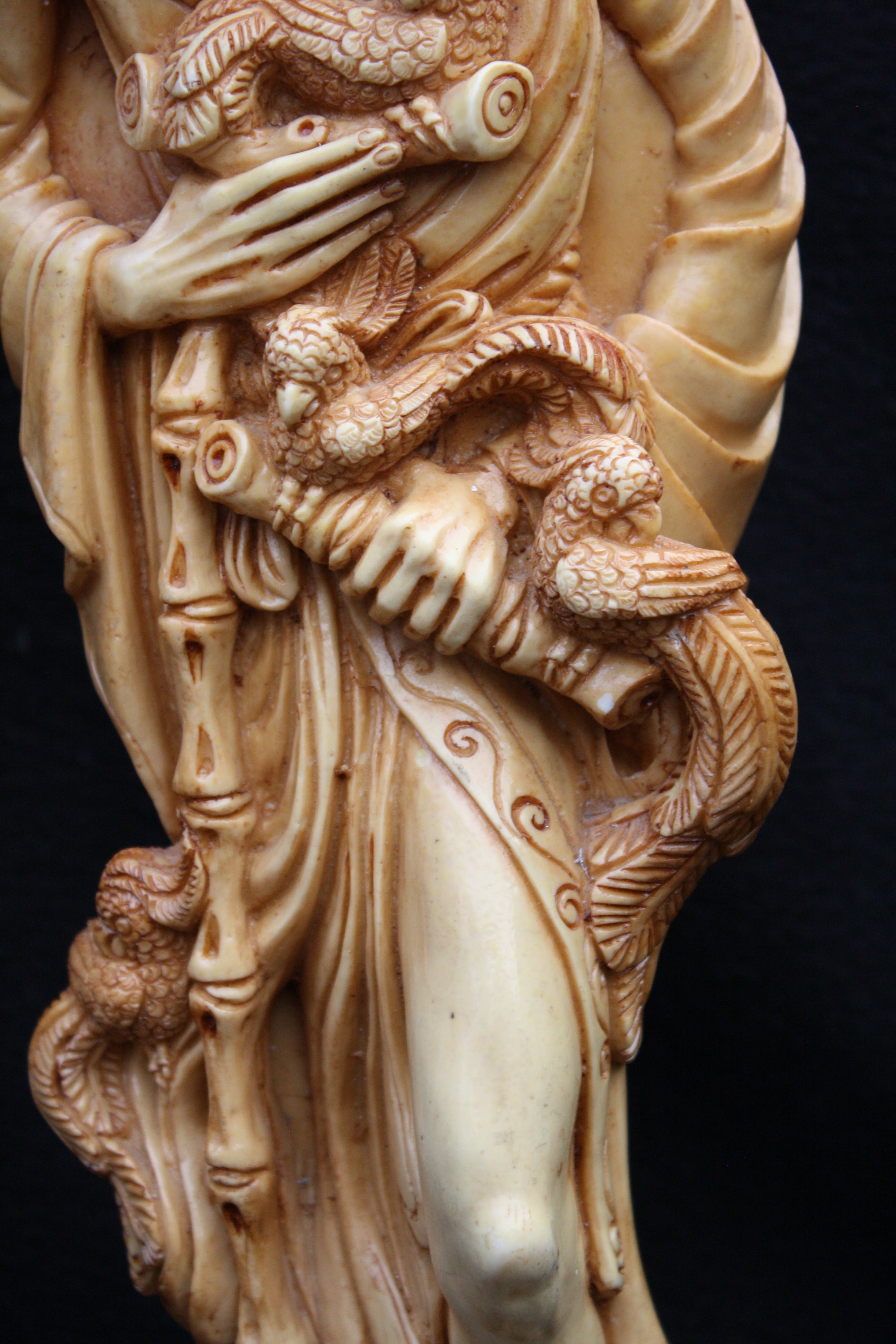 Twee Uitermate Grote mooie met de hand Gesneden Chinese Beelden gemaakt van Resin (Combinatie van gemalen marmer en hars) voelt aan als Steen. Beelden zijn aan de achterkant voorzien van een monogram. Graag de foto's bekijken, deze vormen een groot onderdeel van de omschrijving. Beelden verkeren in perfecte staat. Afmeting Hoog 40cm en Breed 12cm. Het gewicht is in totaal 3400 Gram. Wordt zeer goed verpakt en opgestuurd met post.nl met trake en trace.