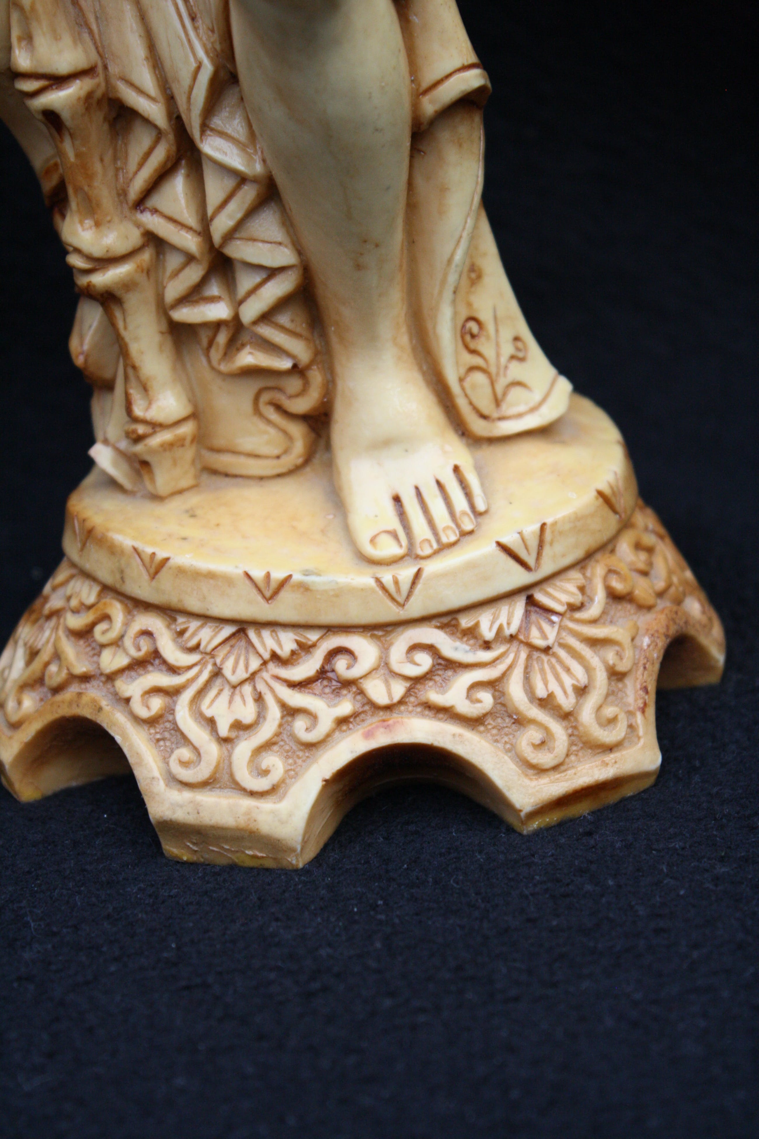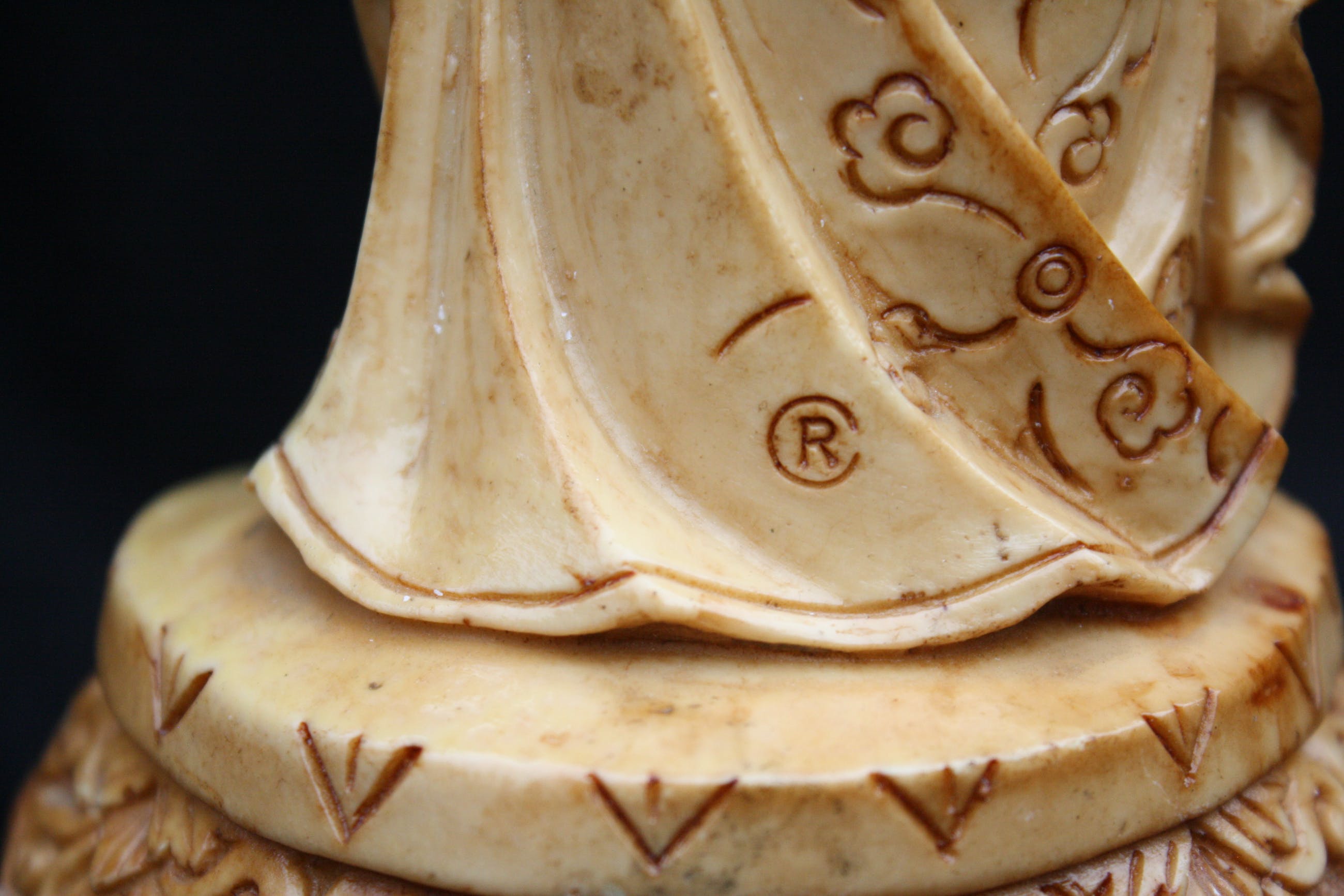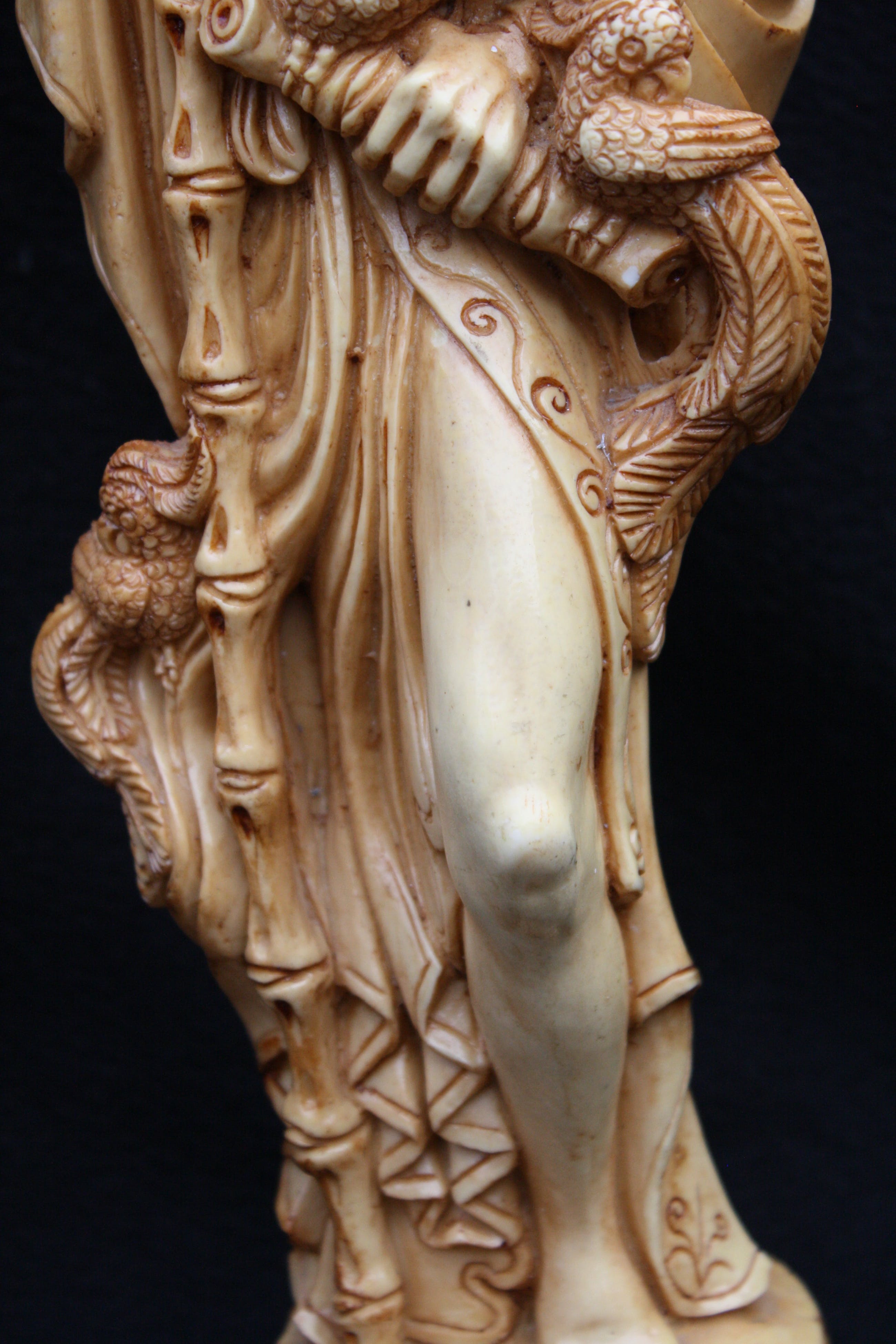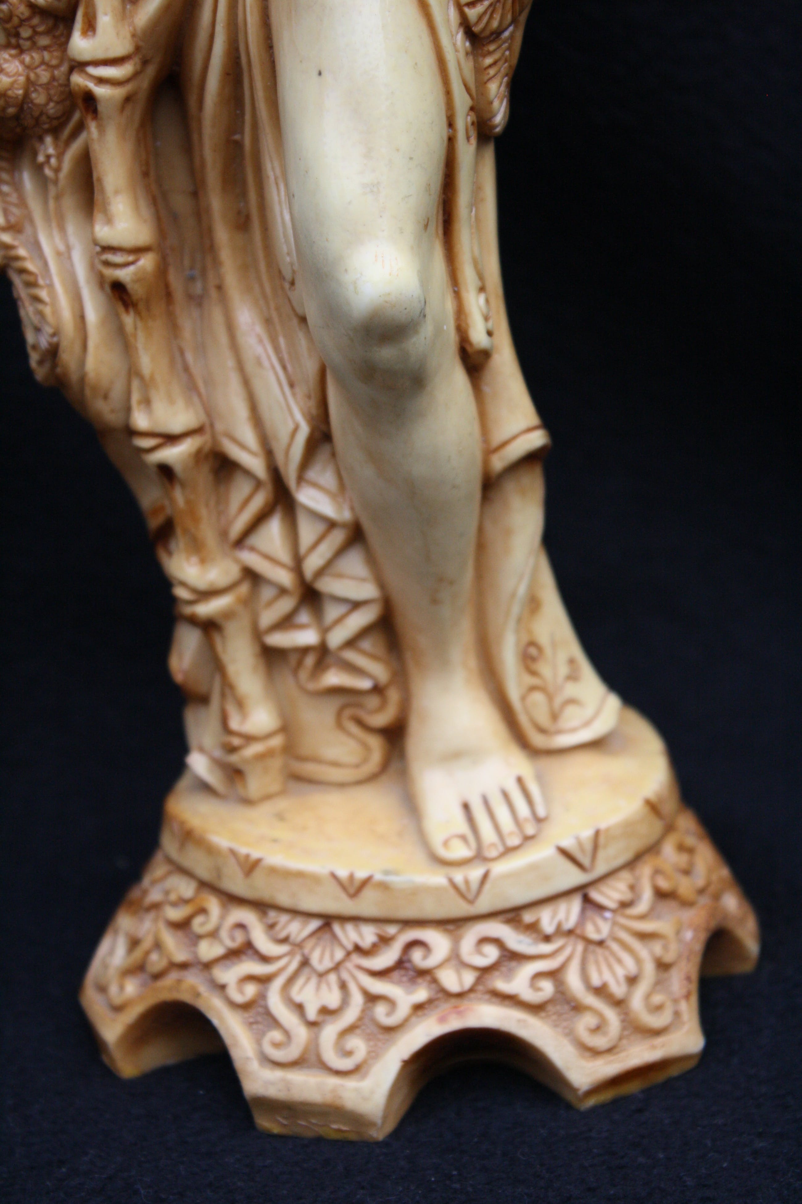 Twee Uitermate Grote mooie met de hand Gesneden Chinese Beelden gemaakt van Resin (Combinatie van gemalen marmer en hars) voelt aan als Steen. Beelden zijn aan de achterkant voorzien van een monogram. Graag de foto's bekijken, deze vormen een groot onderdeel van de omschrijving. Beelden verkeren in perfecte staat. Afmeting Hoog 40cm en Breed 12cm. Het gewicht is in totaal 3400 Gram. Wordt zeer goed verpakt en opgestuurd met post.nl met trake en trace.
