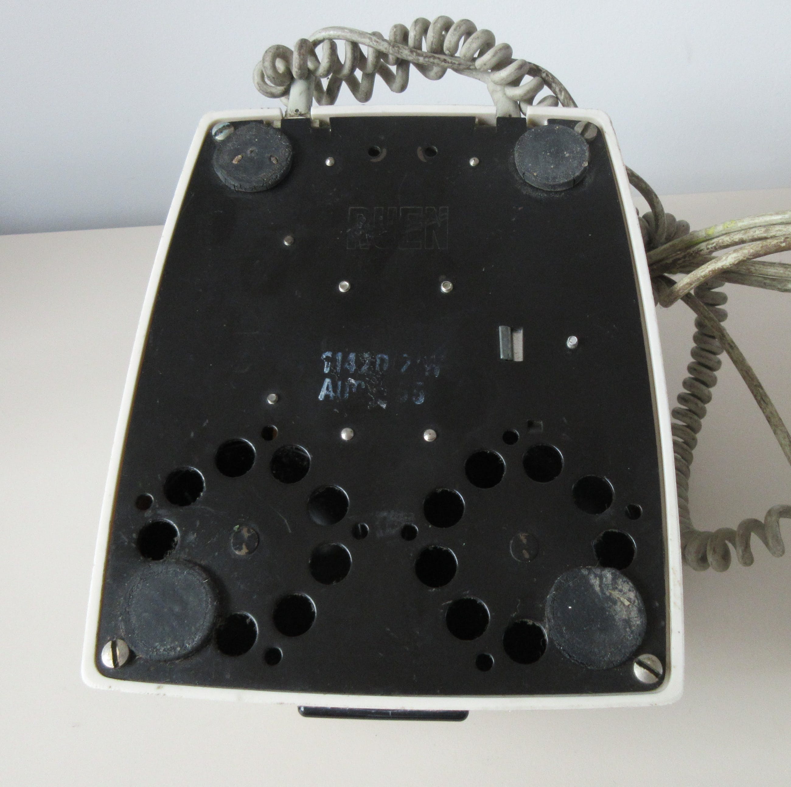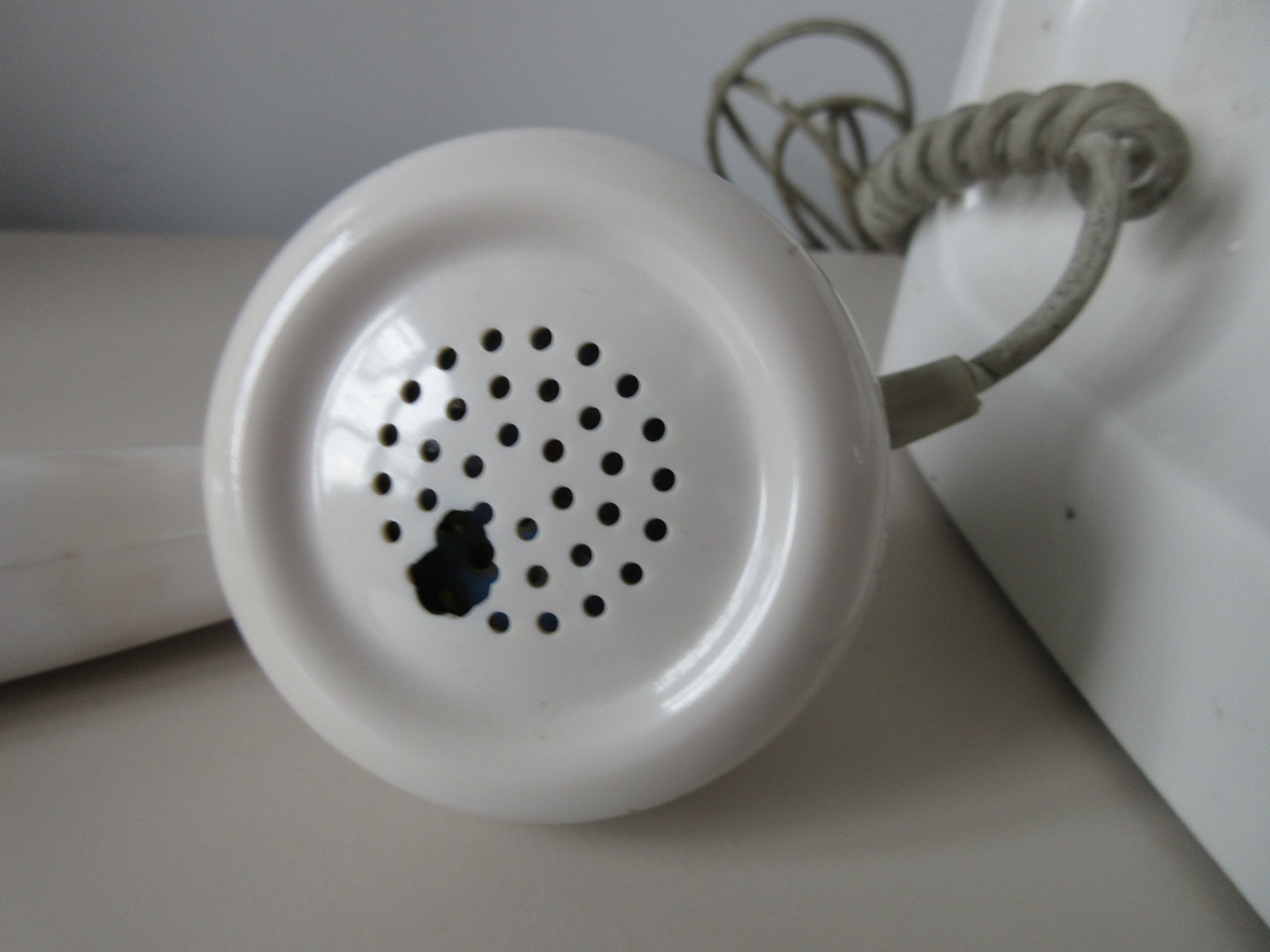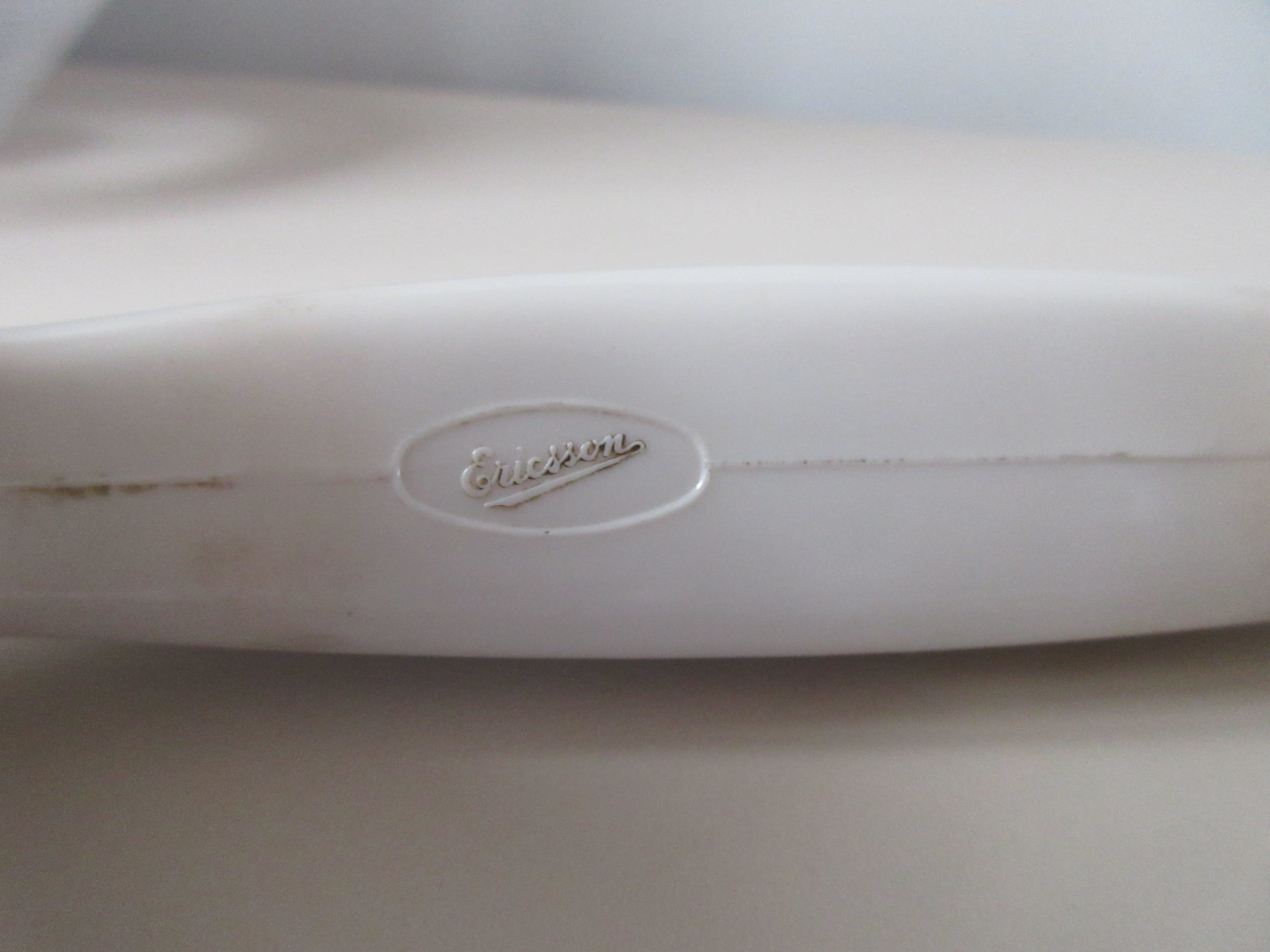 Authentieke witte bakelieten PTT telefoon uit de jaren 50/60, de tijd dat je nog voor een dubbeltje bij de winkelier op de hoek mocht telefoneren. De telefoon is van het merk Ericsson wat heeft hoofdkwartier in Nederland in Rijen (Gilze-Rijen) heeft en het betreft het typenummer 11420/2. In goede vintage staat, het spreekgedeelte van de hoorn bevat een klein gaatje (zie foto).
