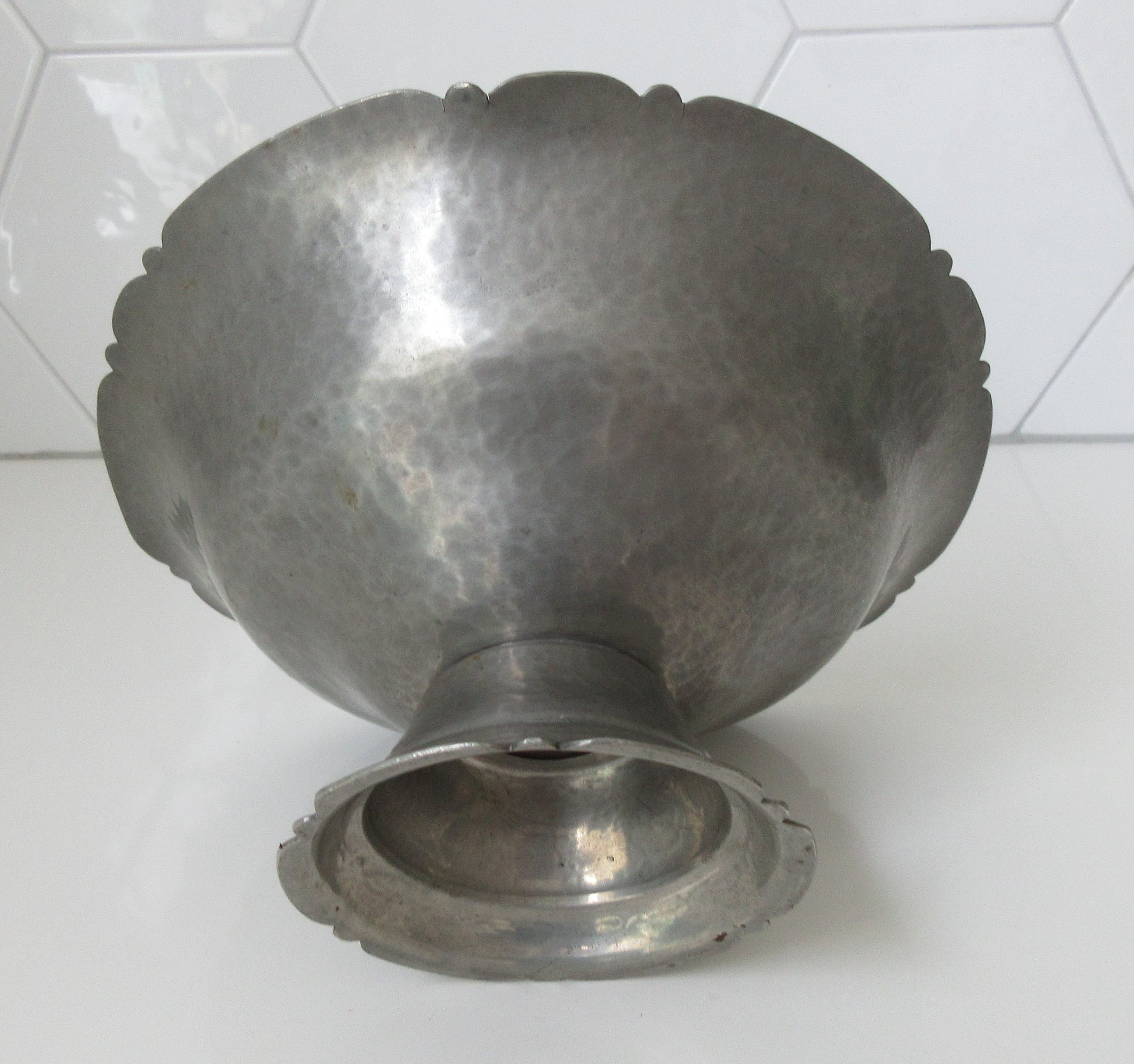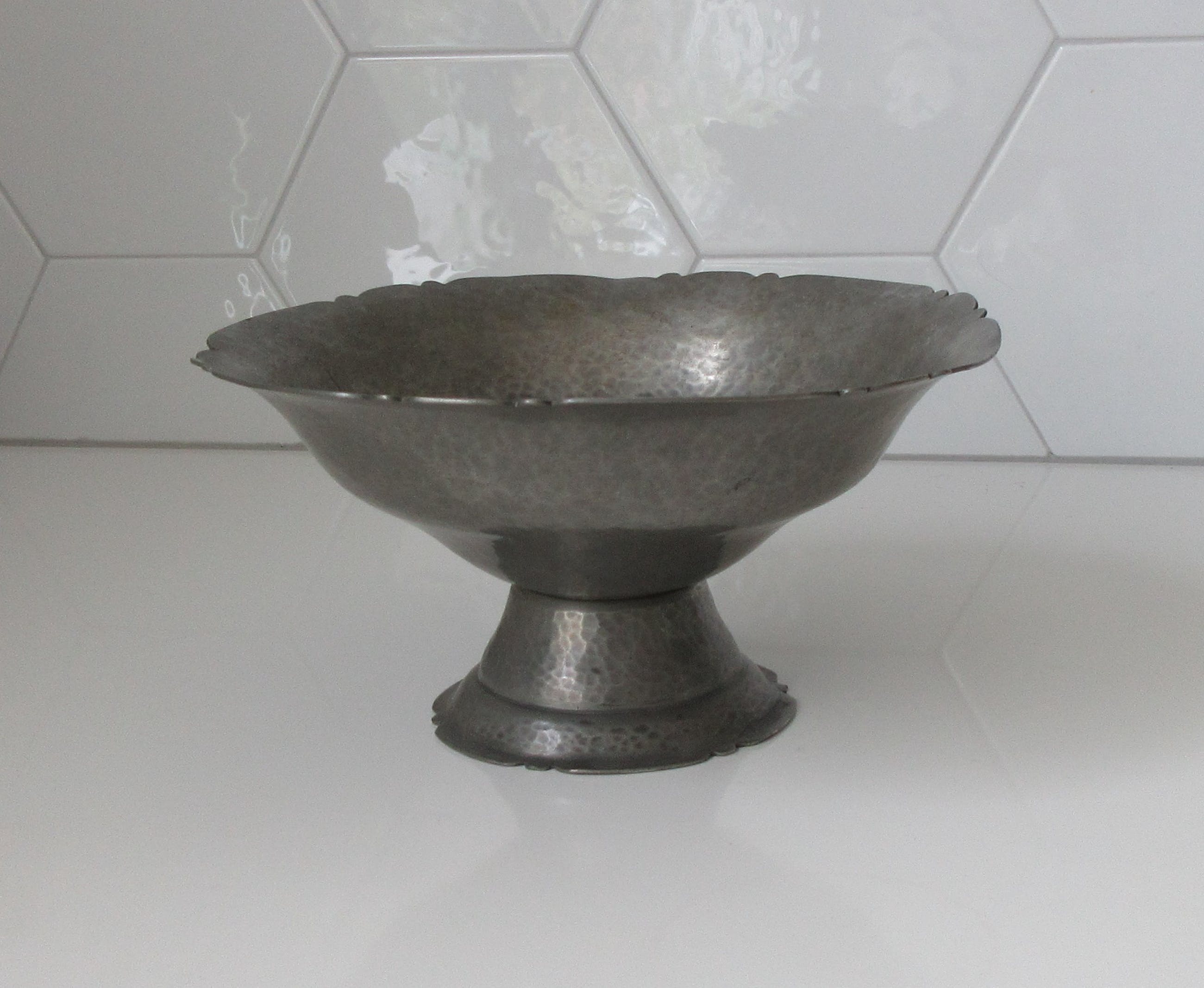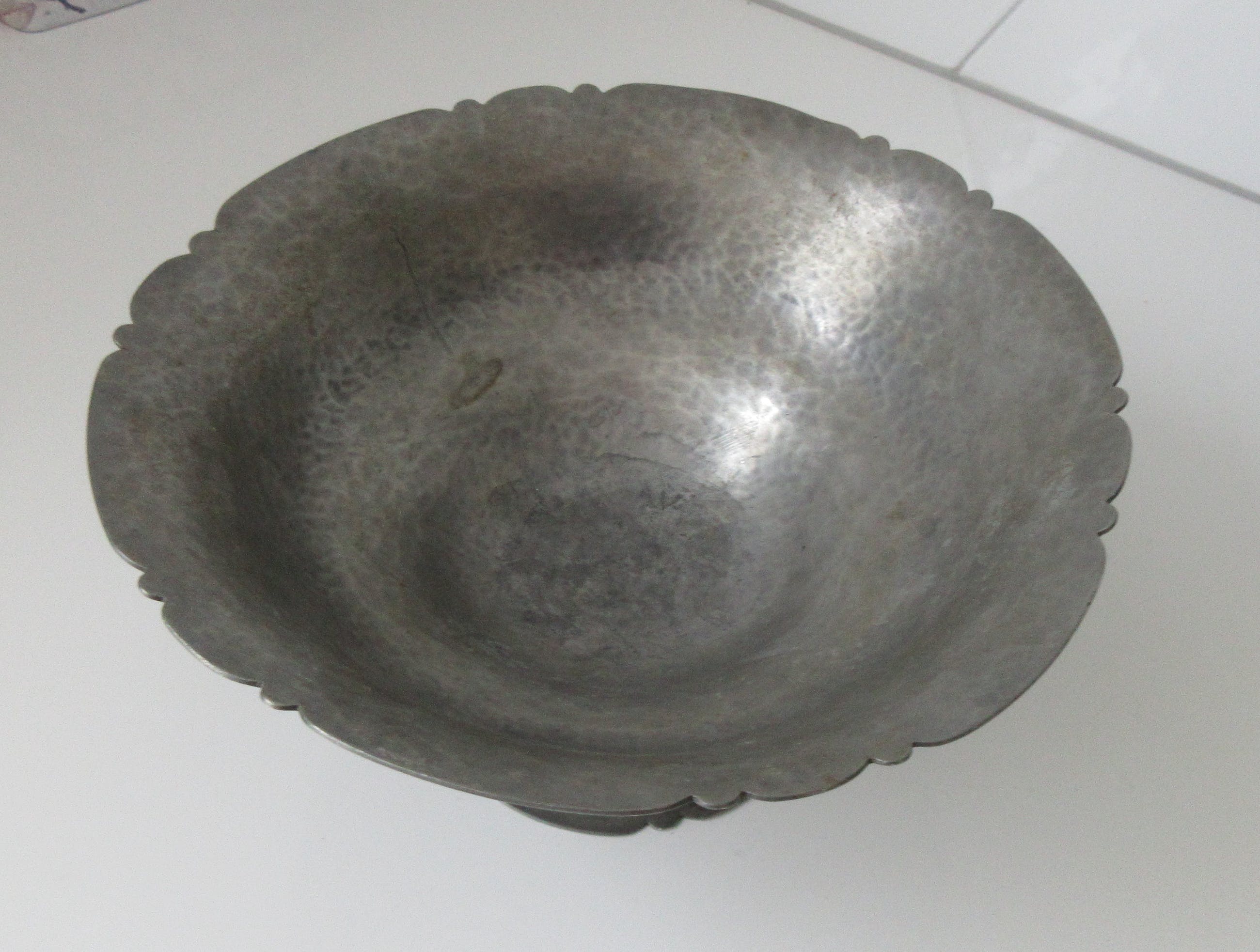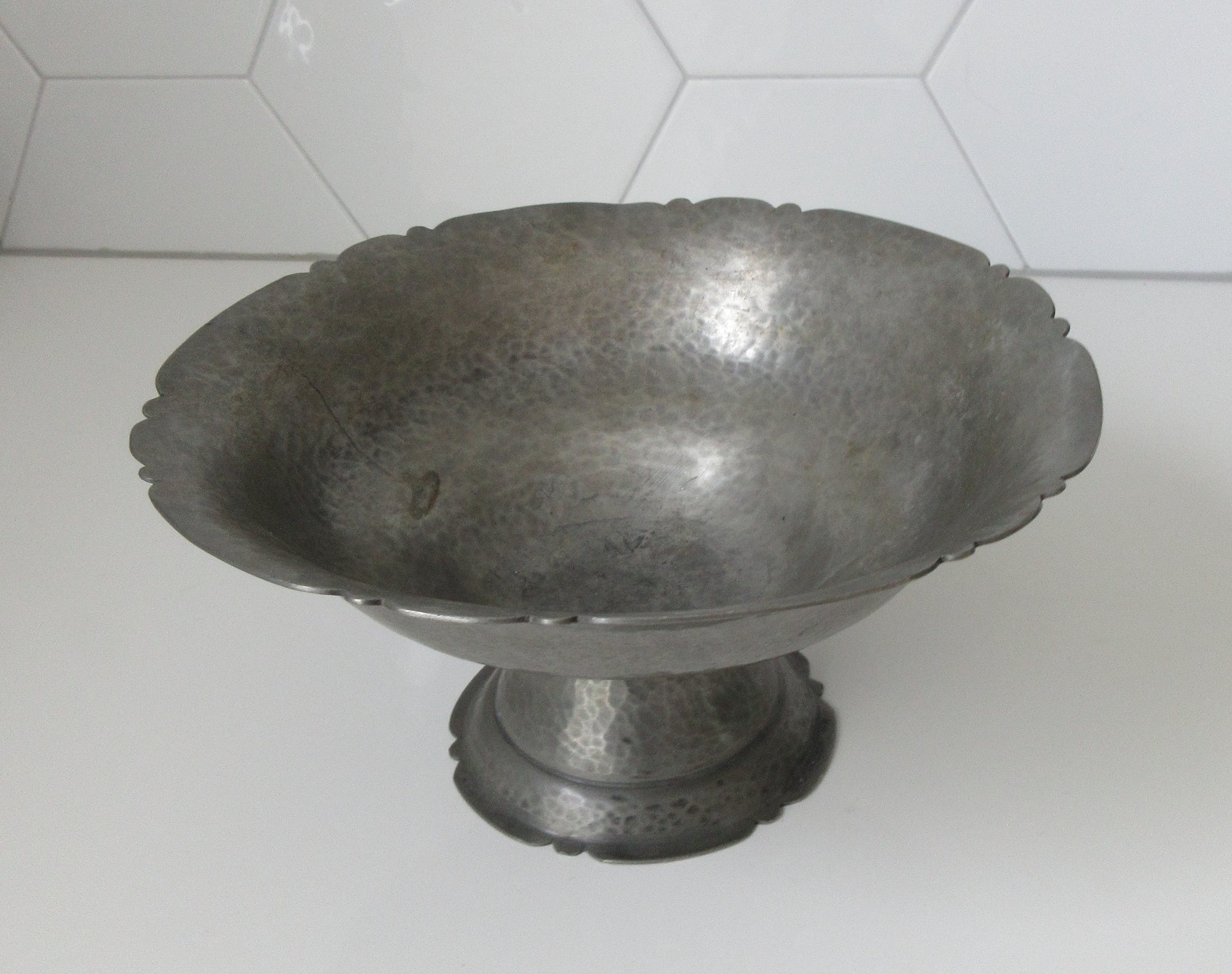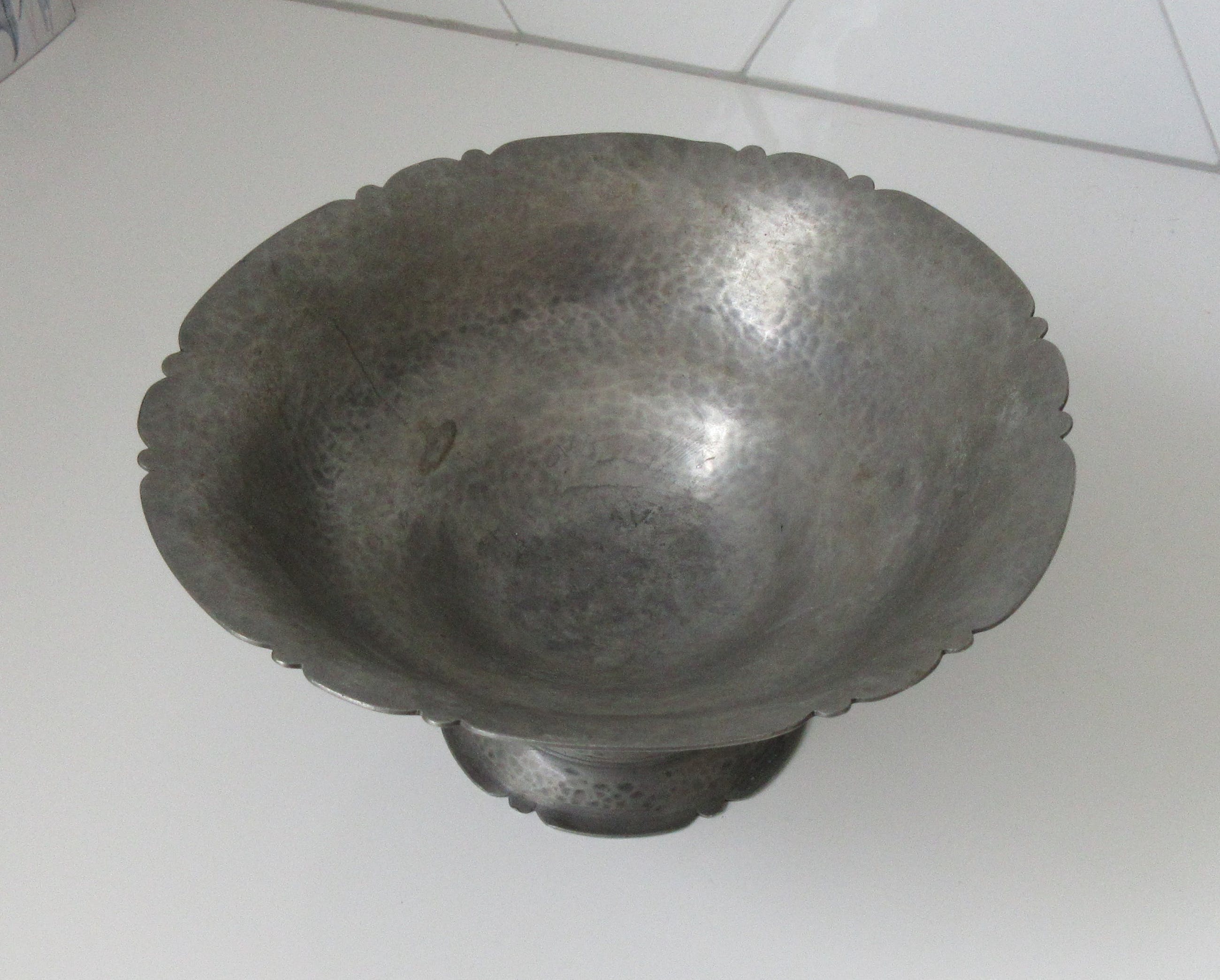 Gero - Hand gehamerde art deco tinnen schaal op voet. In goede gebruikte conditie. Gemerkt aan de onderzijde.