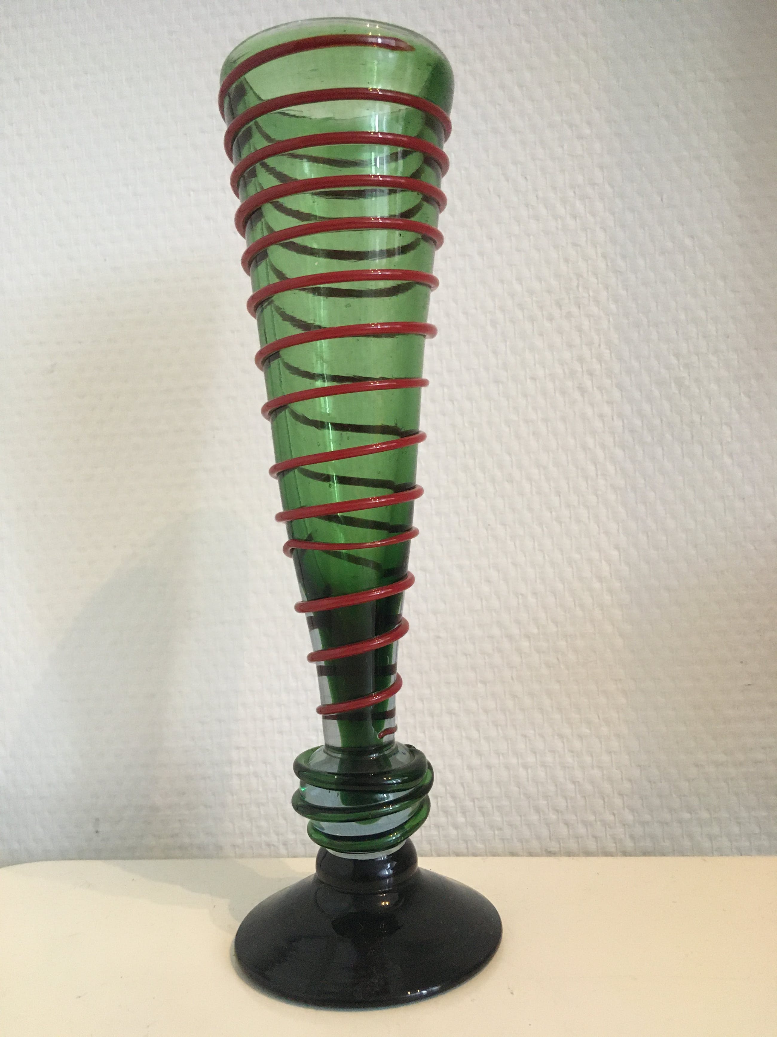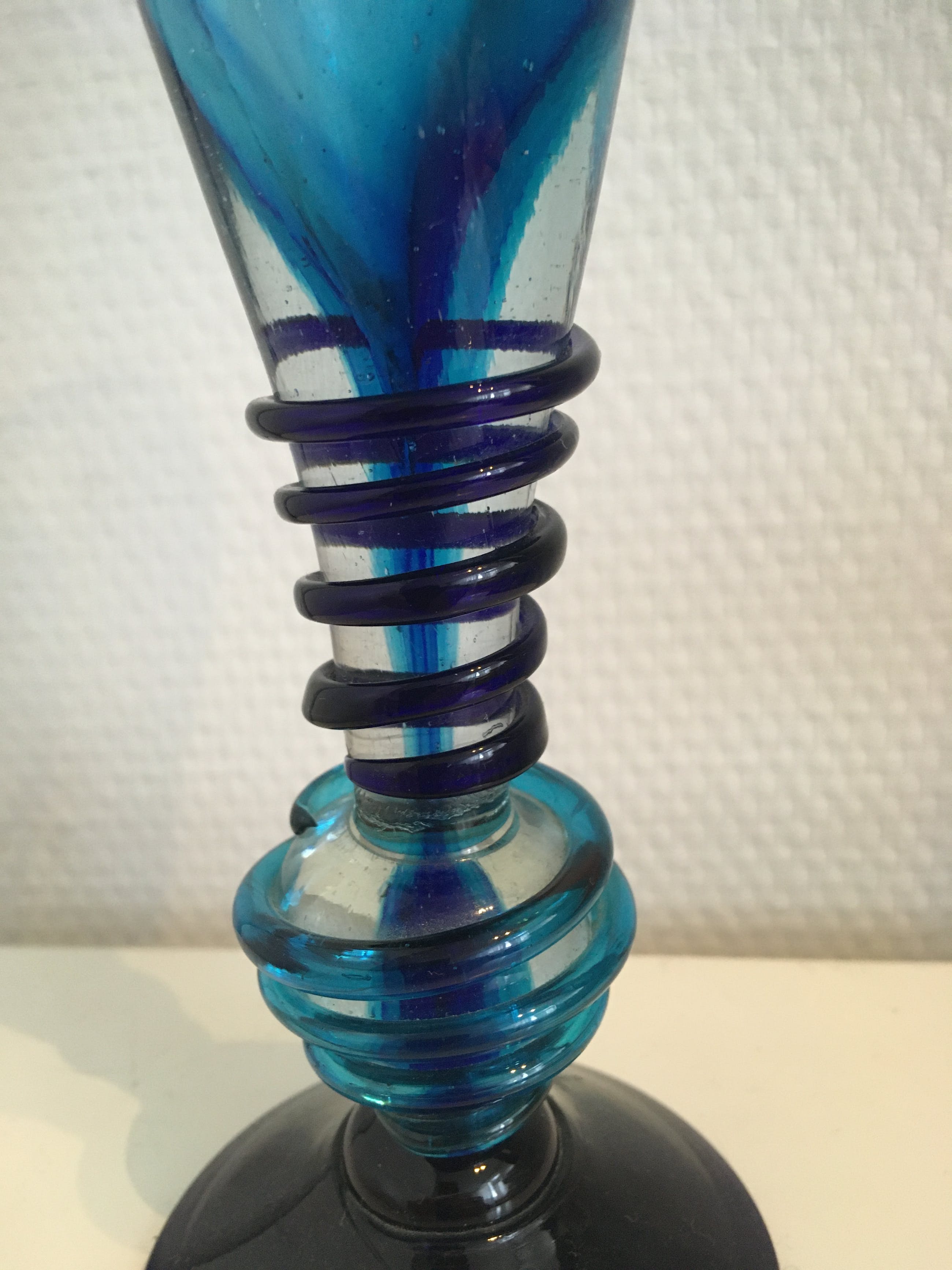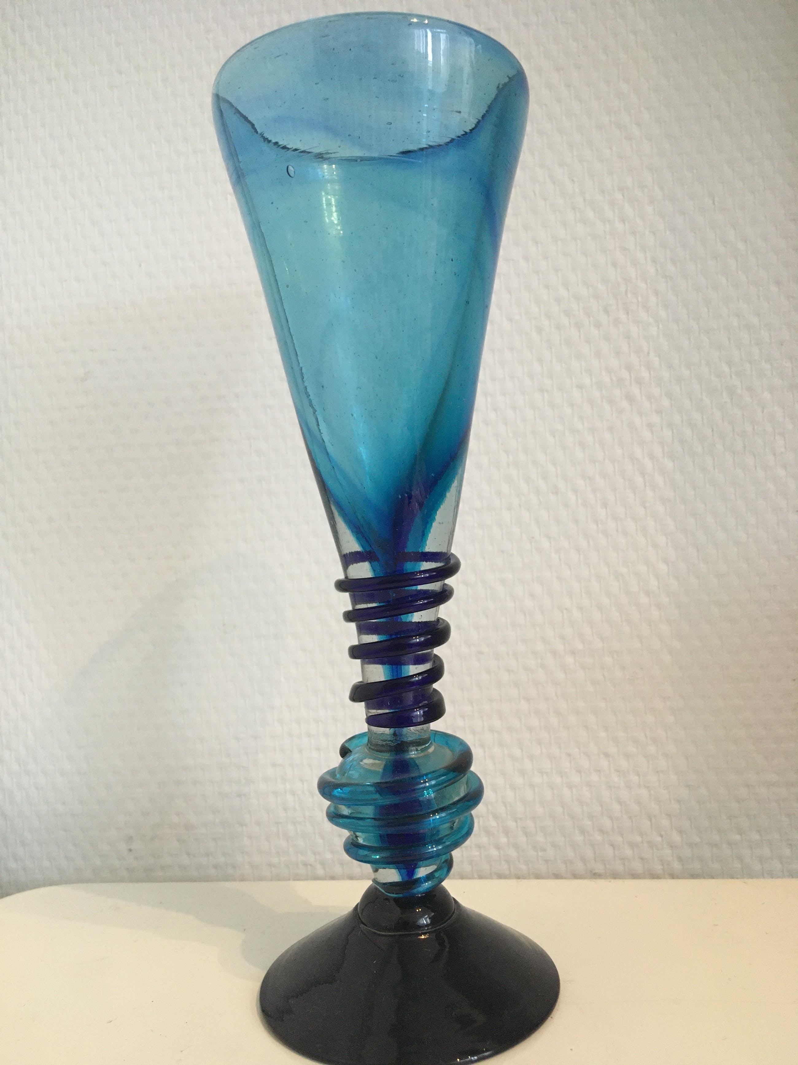 Prachtige handgemaakte ( wijn) glazen. Groot formaat en prachtig versierd en afgewerkt. Dikwandig Helemaal gaaf. Alle drie een pontil merk.