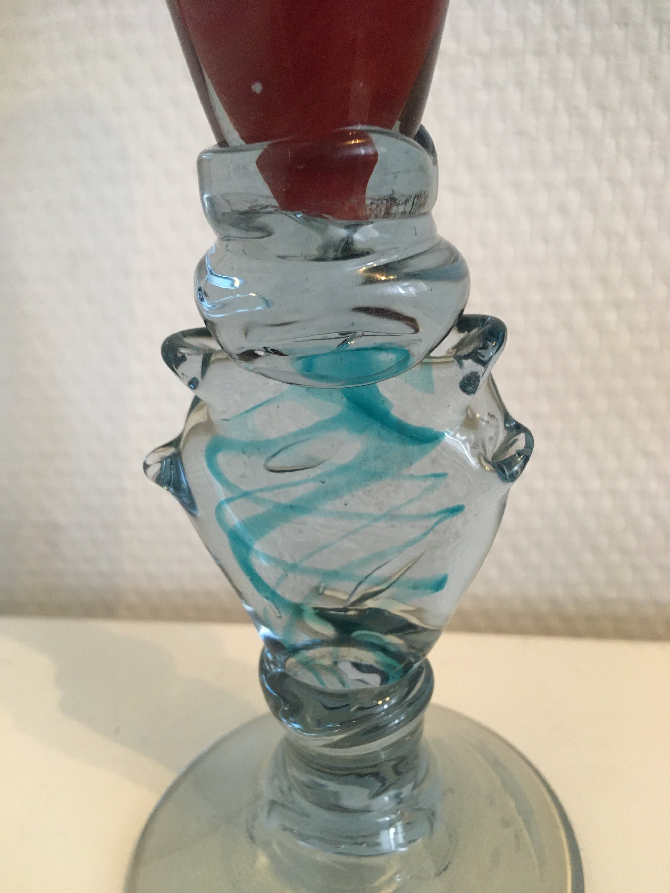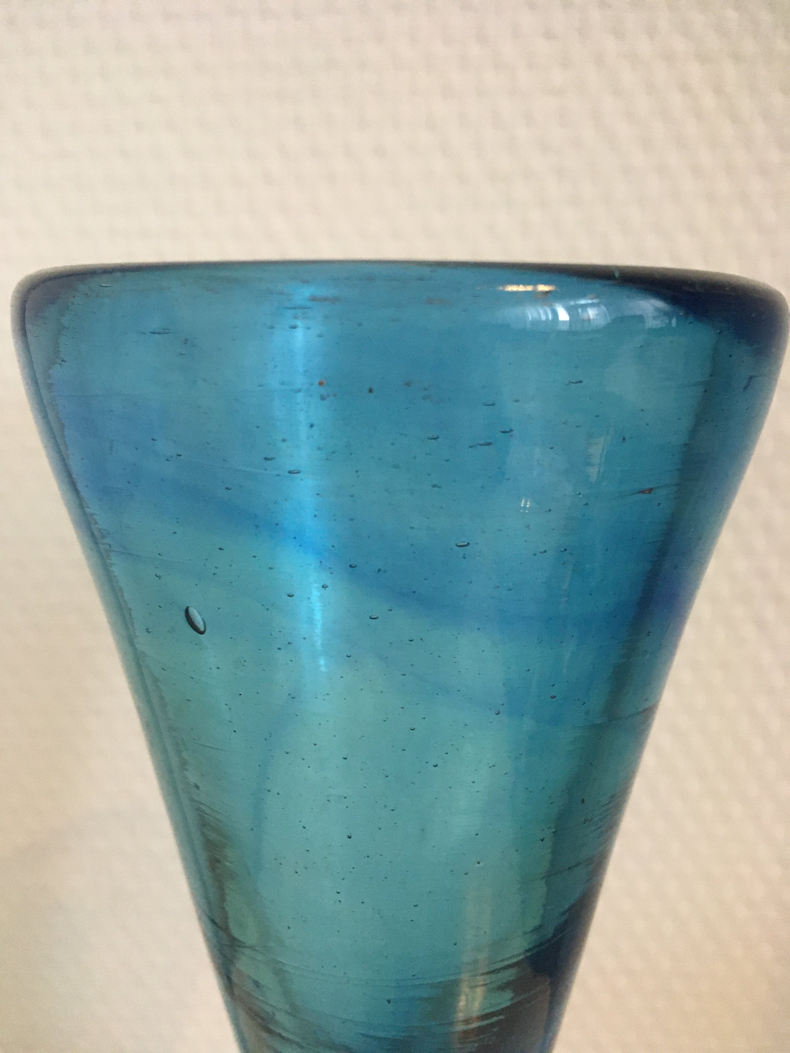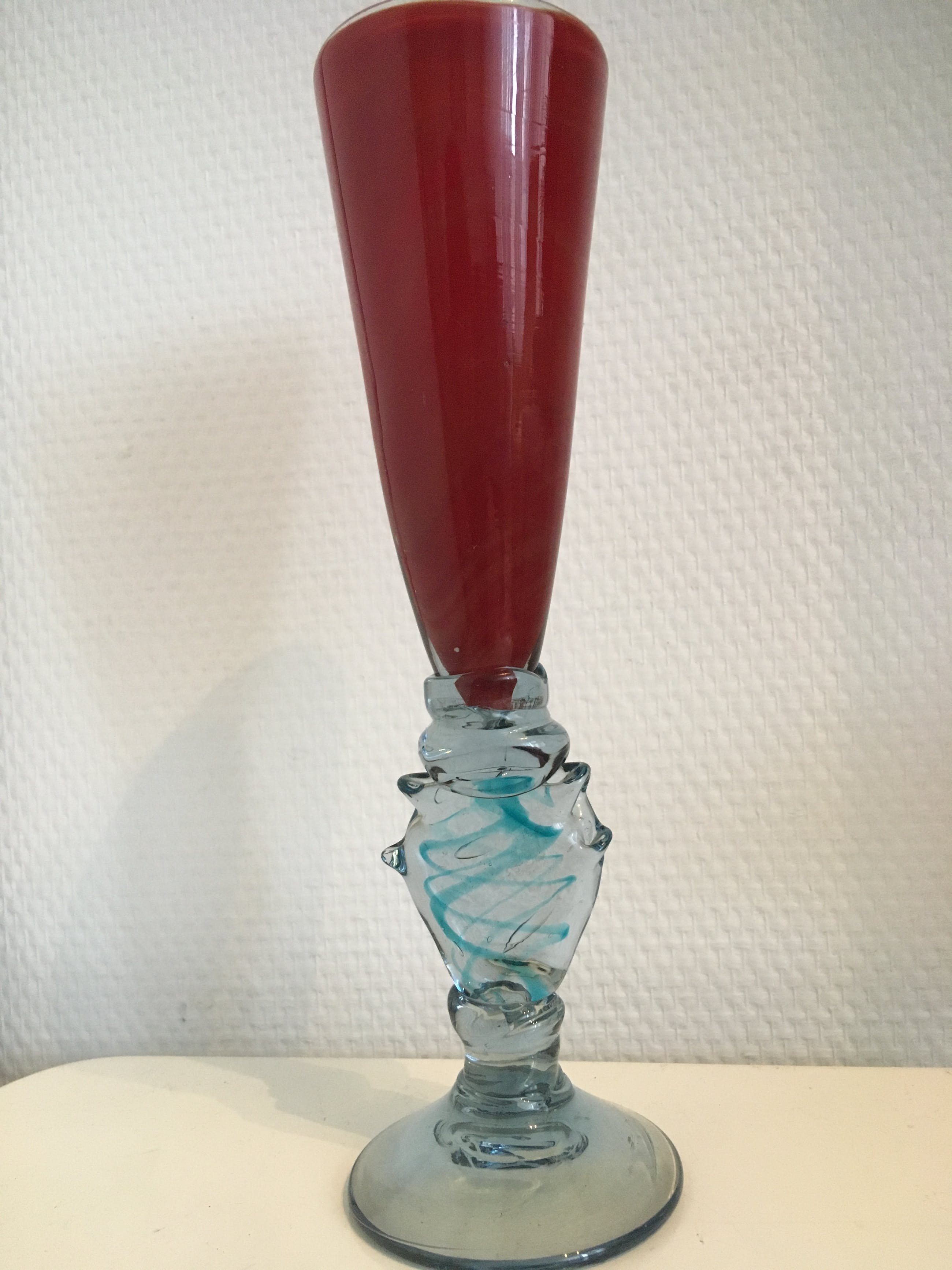 Prachtige handgemaakte ( wijn) glazen. Groot formaat en prachtig versierd en afgewerkt. Dikwandig Helemaal gaaf. Alle drie een pontil merk.