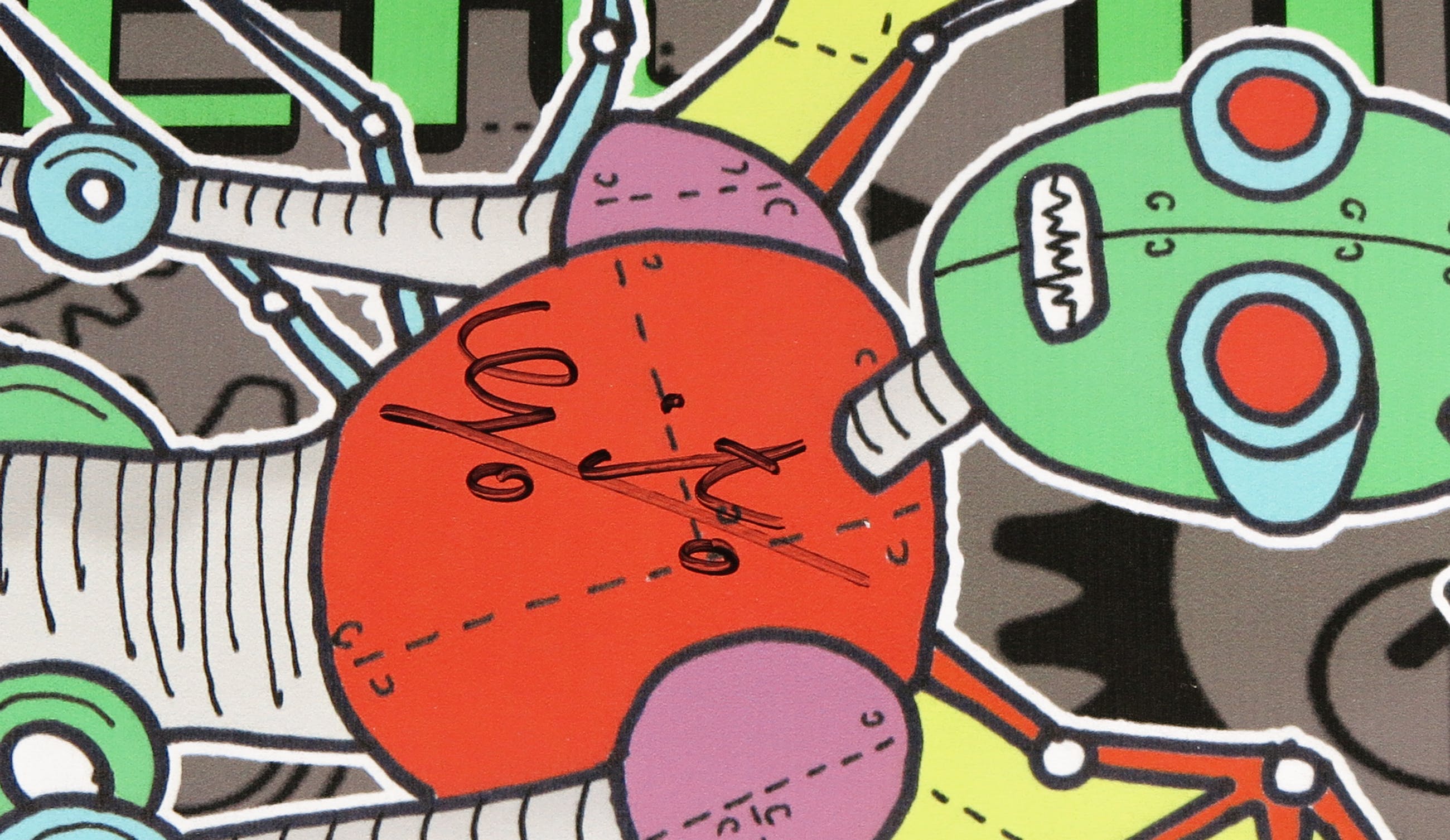 Skatedeck met de hand gesigneerd door skate-legende Guenter Mokulys.