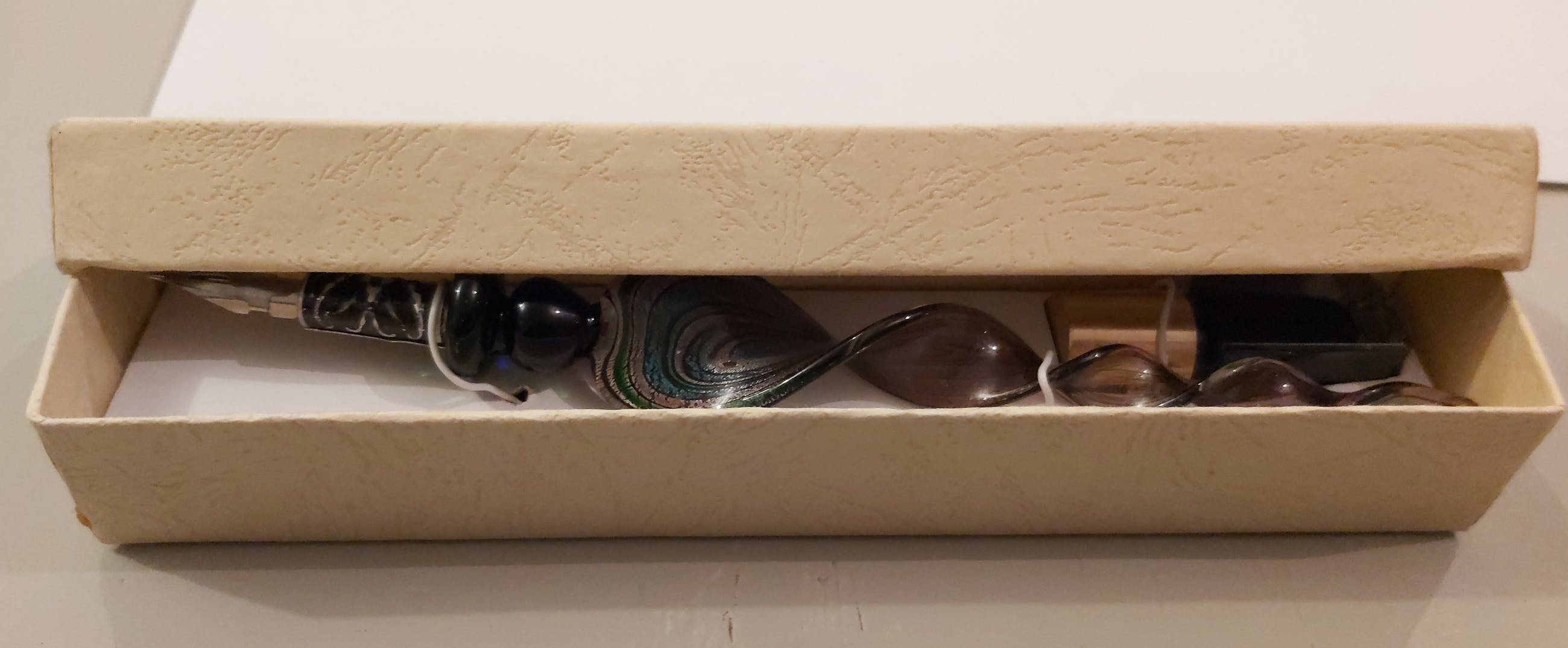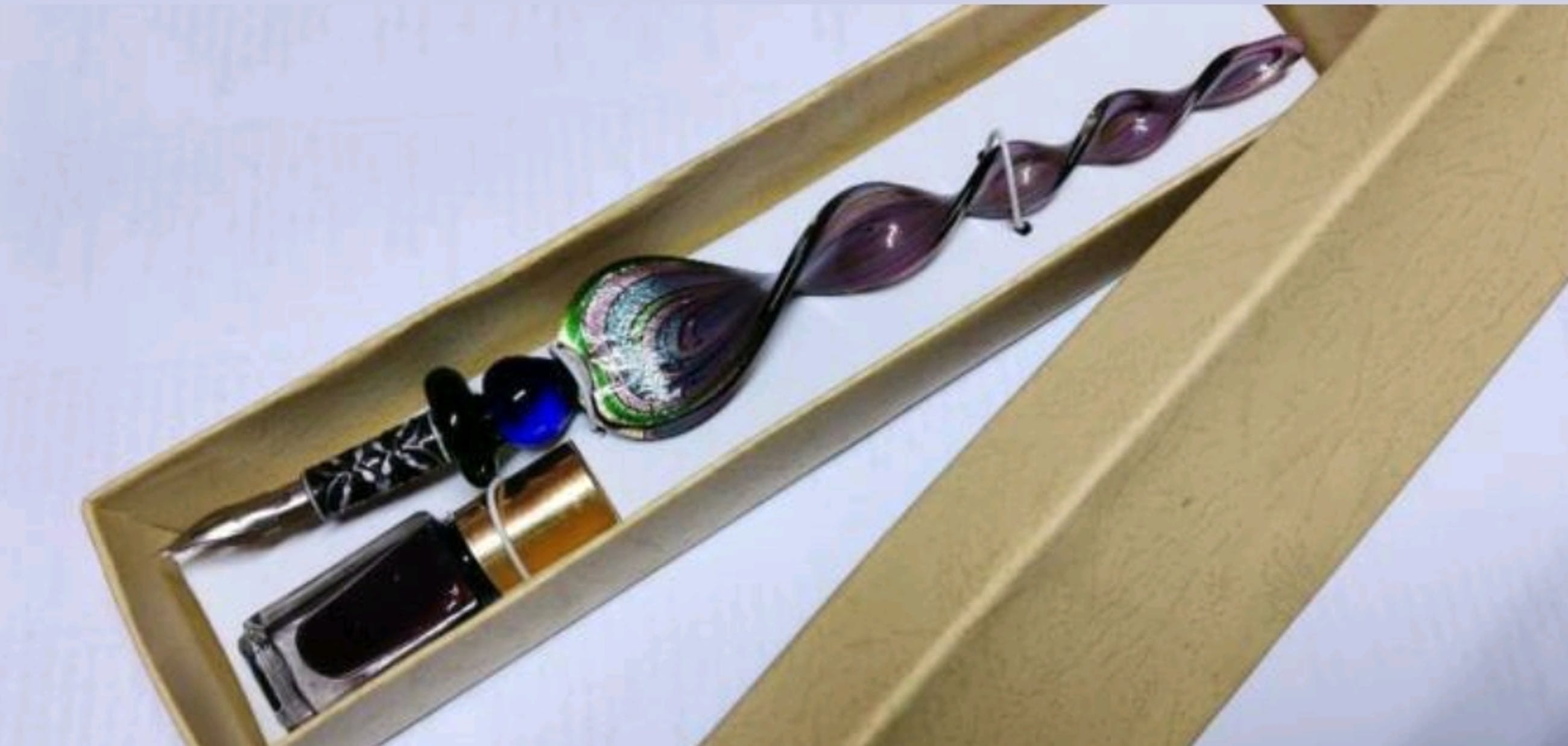 Murano calligrafie pen met inkt. NIEUW In mooie originele doos. Handgemaakte glazen pen. afmeting: lengte 19cm Wordt zorgvuldig verpakt alvorens te verzenden.