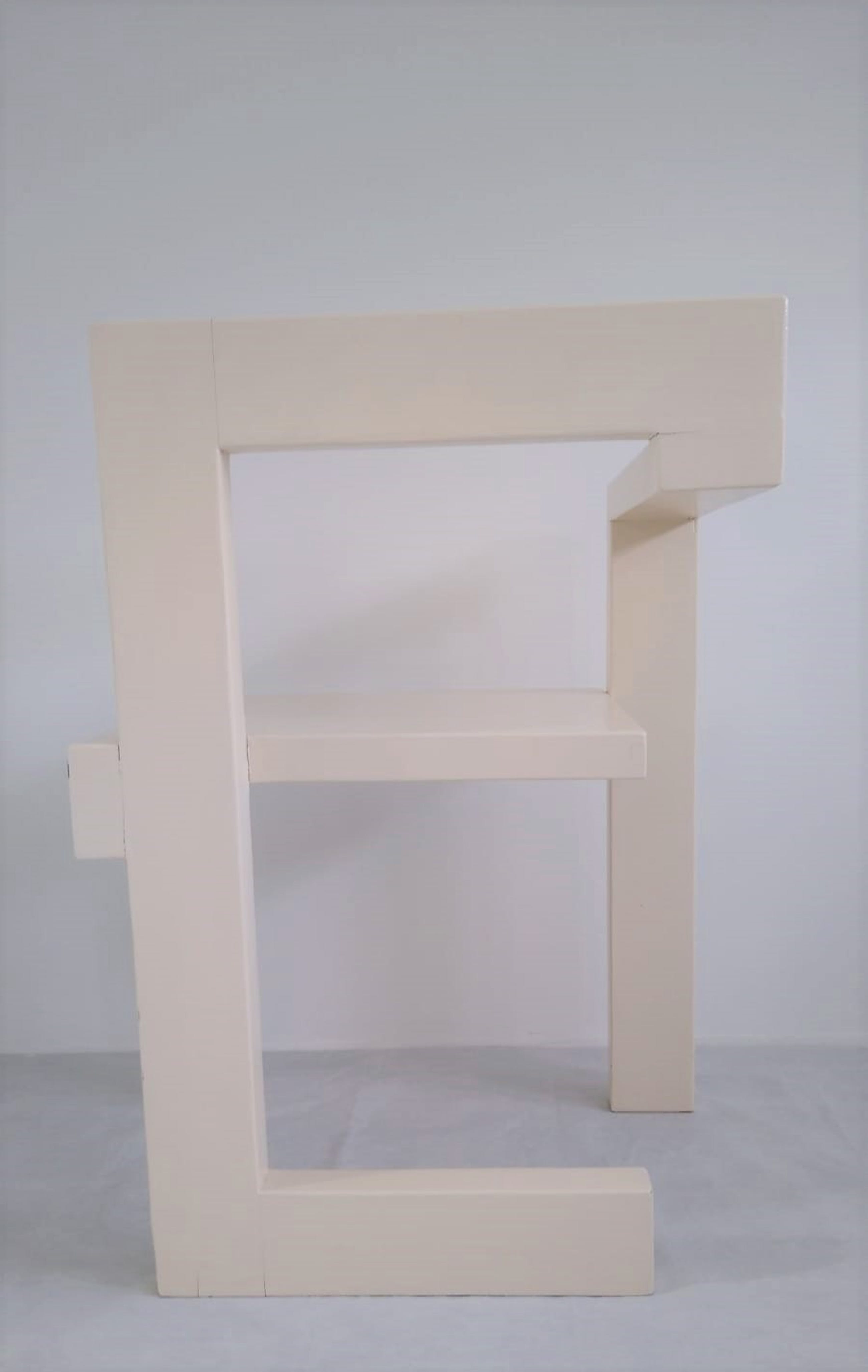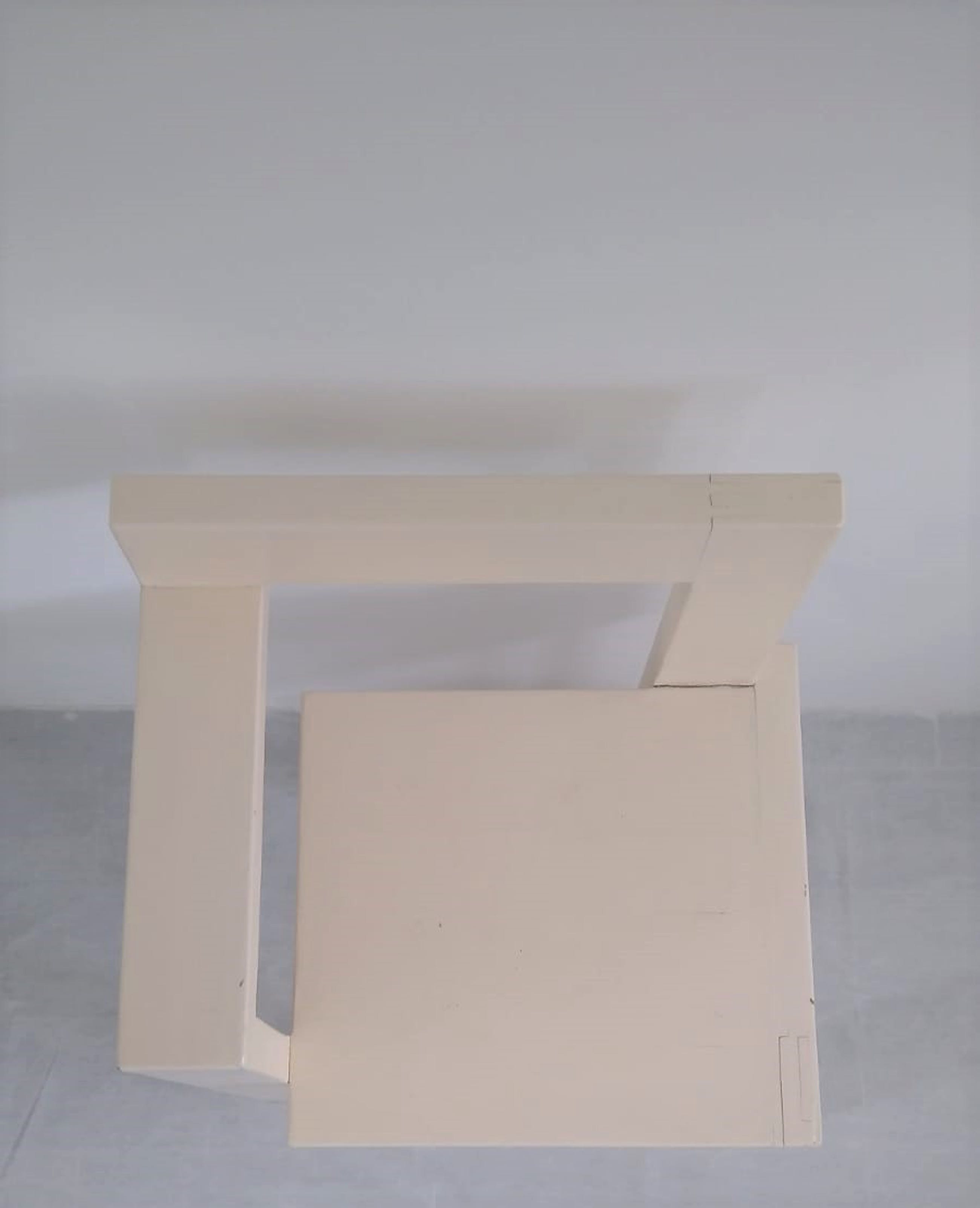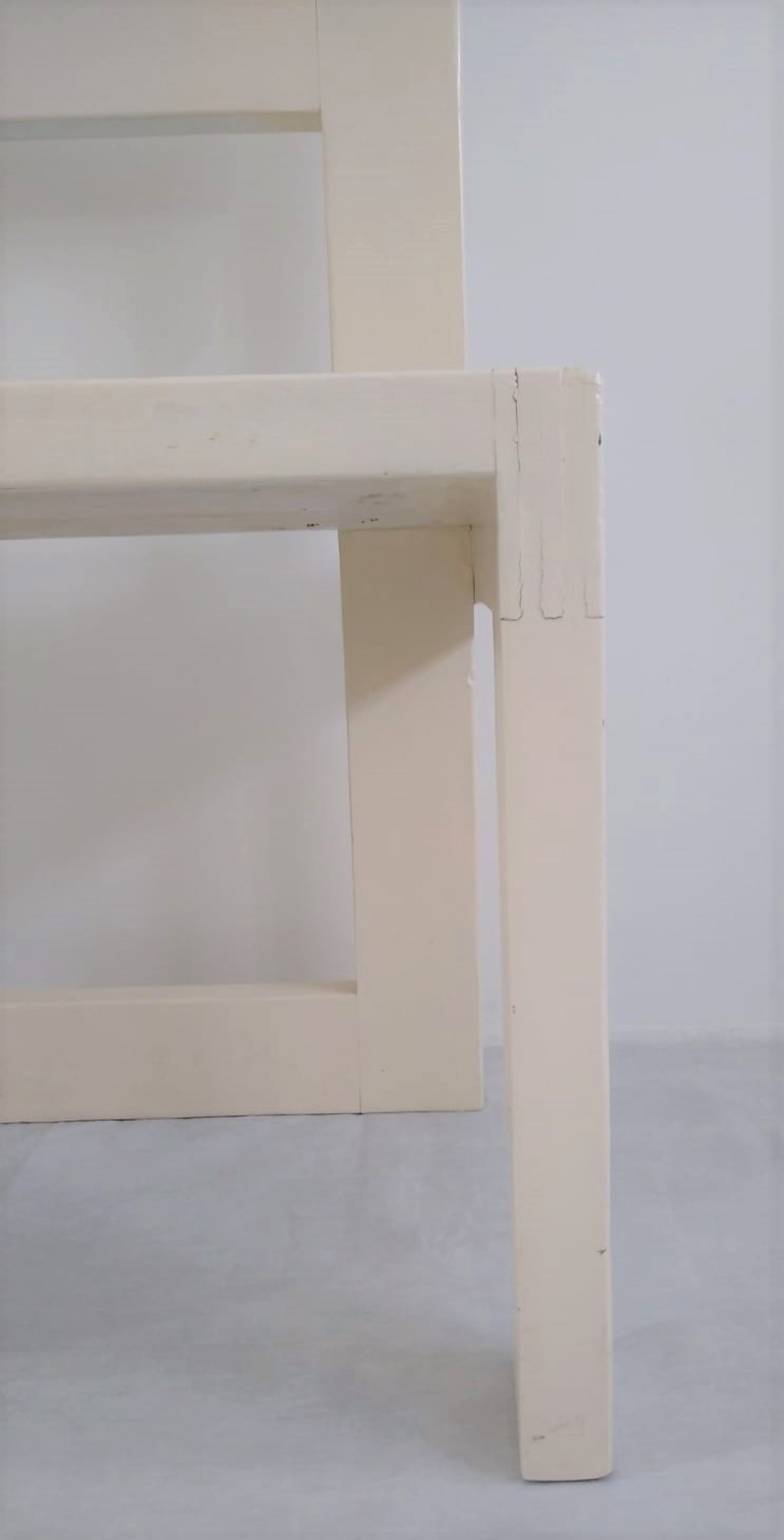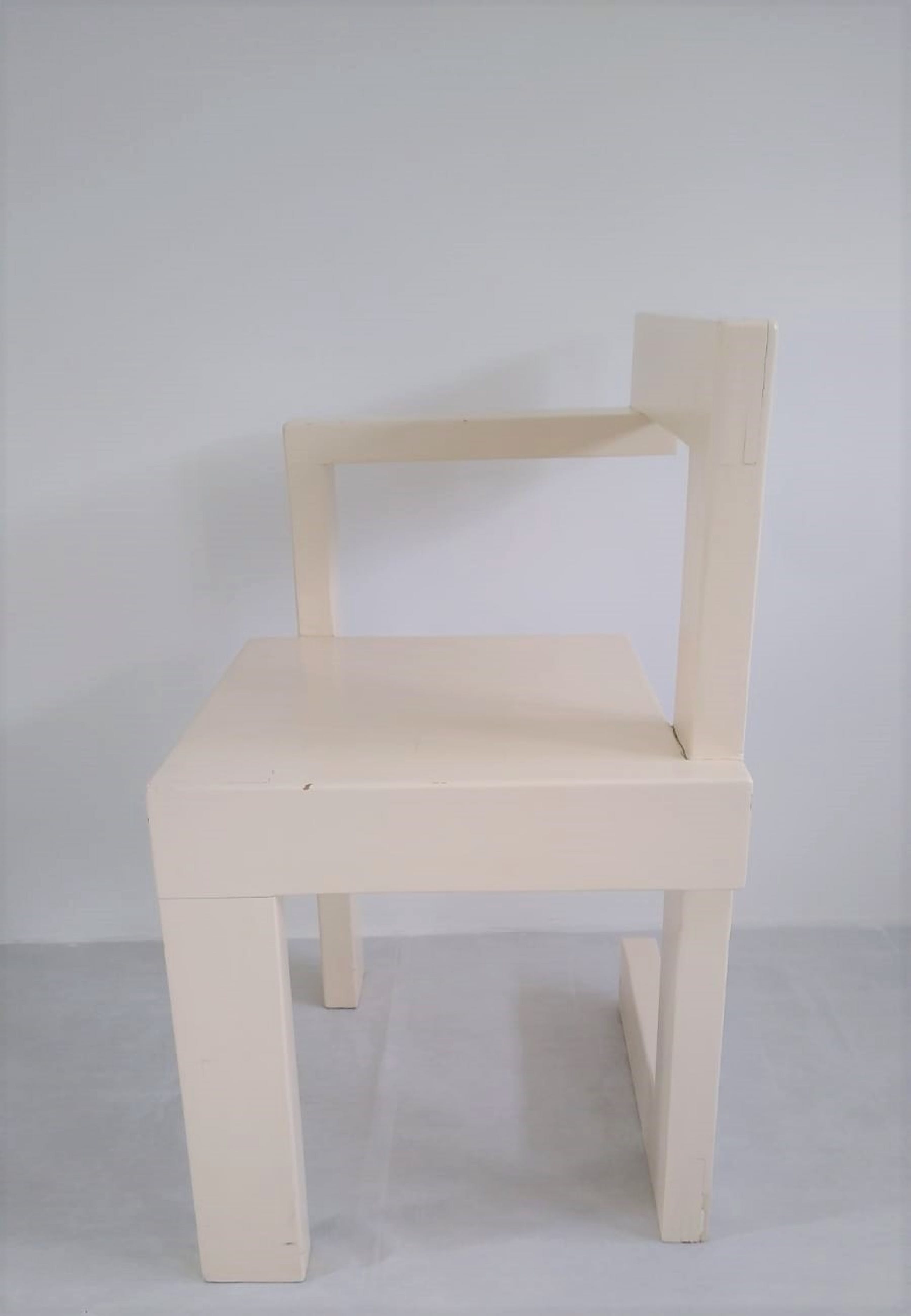 Een iconisch ontwerp, deze houten stoel ontworpen in de stijl van de Steltmanstoel door Gerrit Rietveld.