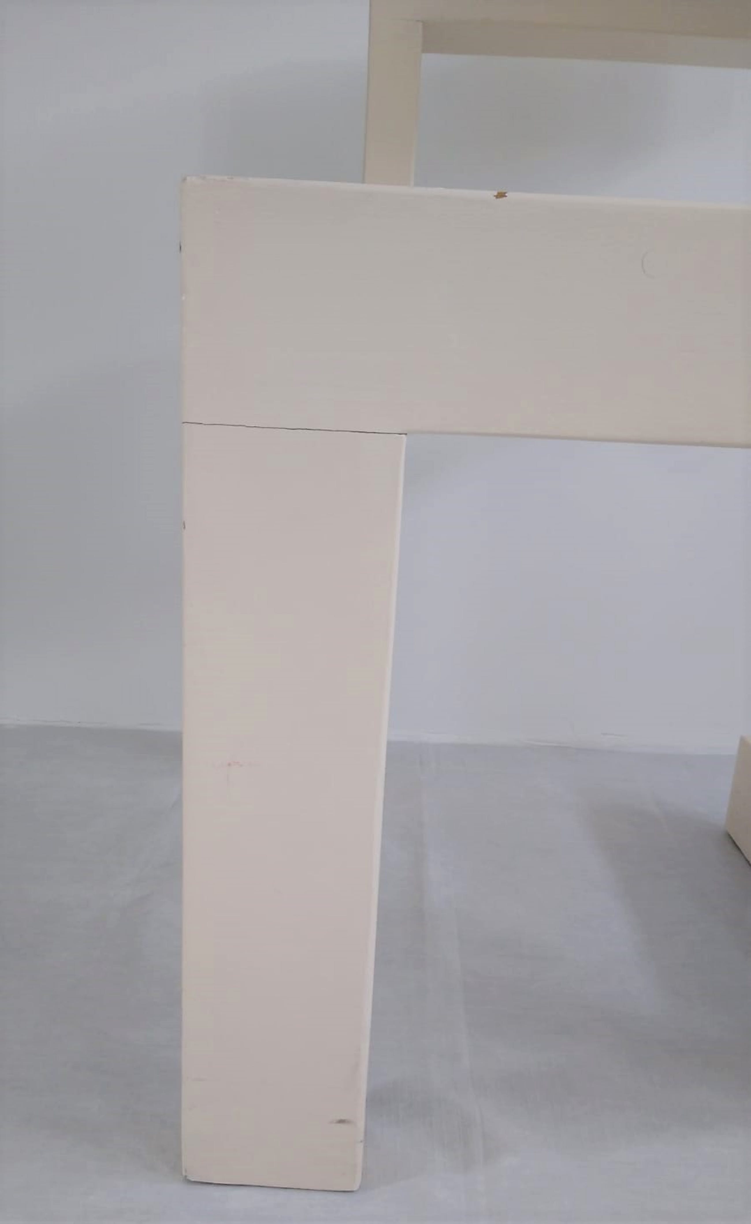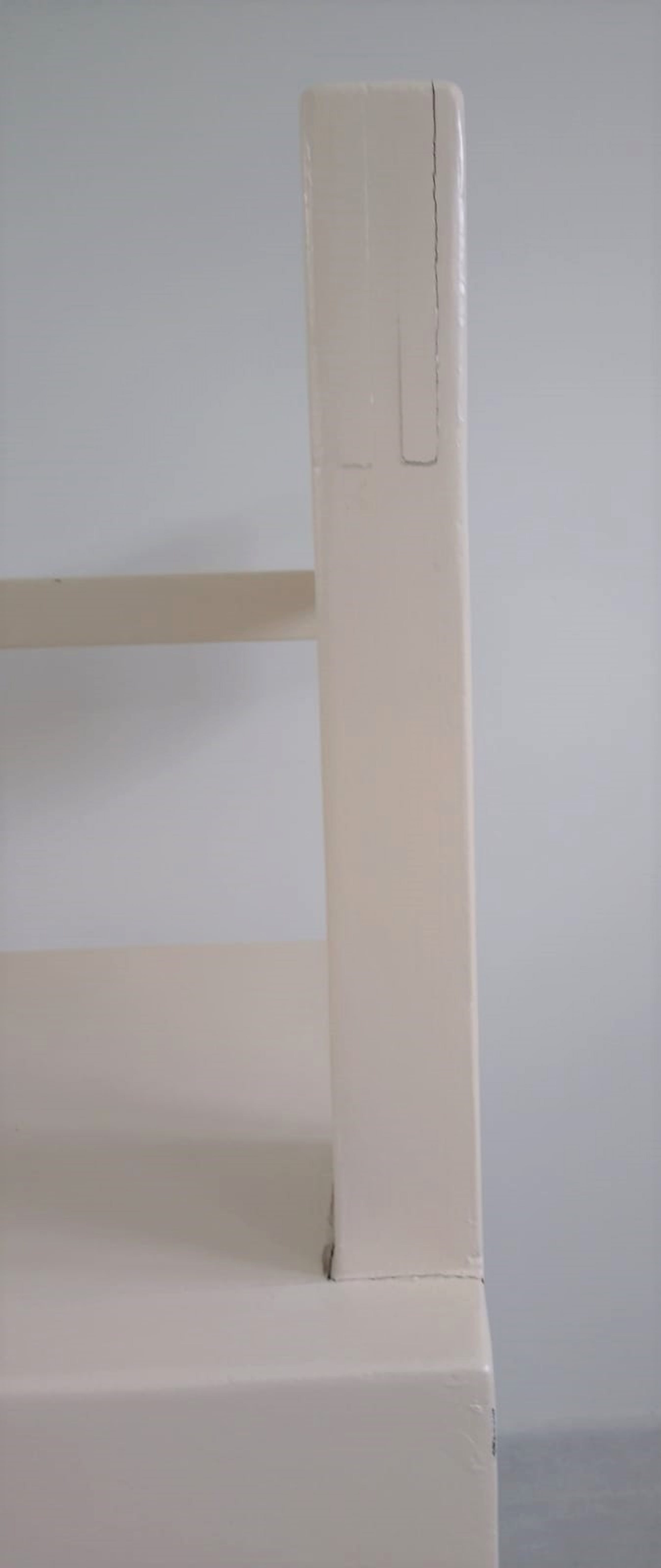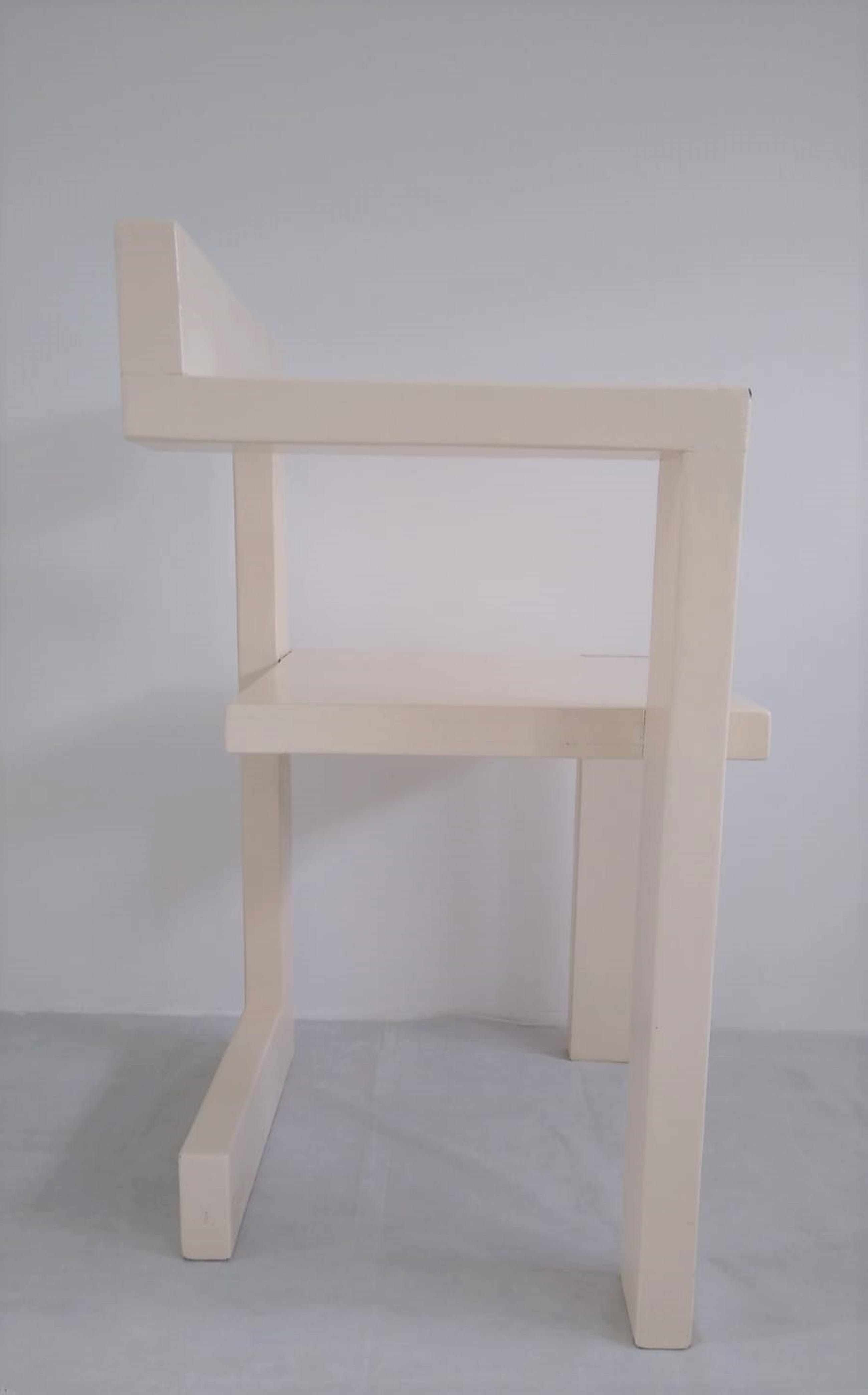 De stoel is met de hand gemaakt, naar ontwerp van de Steltmanstoel. Er zijn geen (zichtbare) schroeven gebruikt. Vanaf de jaren 70 is de stoel nog een keer geverfd, wat nu al weer een lange tijd aanwezig is. De stoel kan gebruikt worden of worden neergezet als iconisch ontwerp en kunstobject in de ruimte.