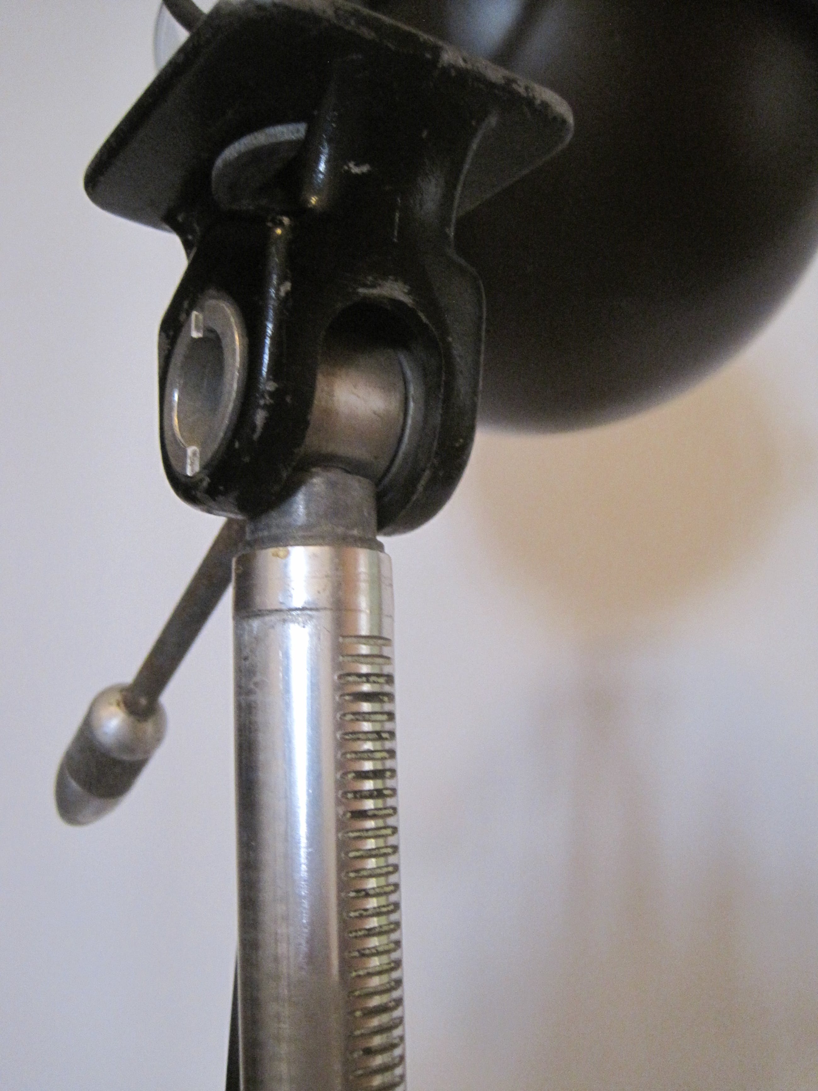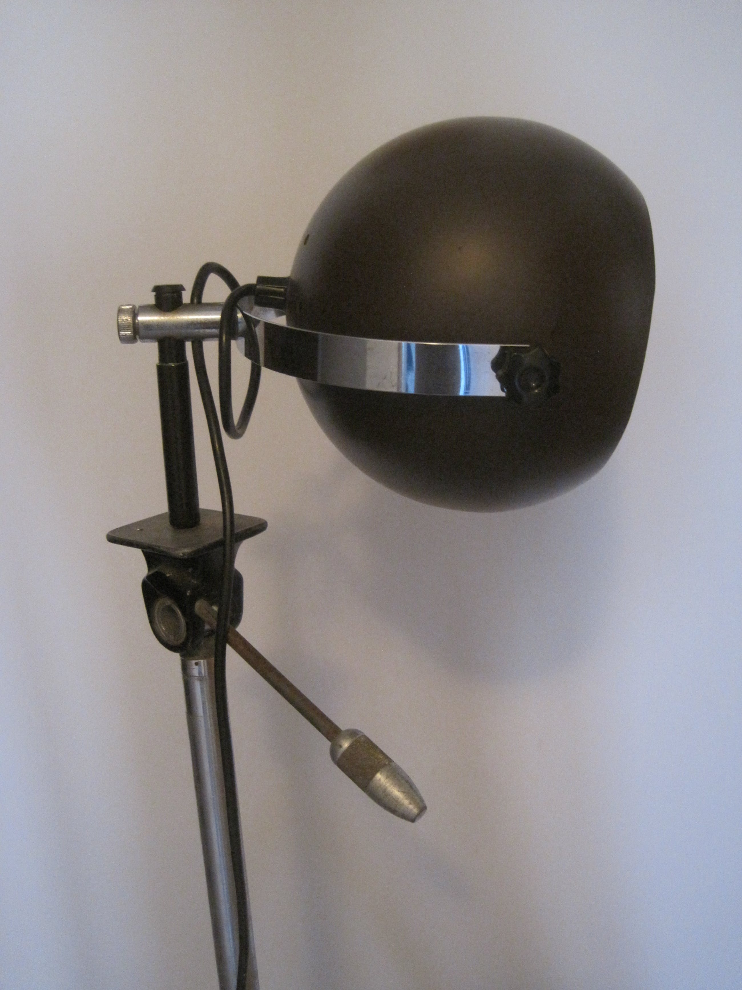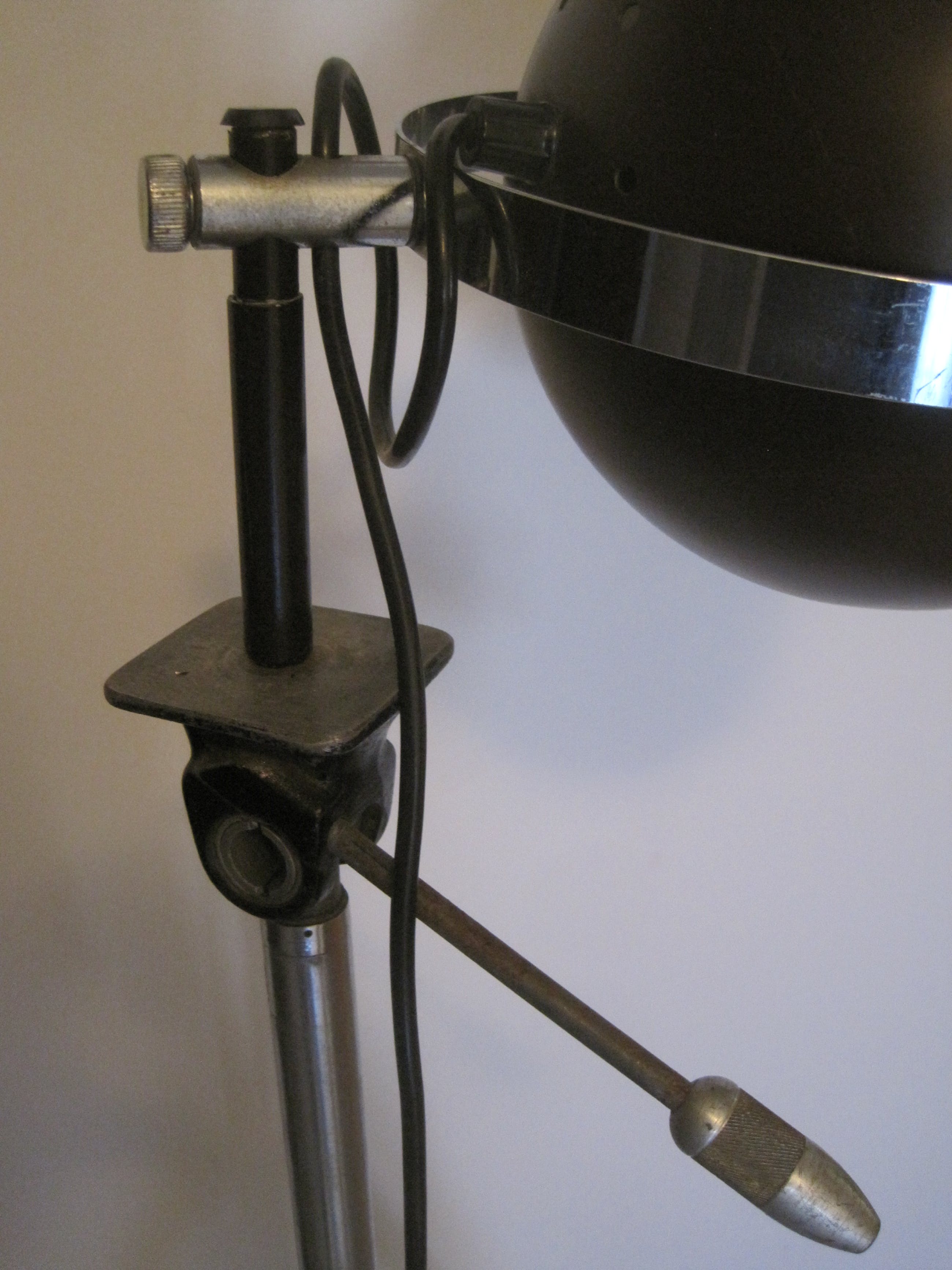 De lamp staat op een fotostatief van het merk Faifax en deze komt uit de jaren 1950. Fairfax is een Amerikaans merk Dit statief van zeer goede kwaliteit is vrijwel geheel gemaakt van aluminium en is op vele manieren verstelbaar. De lamp en het statief hebben gebruikssporen, De bedrading verkeert in een heel goede staat.