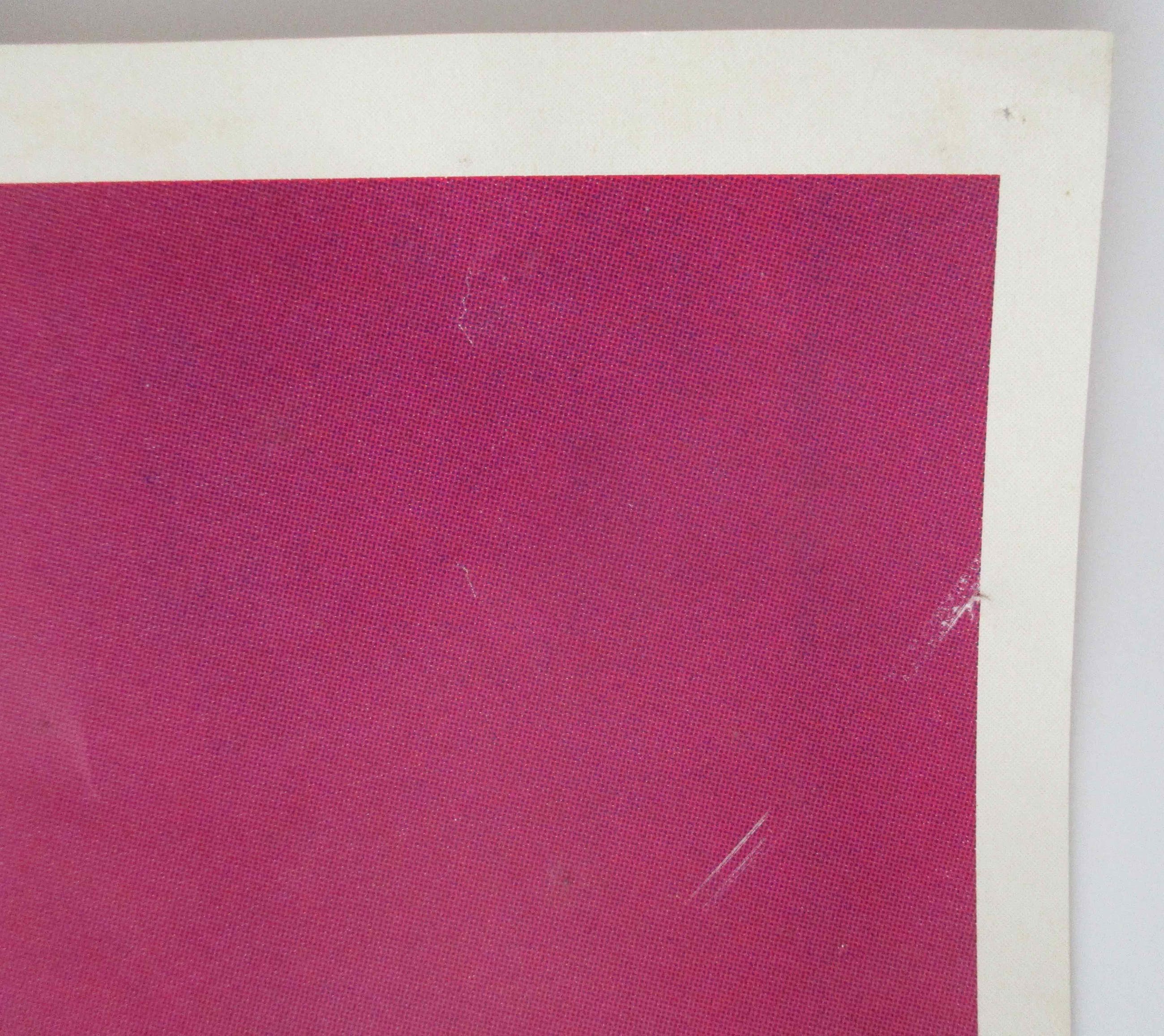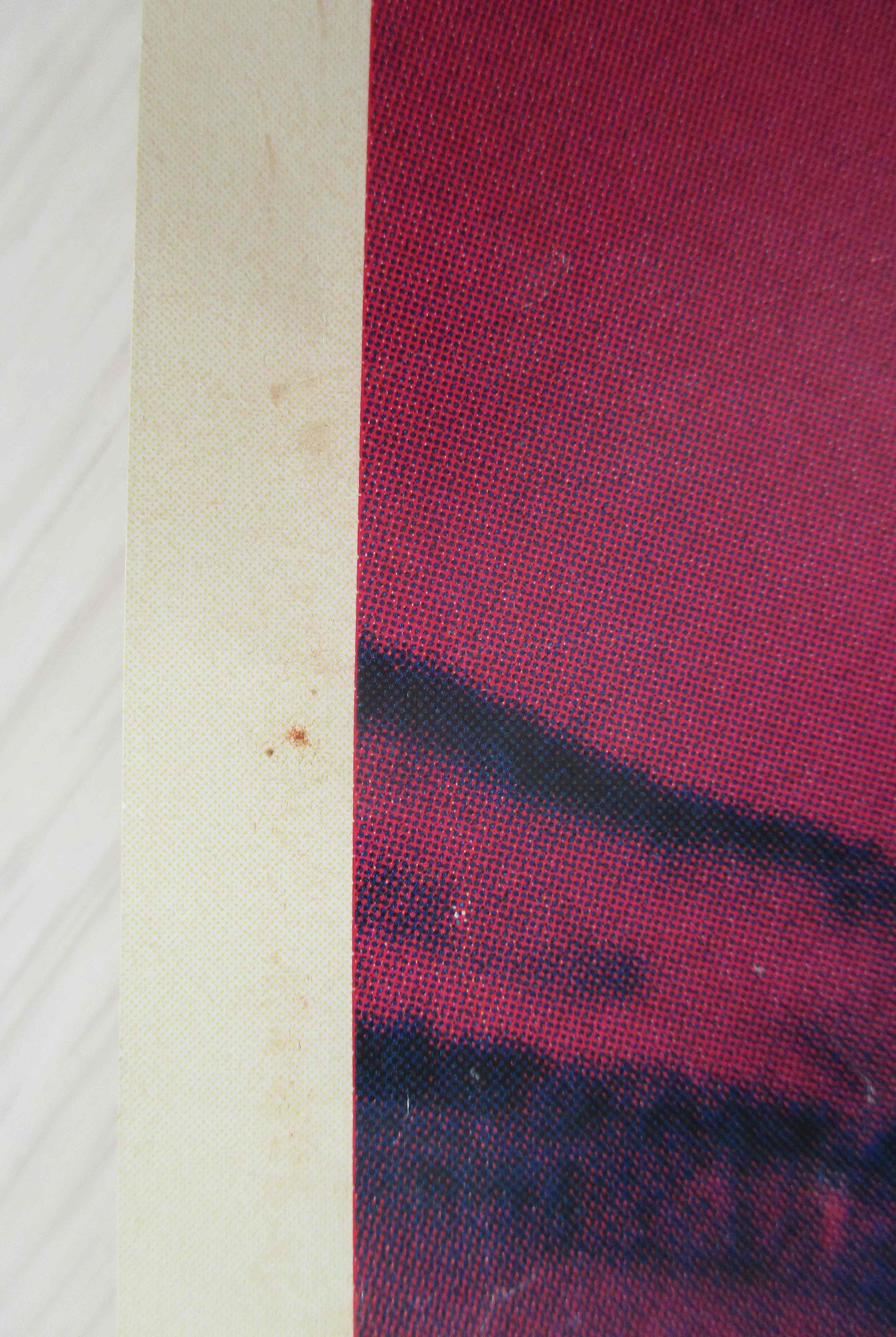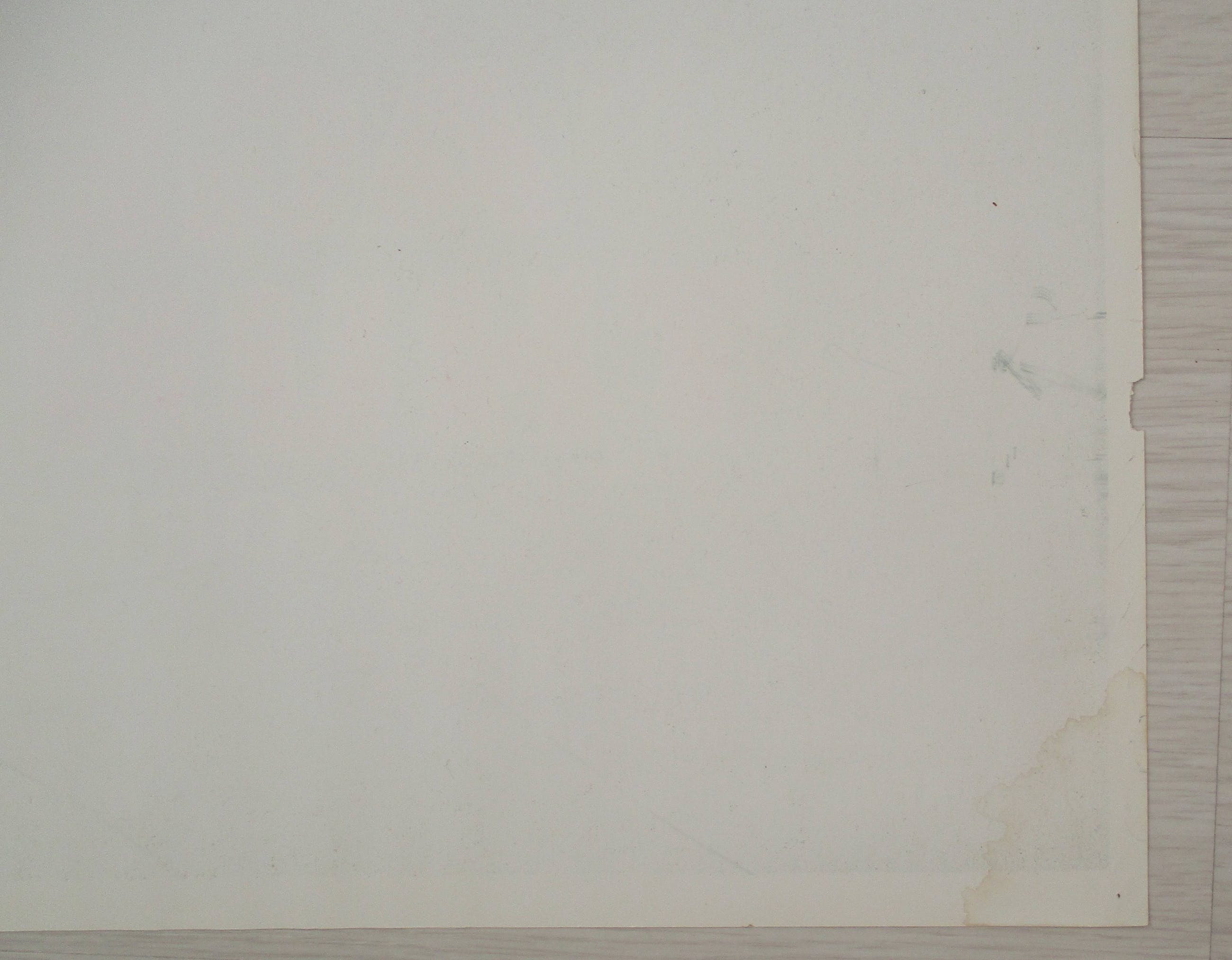 Goed tot zeer goed gezien de leeftijd van de poster. Lichte verkleuring. Kleine beschadiging aan de linkerzijde van 1 cm (in de marge). Enkele kleine krasjes in de afbeelding. Punaise gaatjes in de hoeken. Plakband restjes achter op de poster.