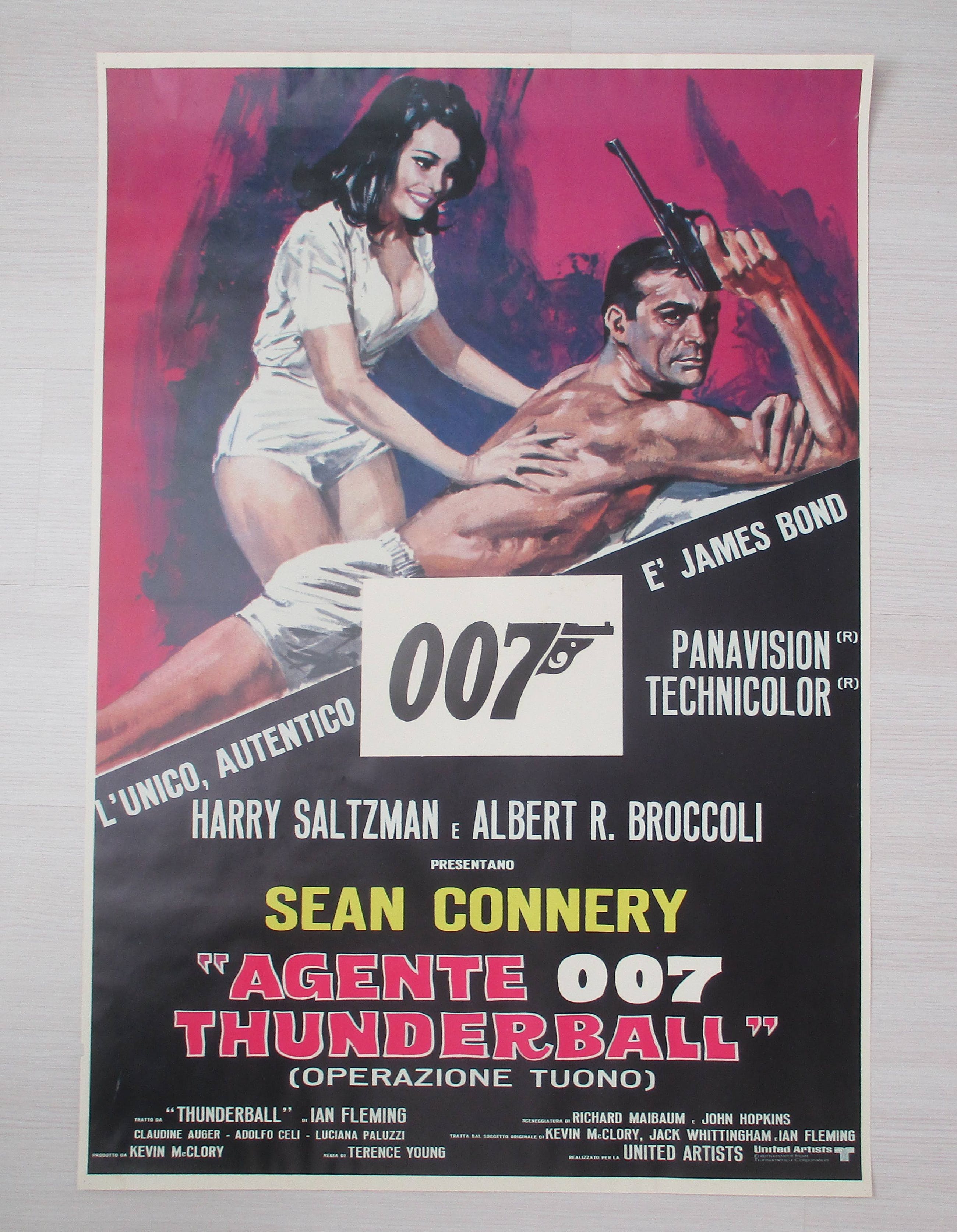 Vintage Italiaanse filmposter van de James Bond film "Thunderball" (1965). In de hoofdrol Sean Connery (1930-2020). Thunderball is een spionagefilm en de vierde in de James Bond-serie, met Sean Connery als MI6-agent James Bond. Zie de foto's voor een goede indruk.