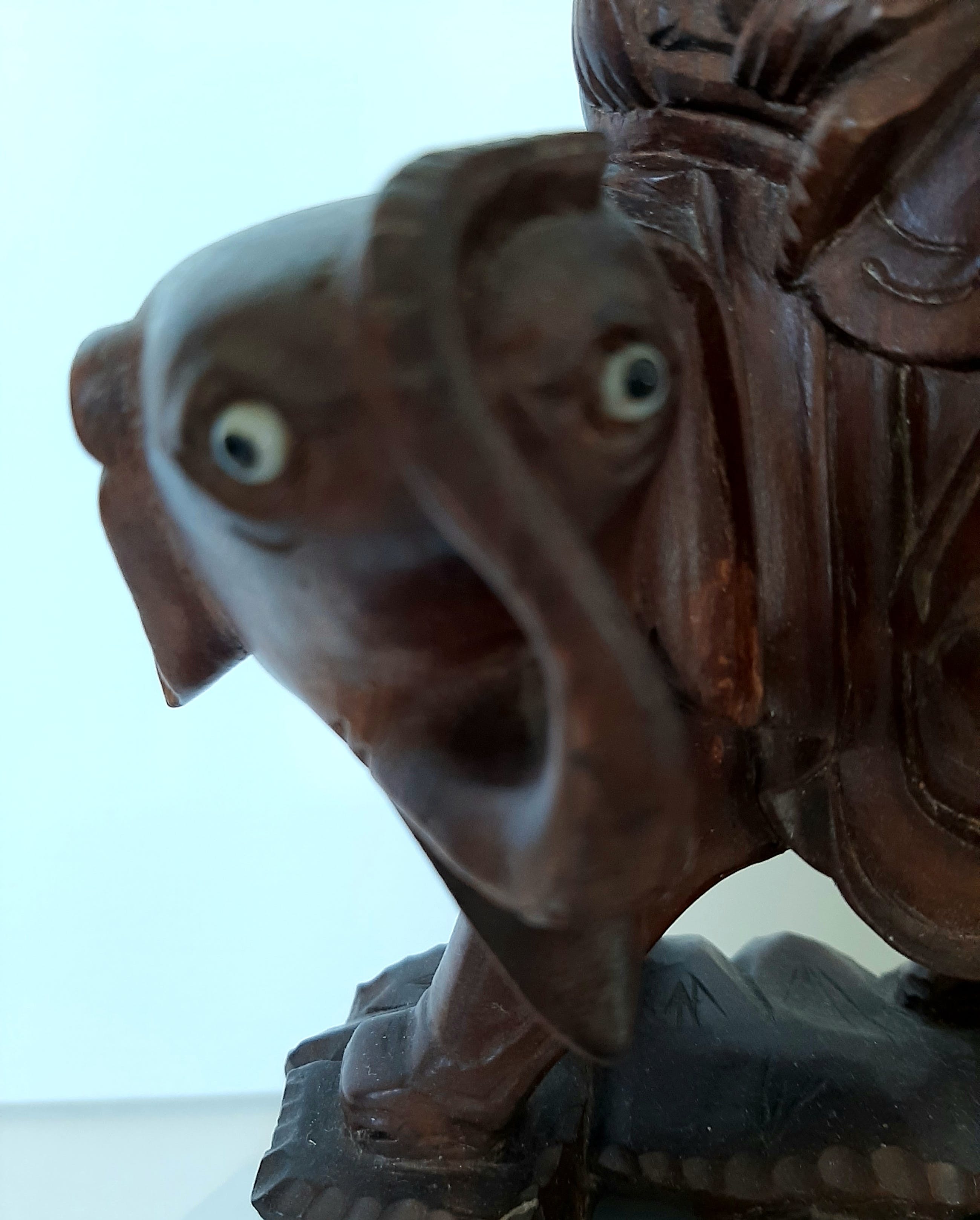 Zeer mooi werk van de kunstenaar. Oogen en tanden gemaakt van been.