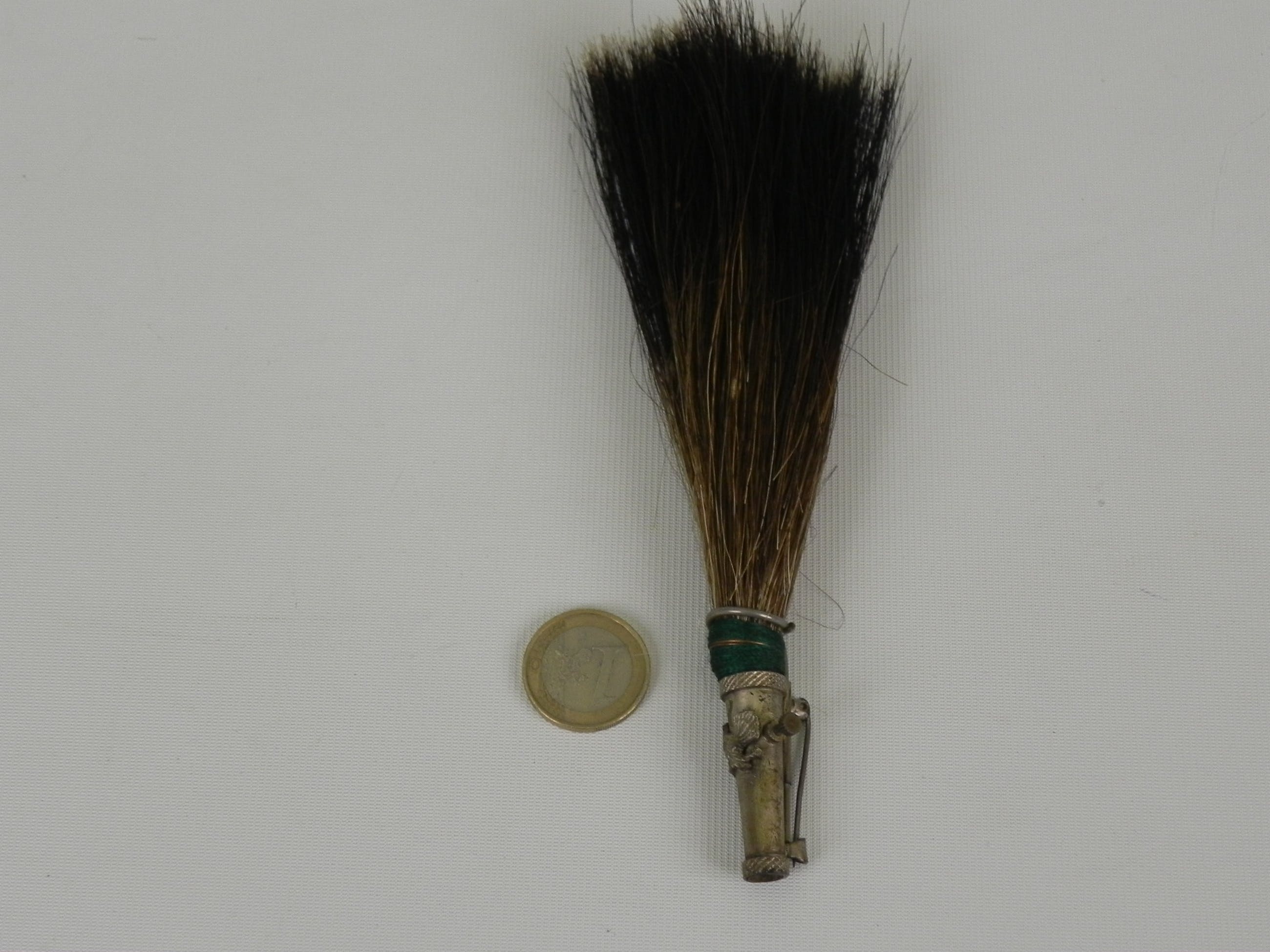 Jagershoedspeld / broche van wildzwijn haar met afbeelding van korhoen.