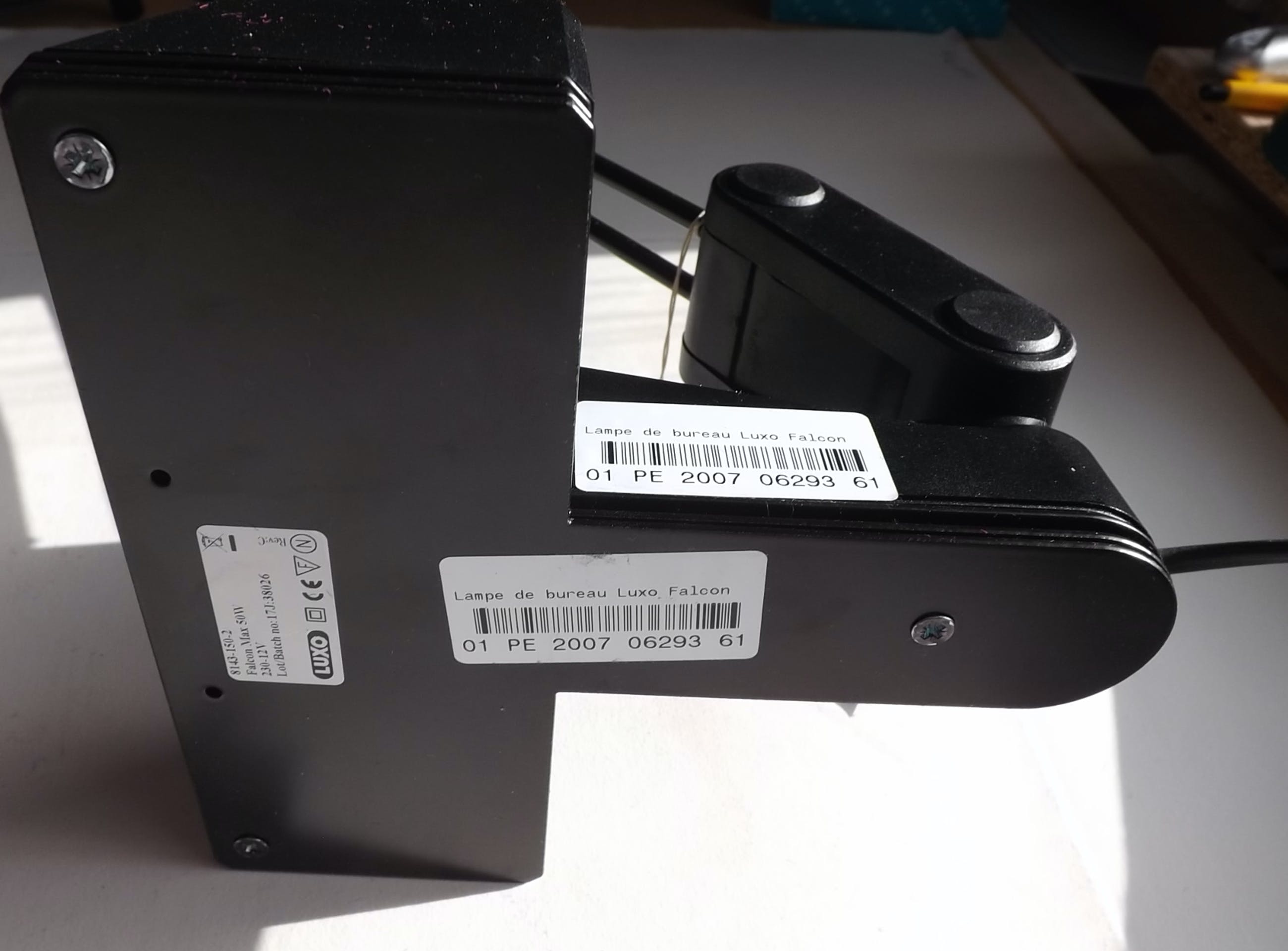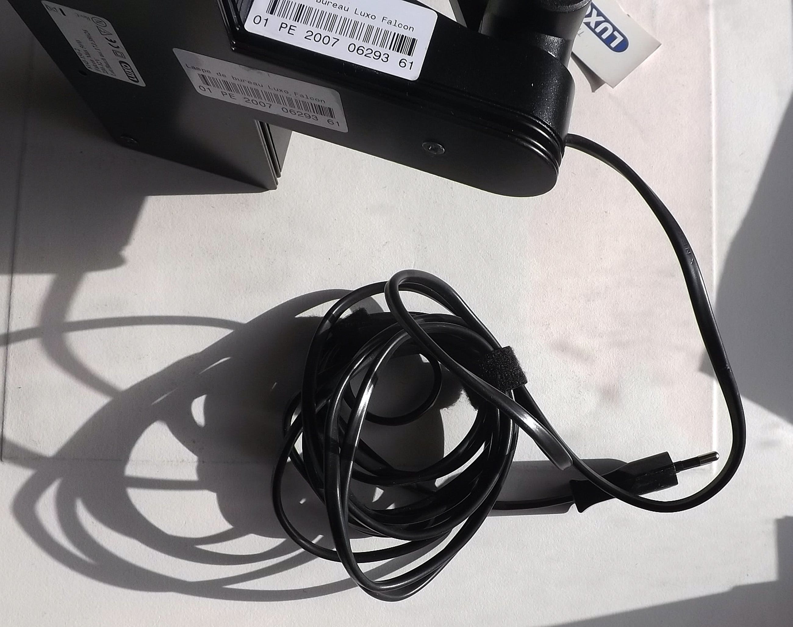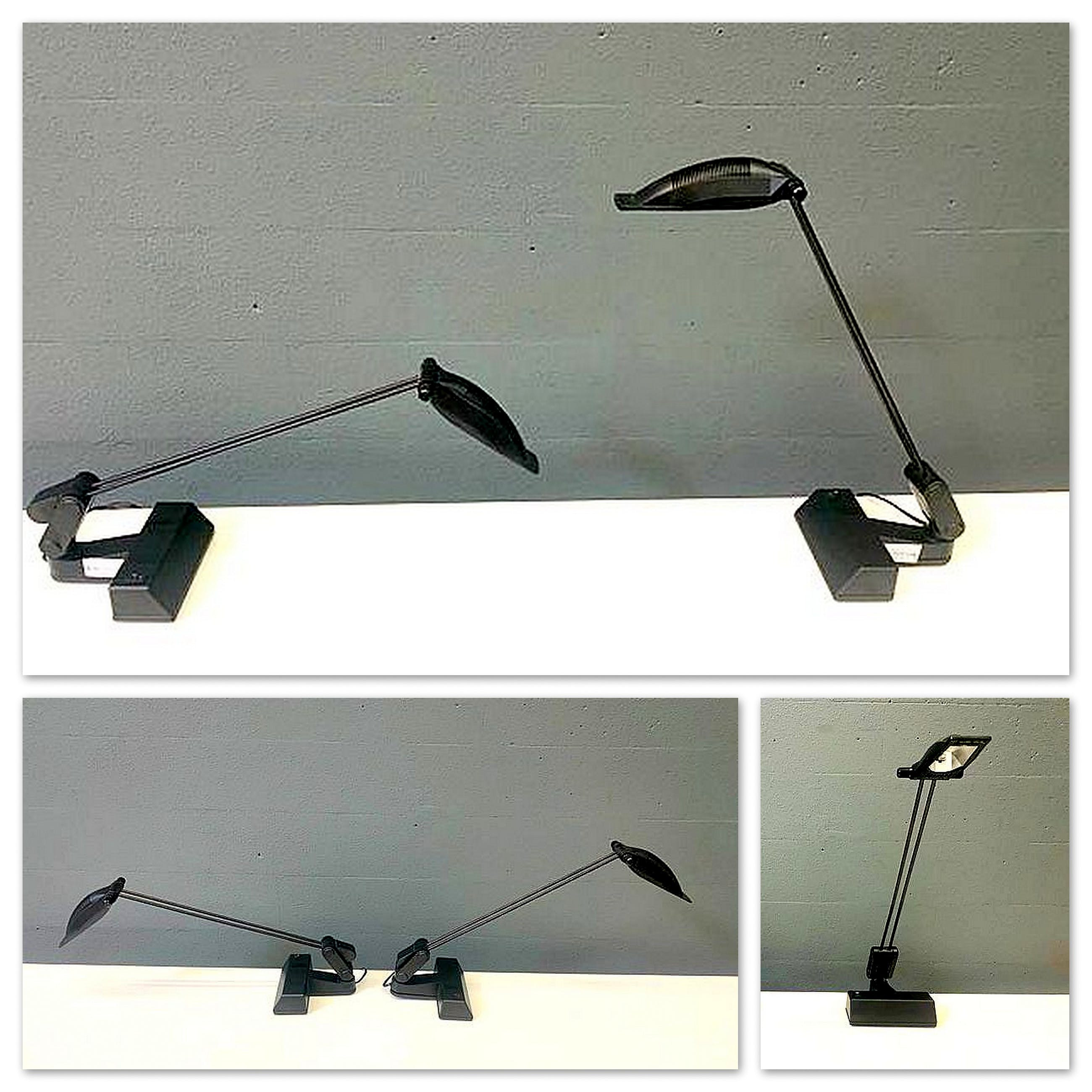 Aangeboden wordt een diep zwart gekleurde bureau lamp van het merk Falkon de Luxe. Deze lamp is ontworpen door de Scandinavische designer John Hougton in 1990.