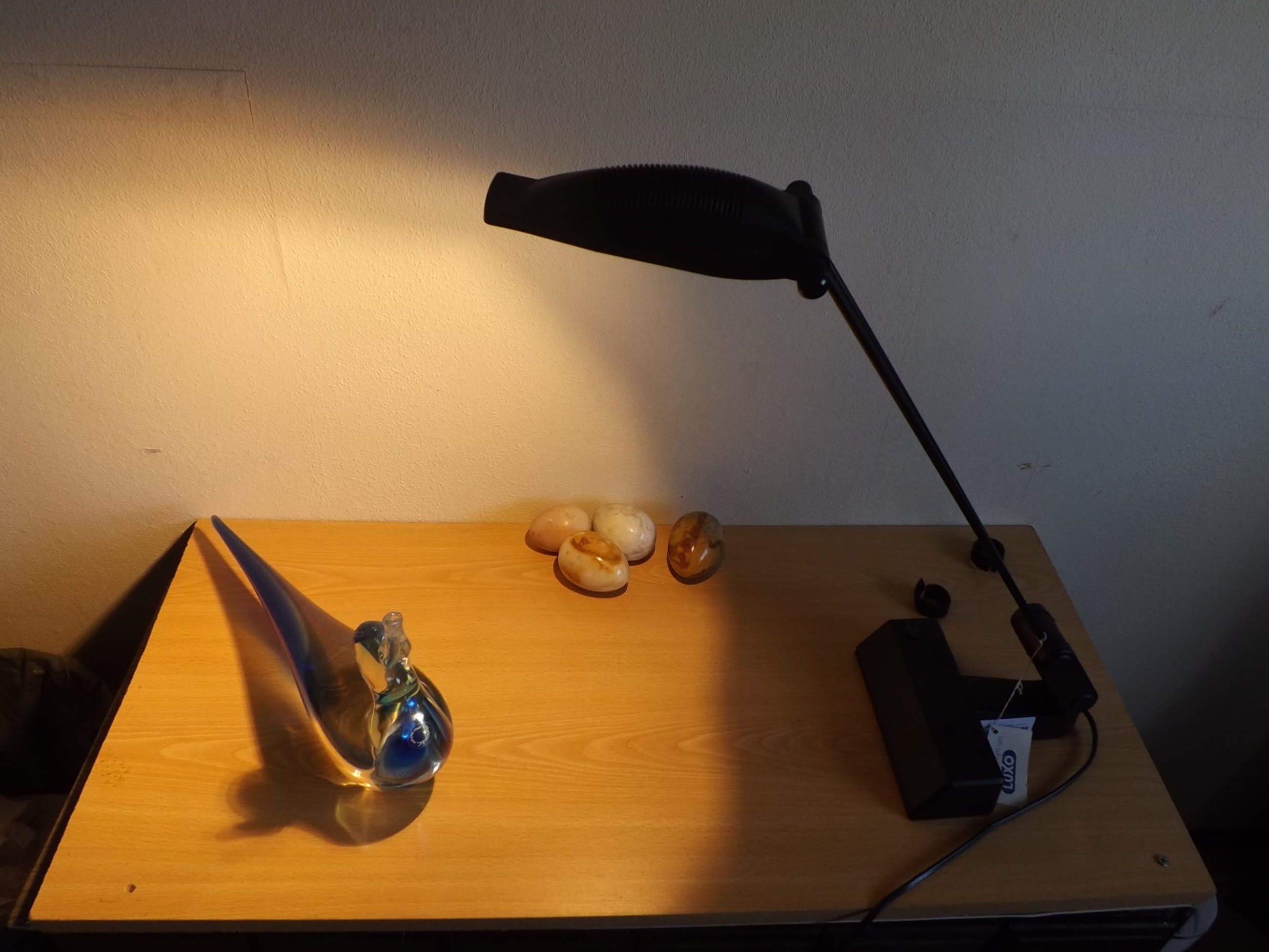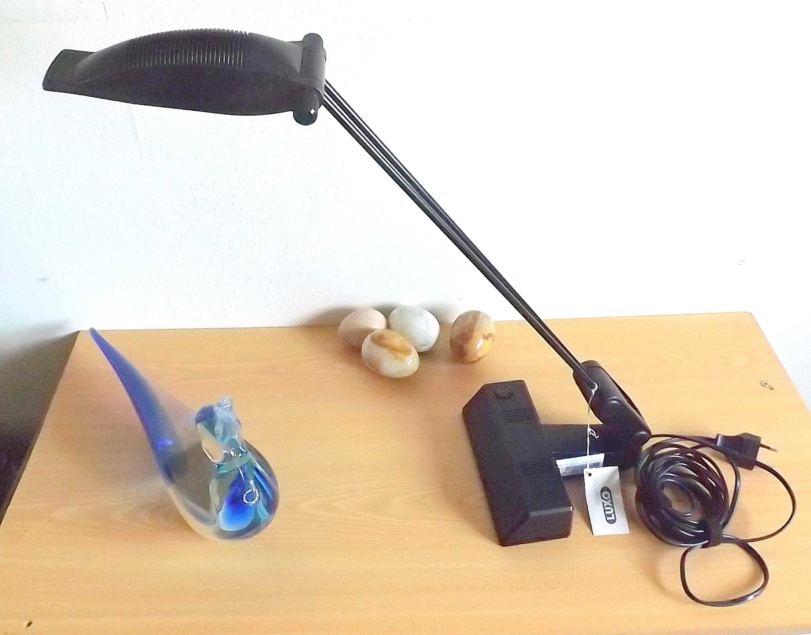 De lamp heeft een moderne uitstraling en is voorzien van een halogeen lamp met 2 lichtstanden. Zie voor meer informatie o.a: L u x o - L i g h t i n g * desklamps. De voet is voorzien van diverse stickers (zie foto). Hoogte 50 cm - voor meer afmetingen zie foto's Lamp is In goede conditie.