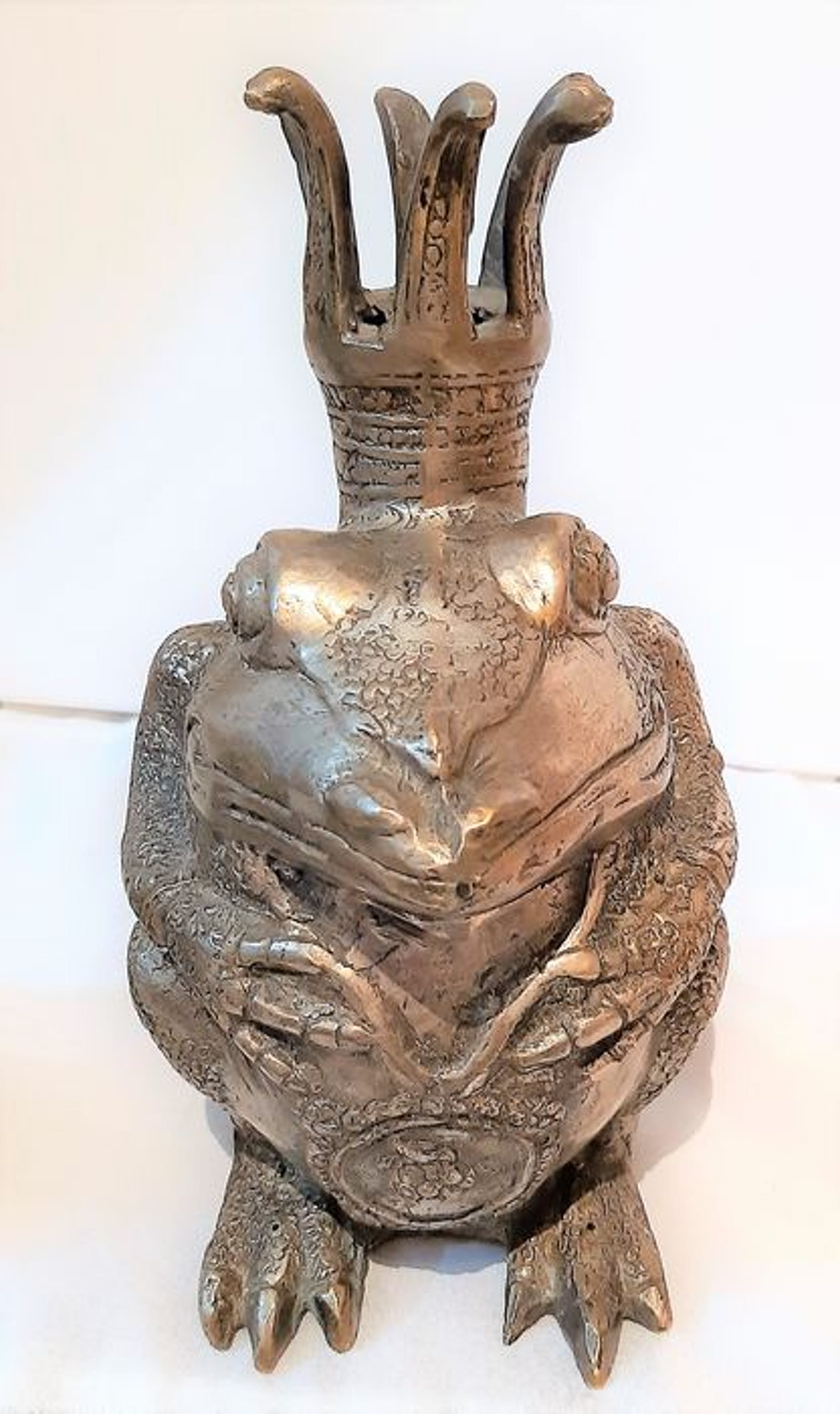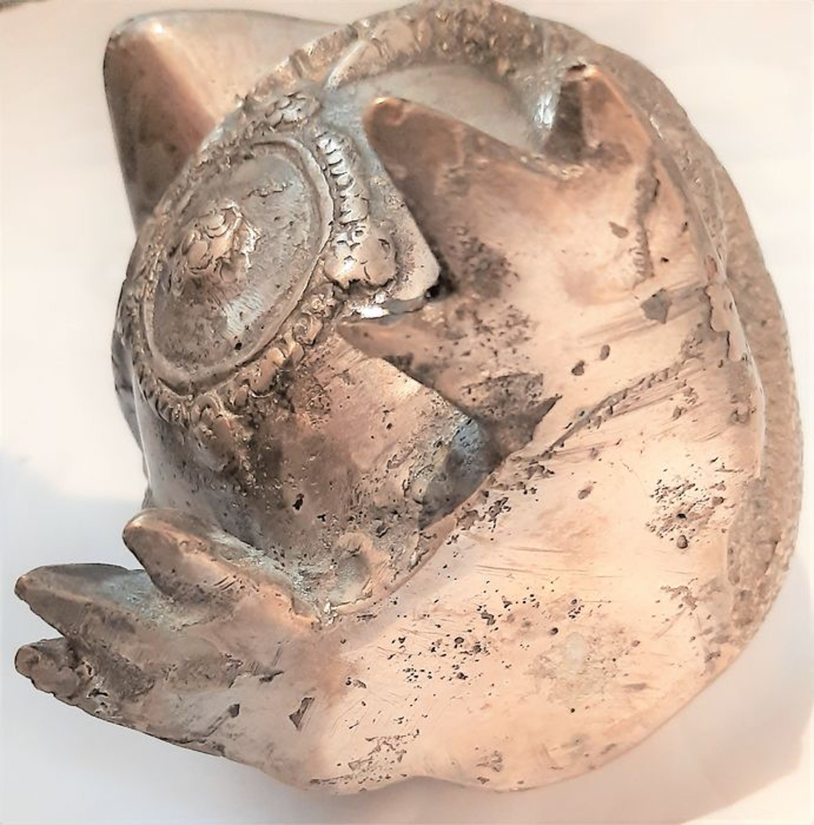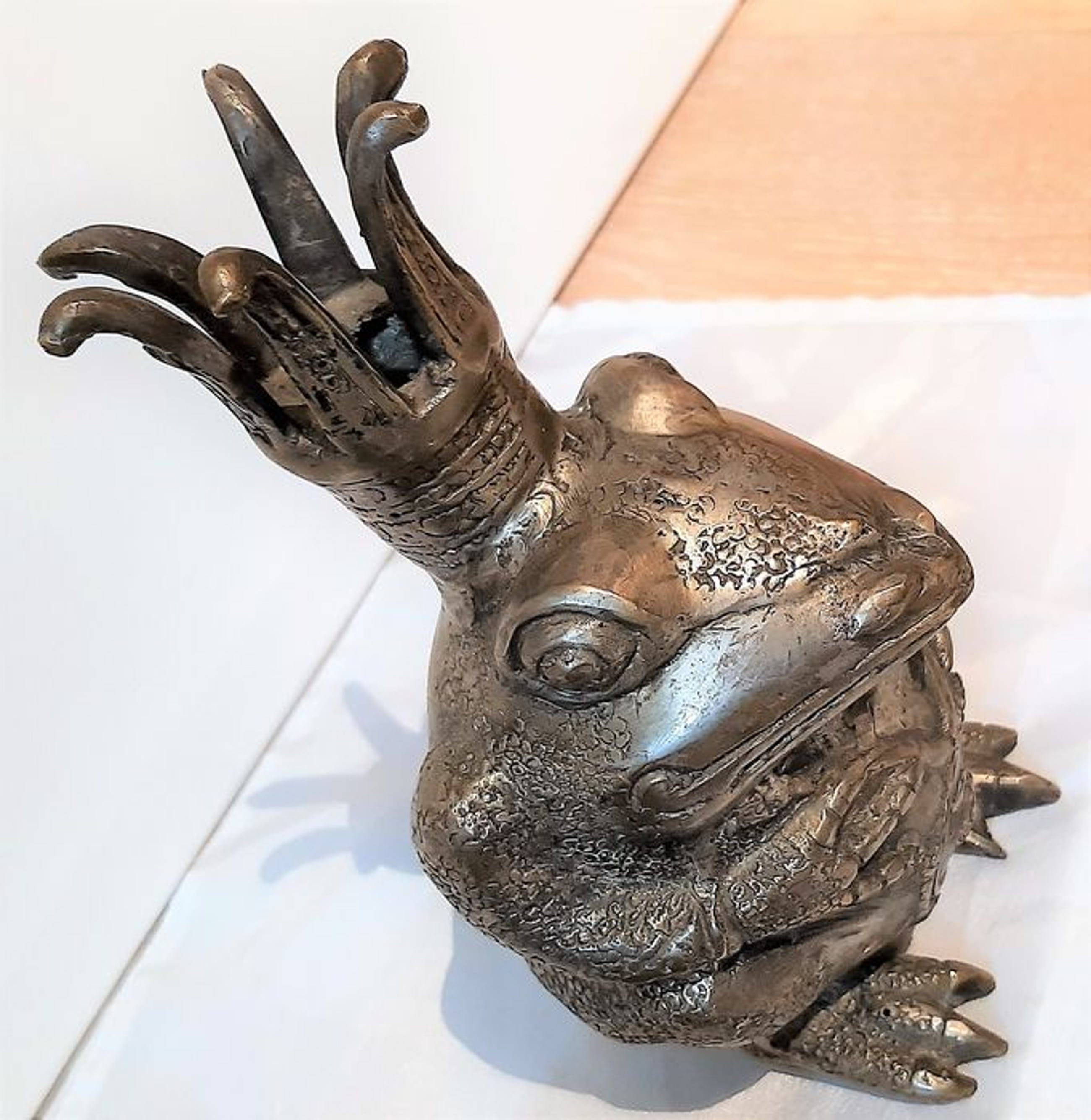 Grote kikker-koning van metal zilveren kleur gekocht in Parijs.Gemakt in 19-20e eeuw.Antiek.Maat: 30cm hoog,15x15cm