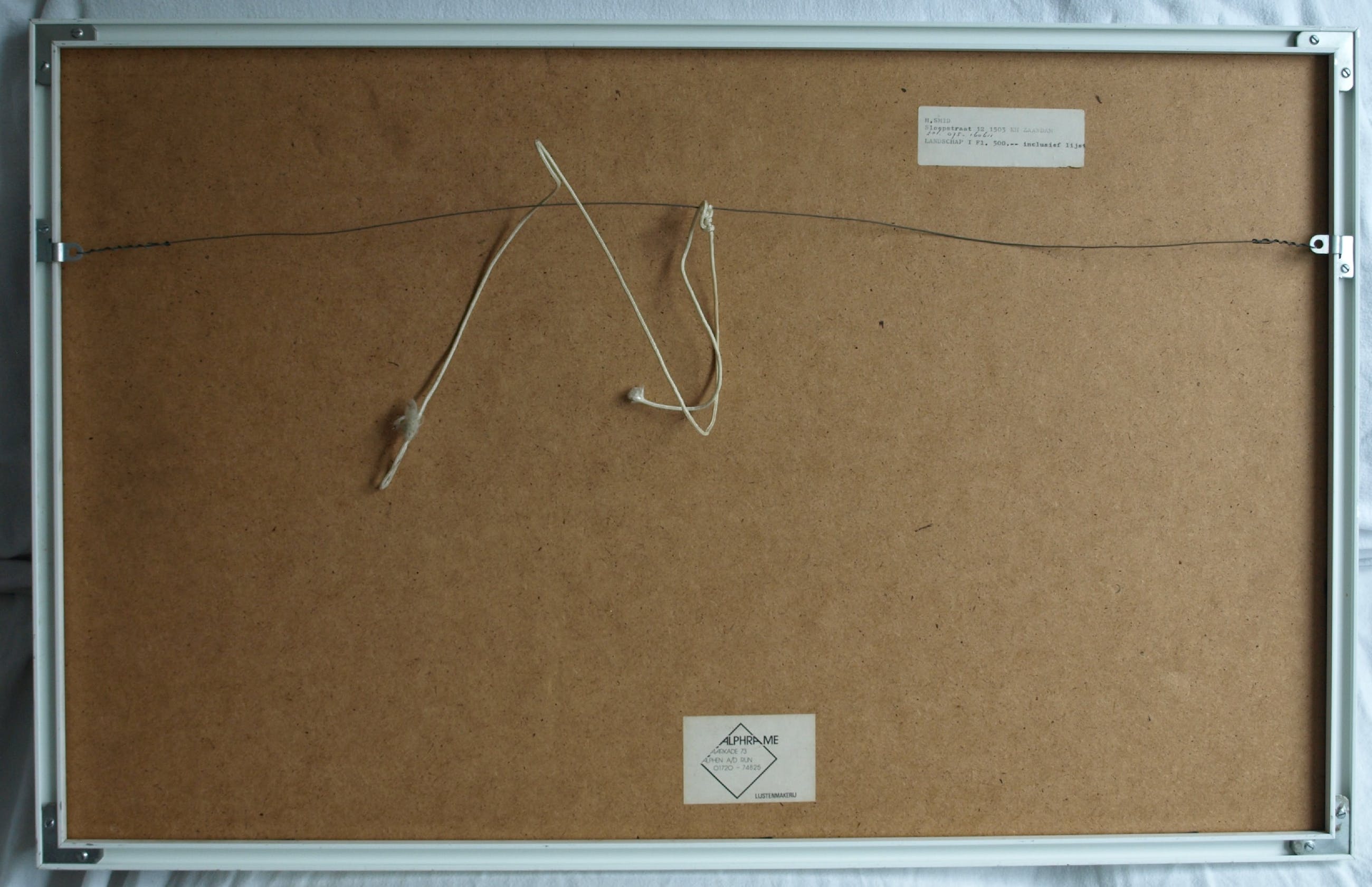 -Het ingelijste werk kan afgehaald worden (in Amsterdam). Afhalen heeft onze zeer sterke voorkeur i.v.m. de kwetsbaarheid van de glasplaat.
