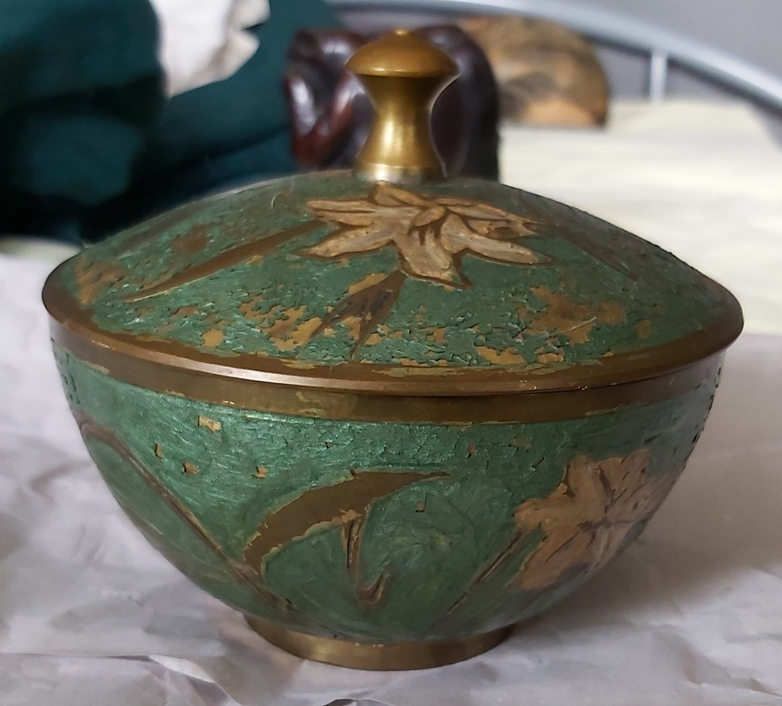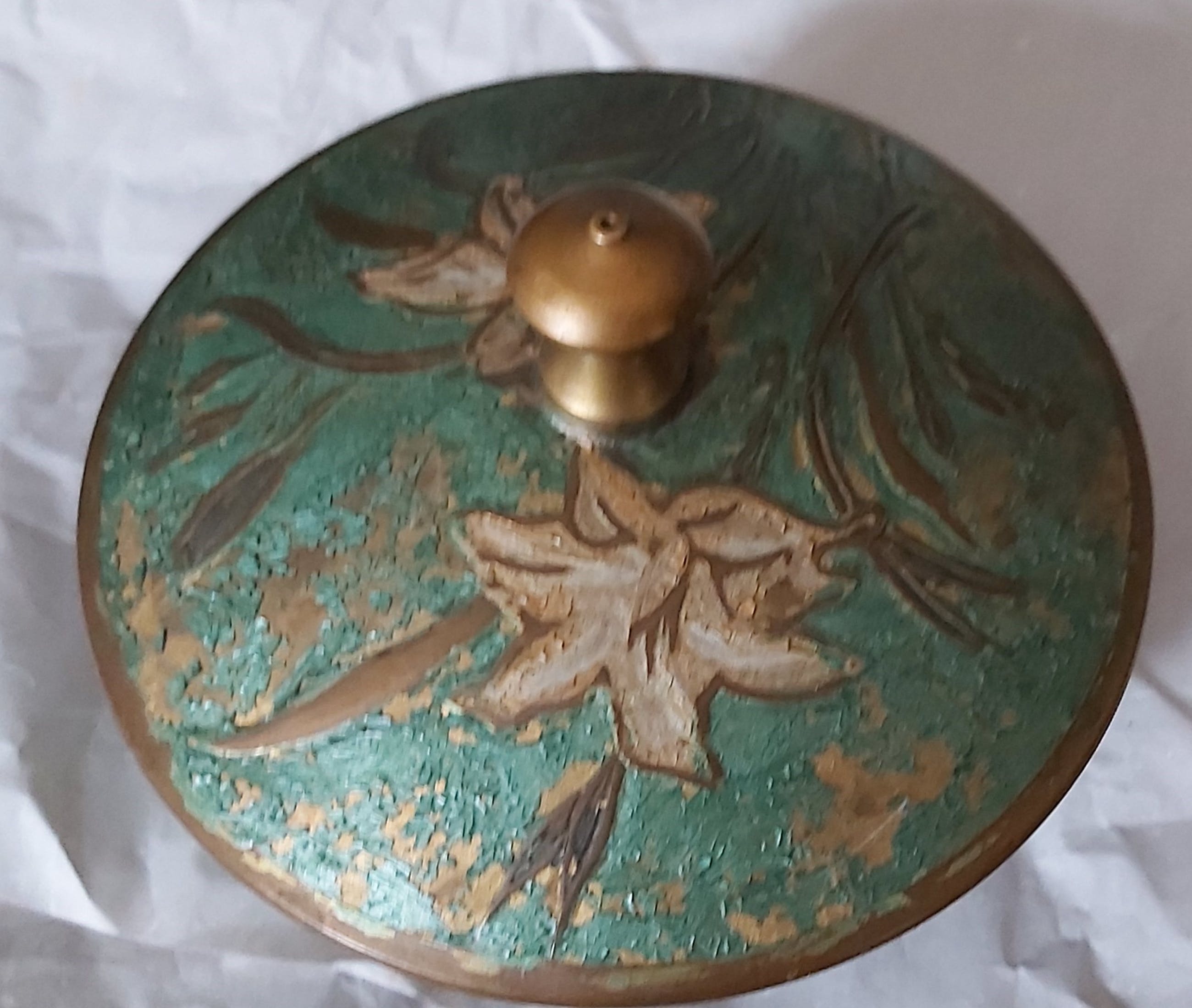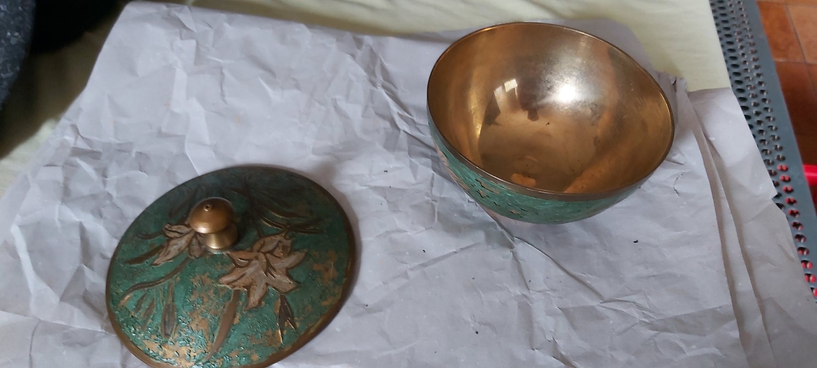 Sierpotje met deksel, volledig in koper, gave staat