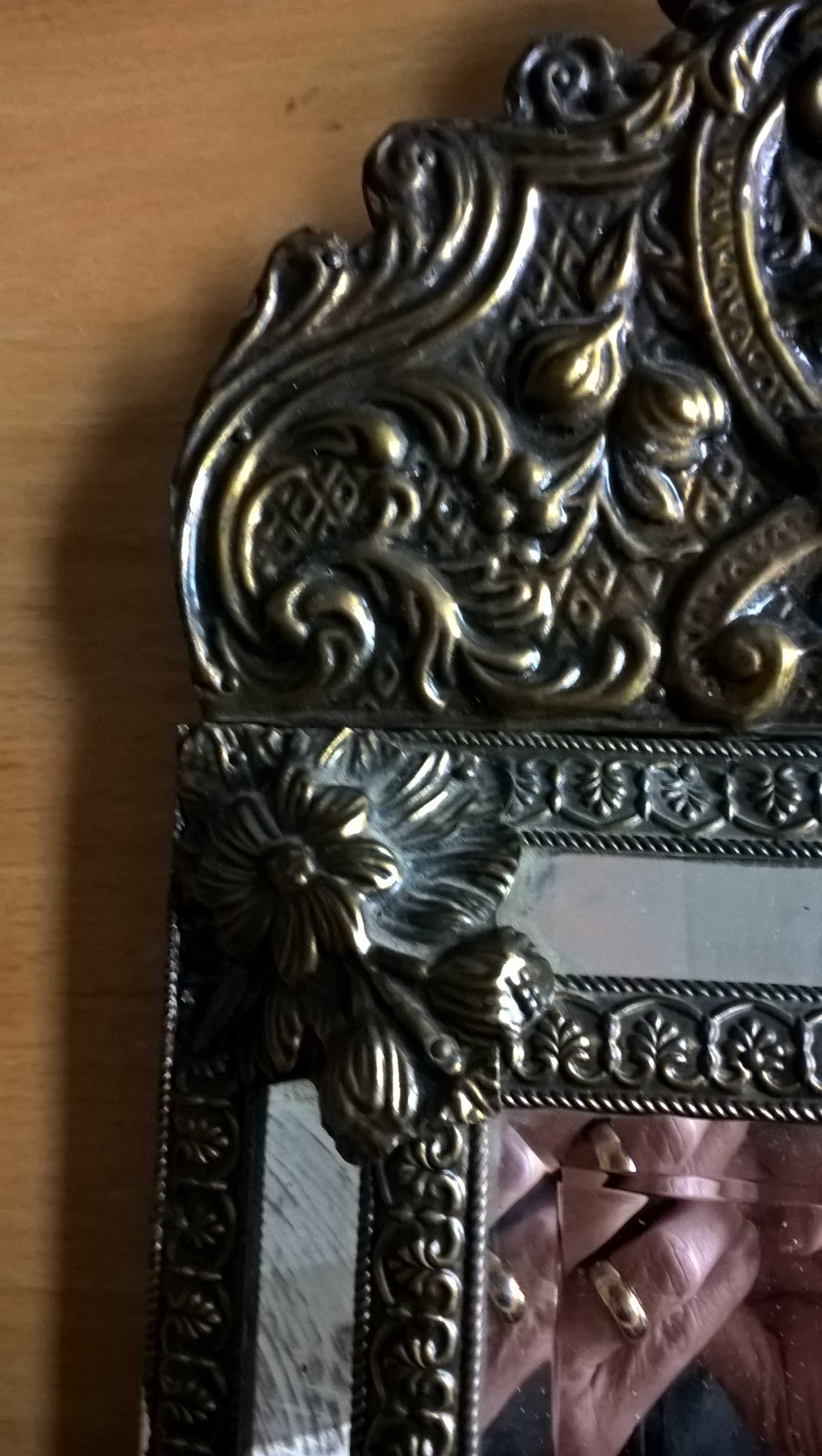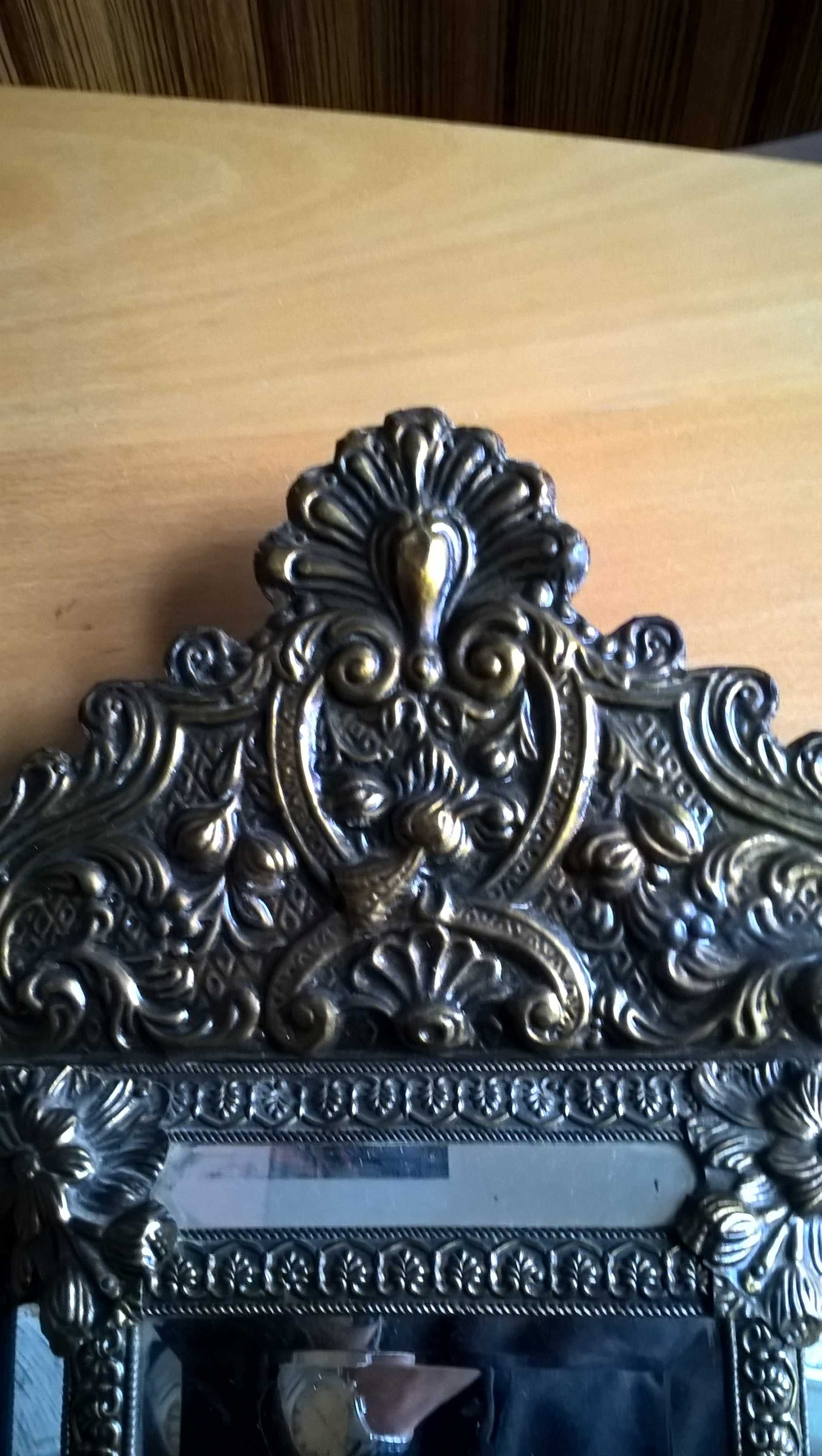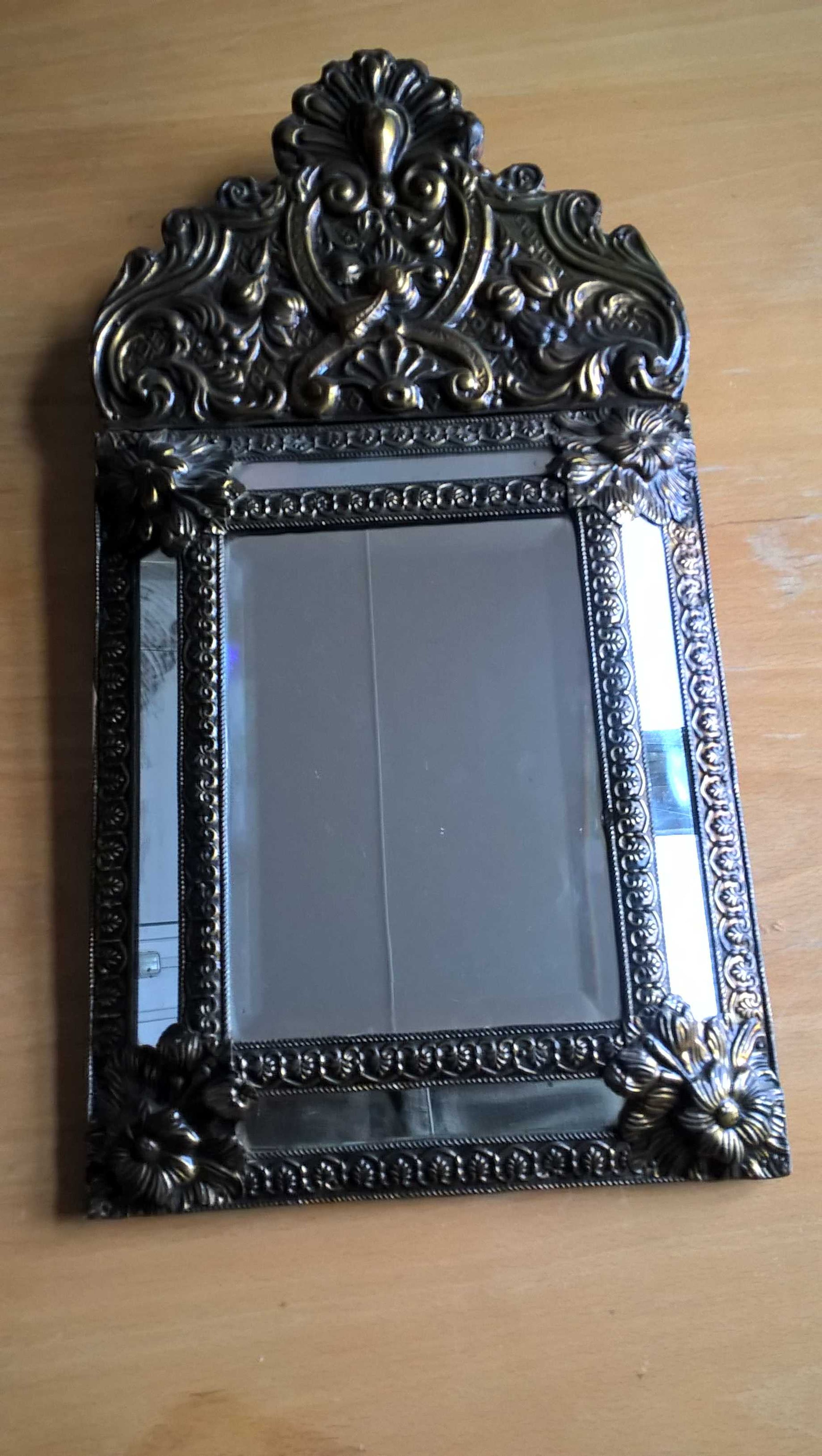 Latoenkoperen Spiegel / Stoffer en Blik - Hout, Koper