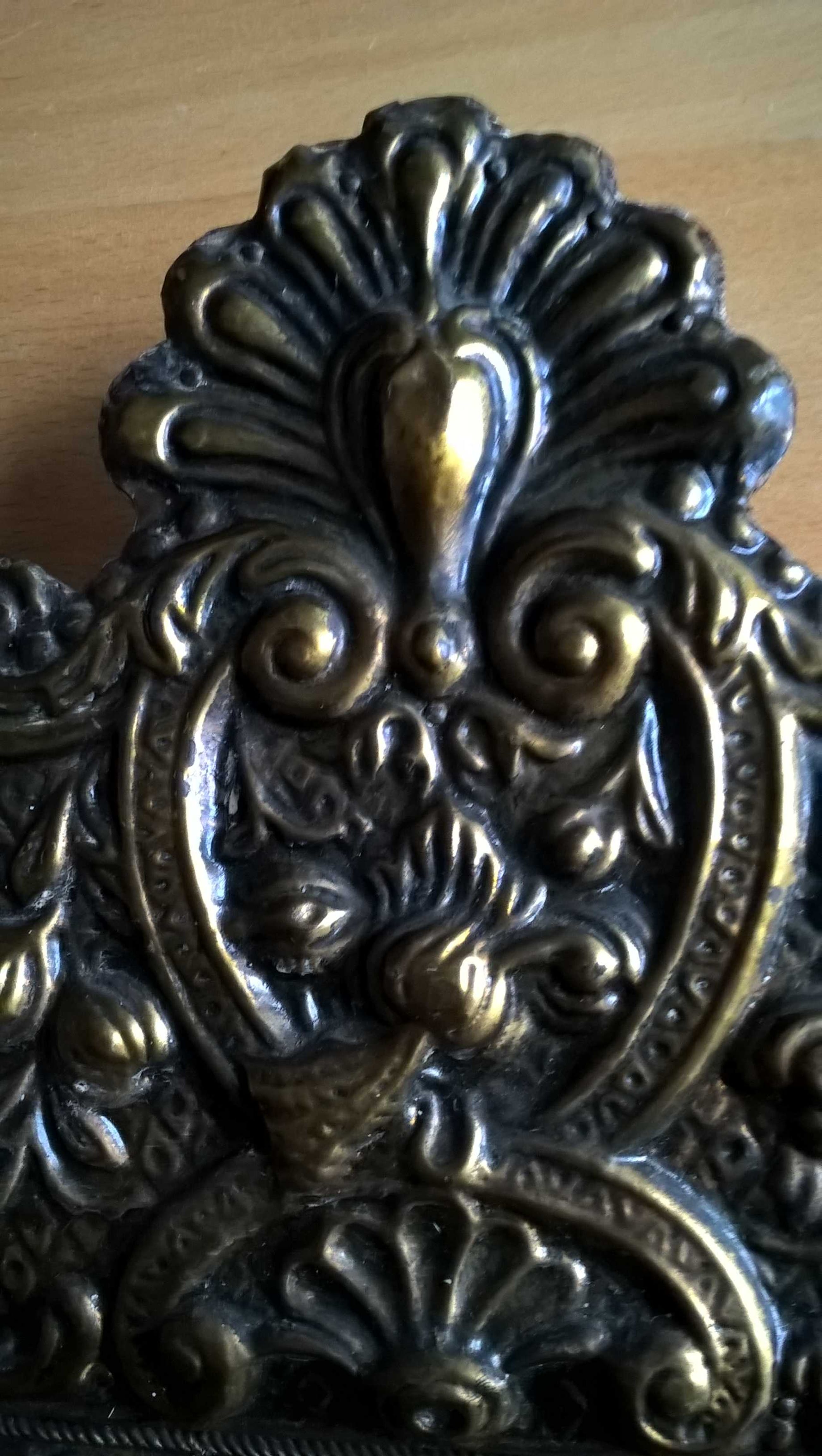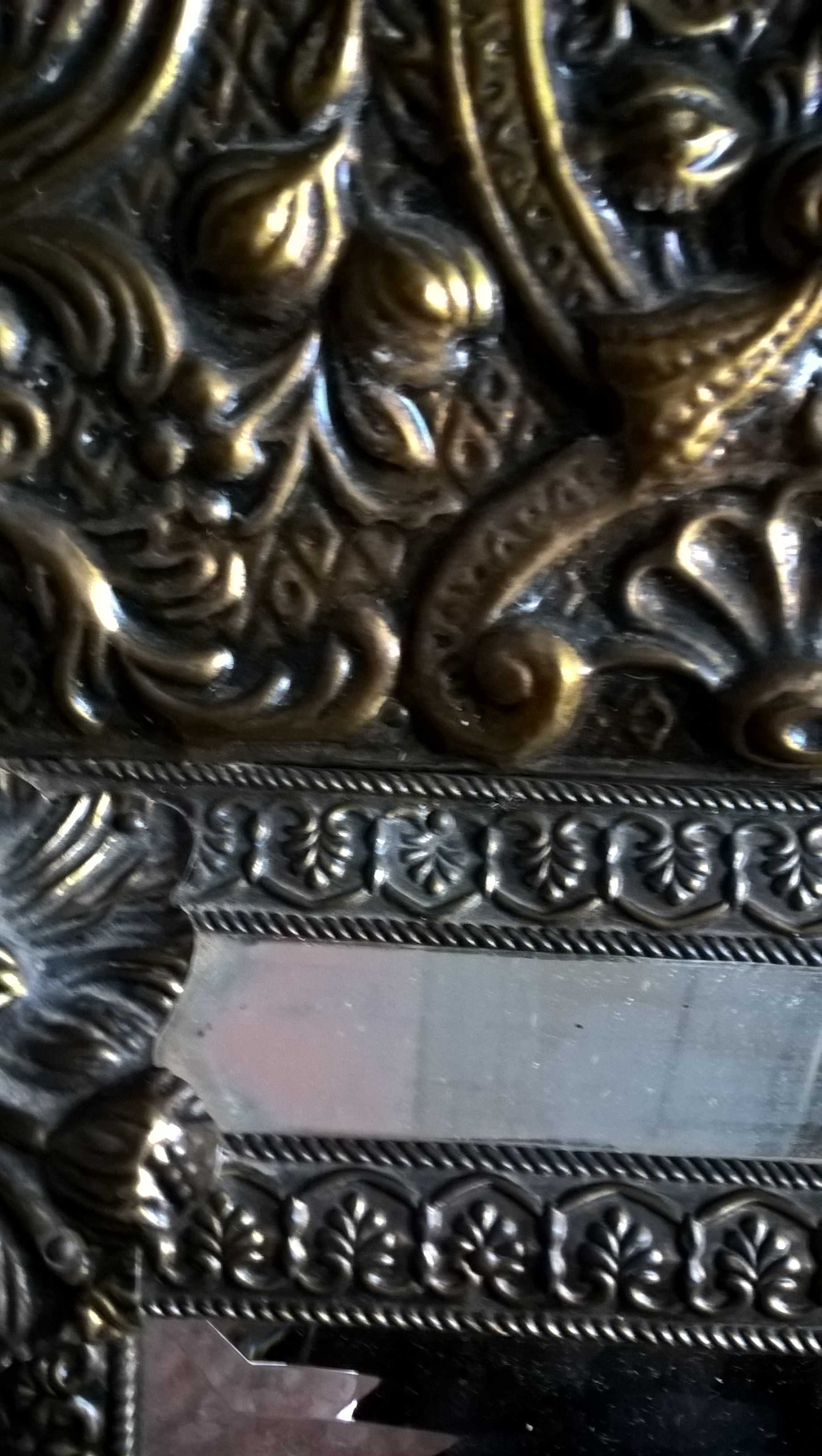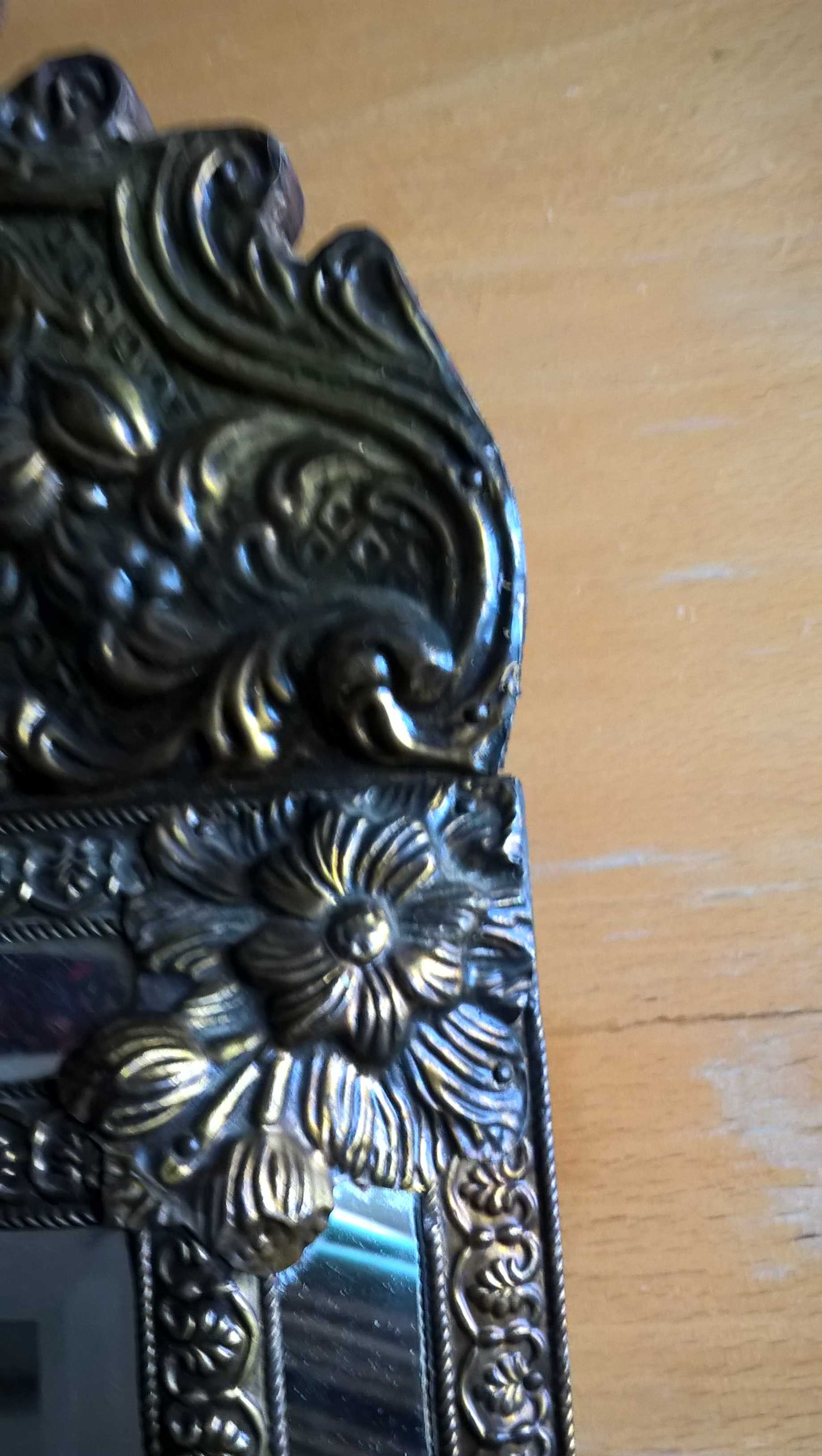 Latoenkoperen Spiegel / Stoffer en Blik - Hout, Koper