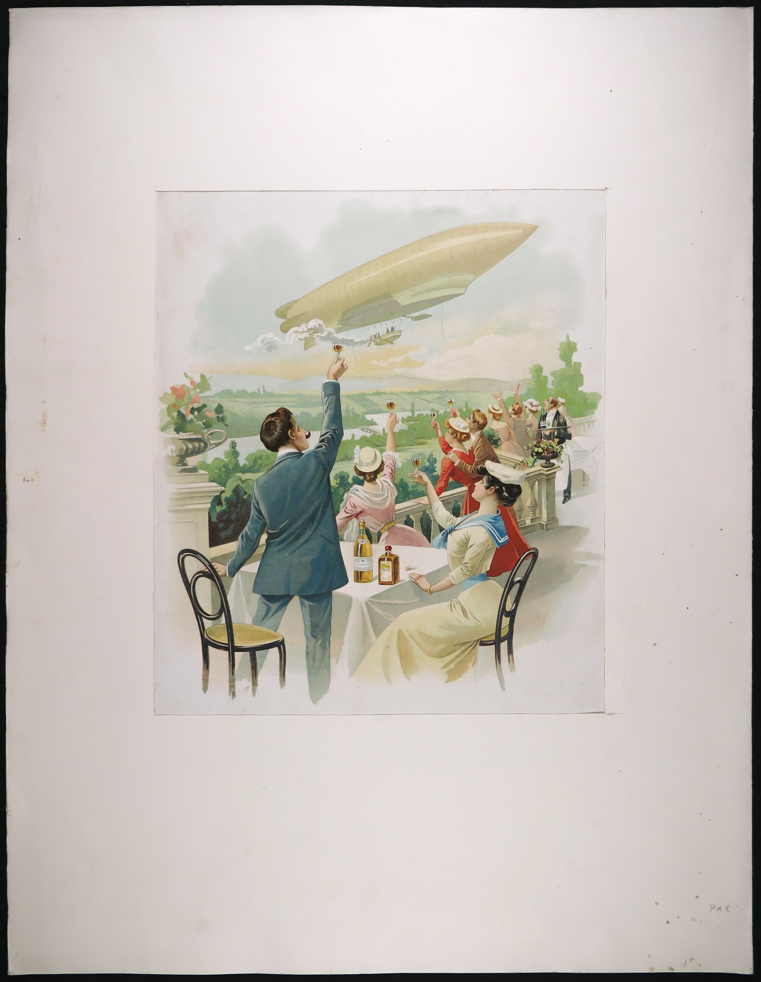 Litho-ontwerp voor een reclame voor een drankstokerij, vervaardigd en gedrukt door Haberer, Douin & Jouneau, Parijs.