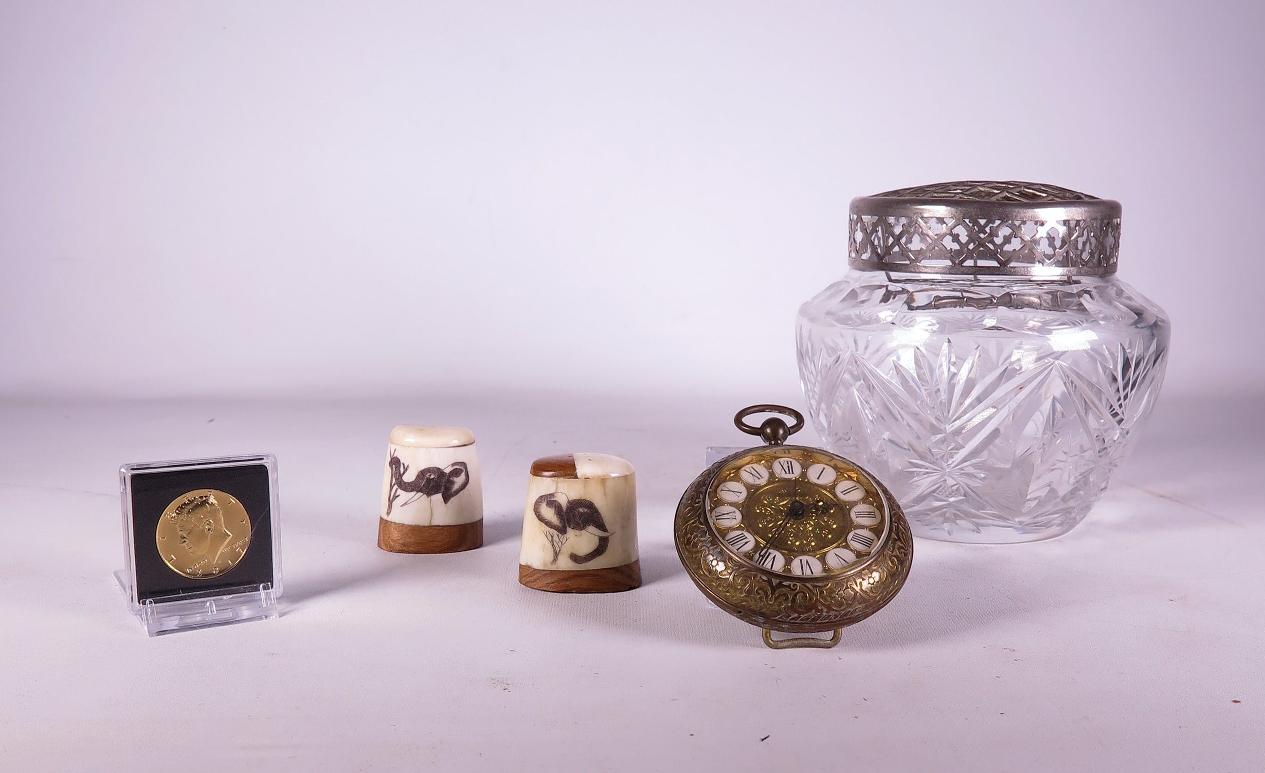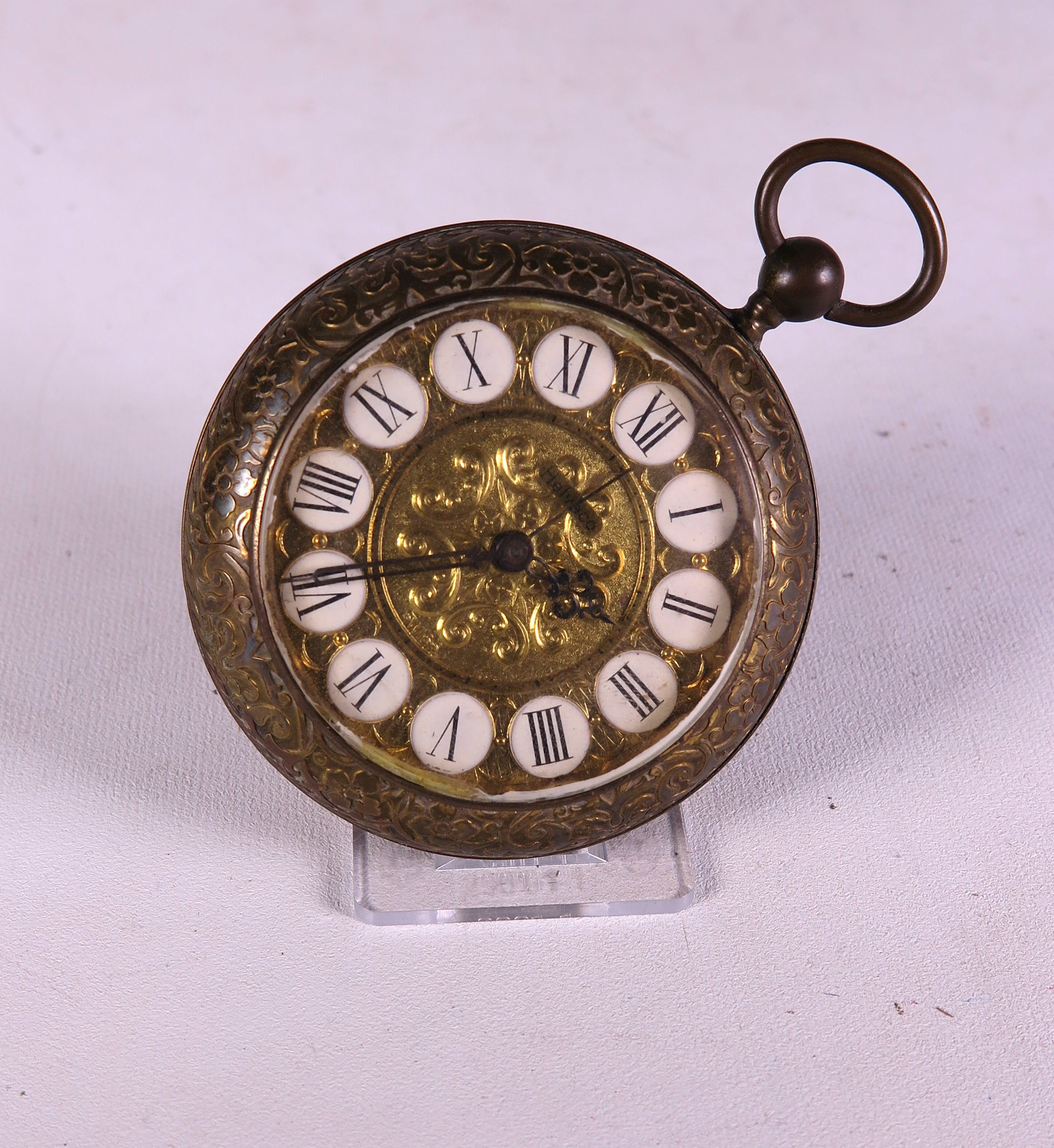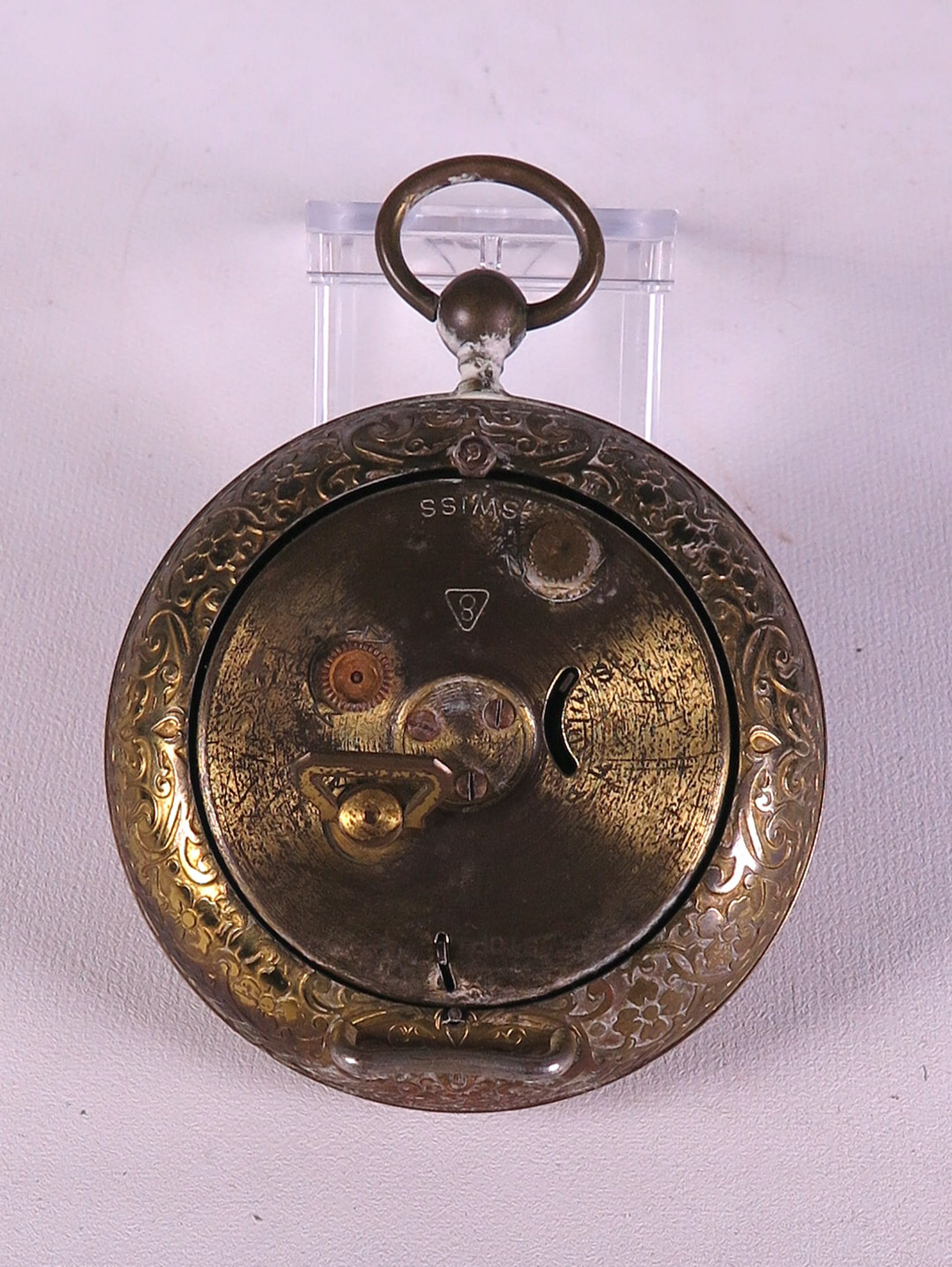 | Allemaal an sich goede staat, de vaas heeft wat gebruikerssporen en het plastic voor het klokwerk van het zakhorloge zit wat los. | |