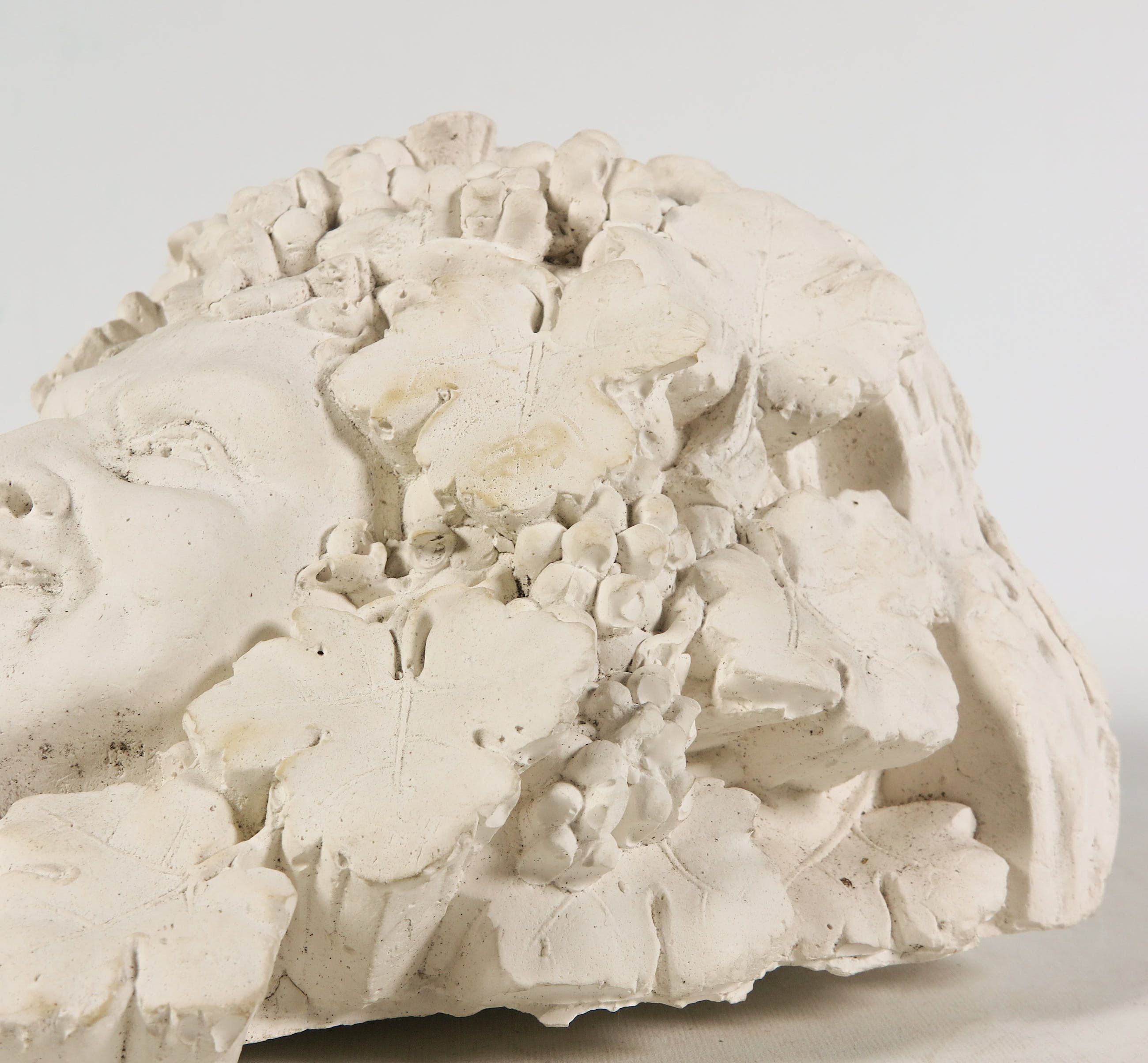 Lot van drie gipsen wandconsoles, versierd met koppen van saters en druivenranken. Een van de drie consoles is hol, de andere zijn massief.