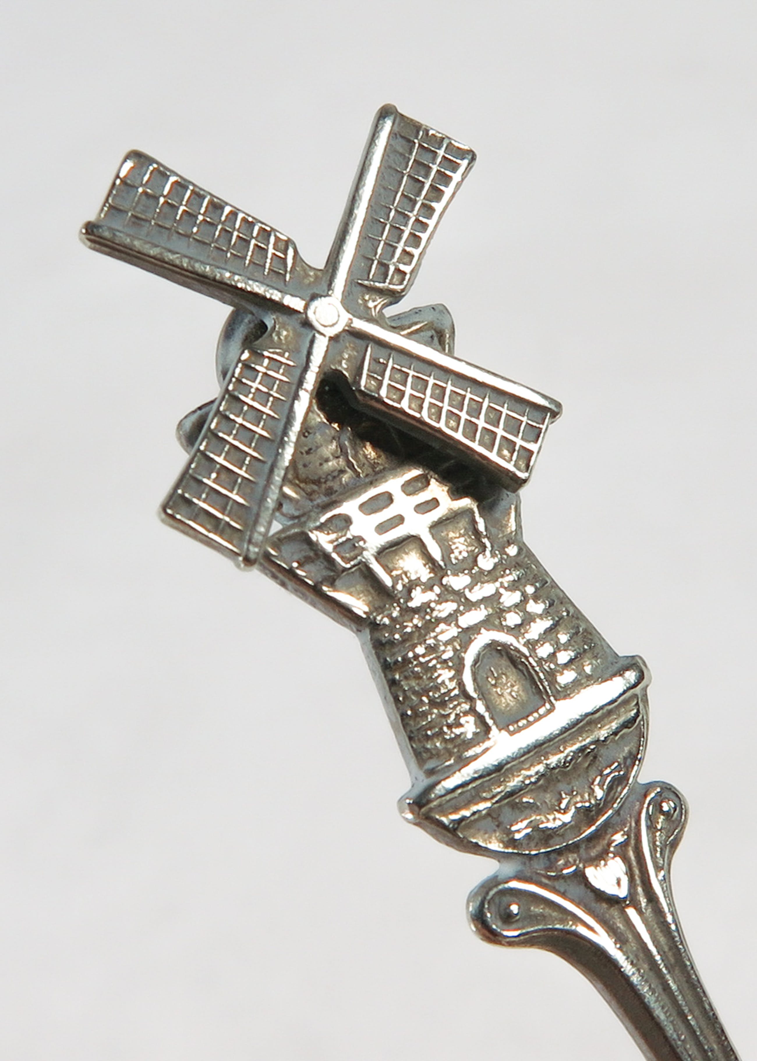 Vermelde afmetingen zijn van het lepeltje rechts op de eerste foto (met de molen).